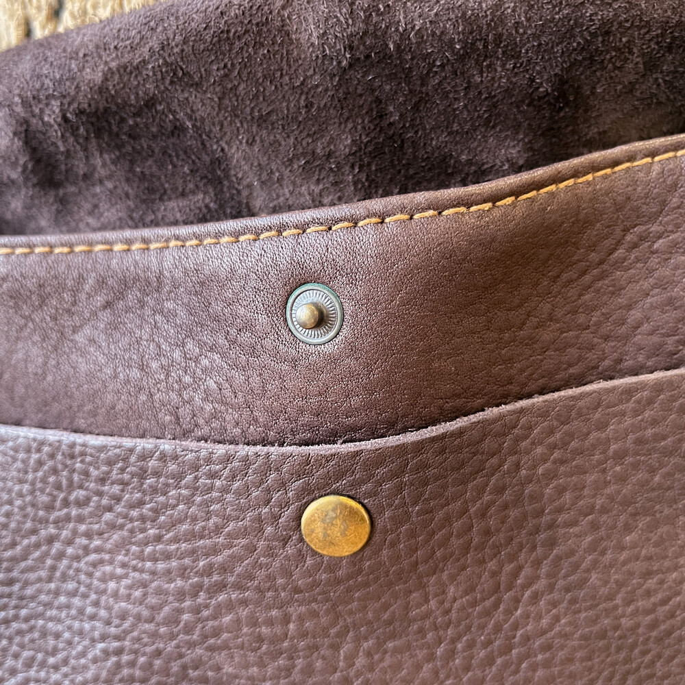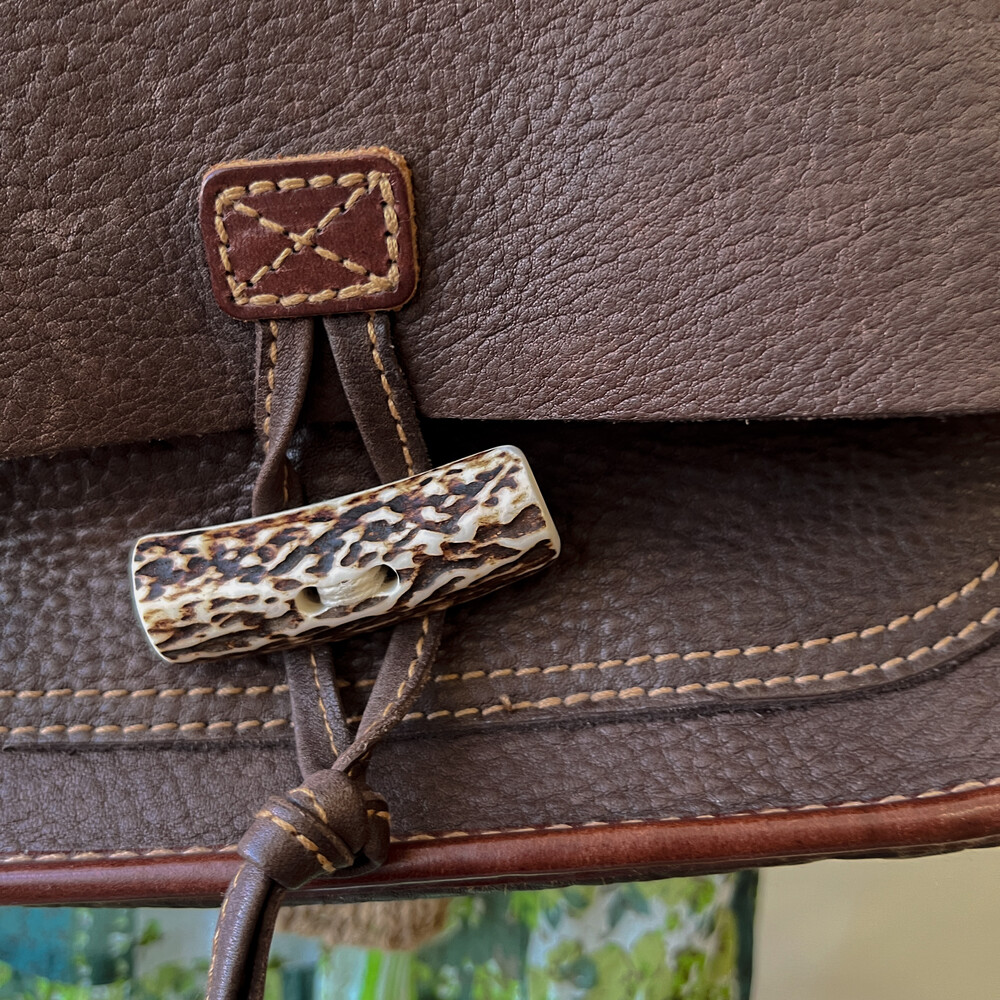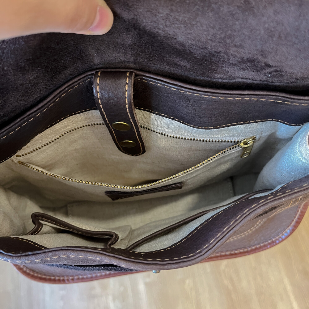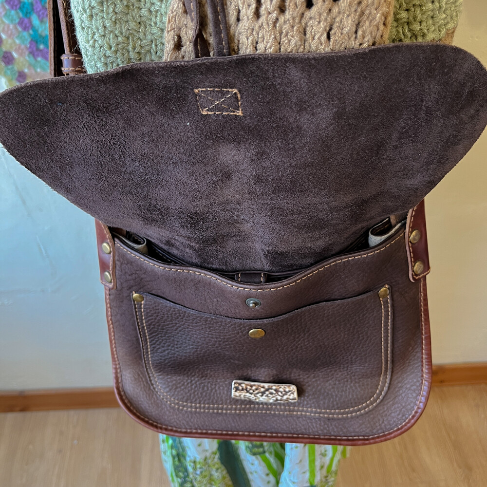 brown heavy leather cross bag