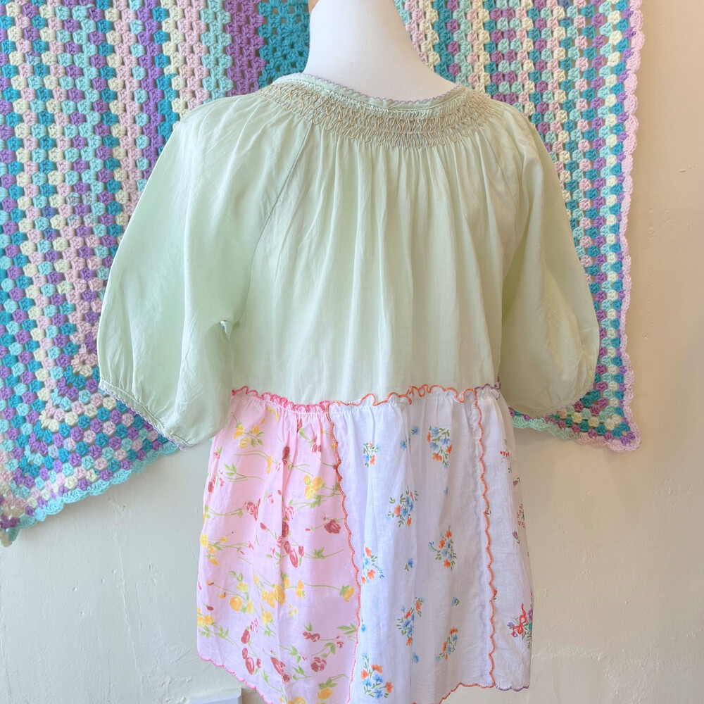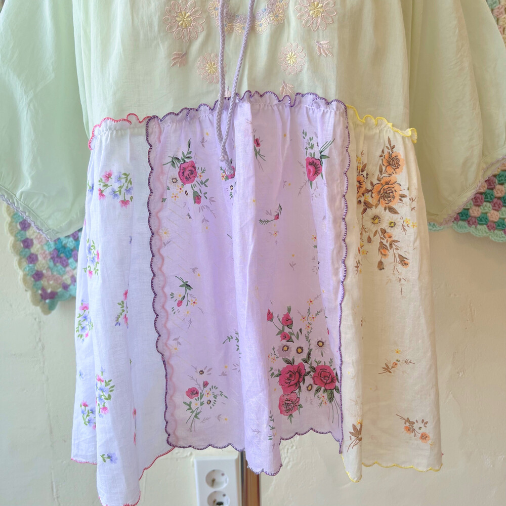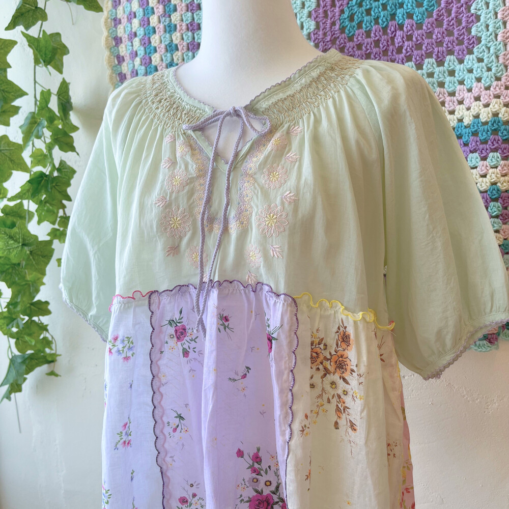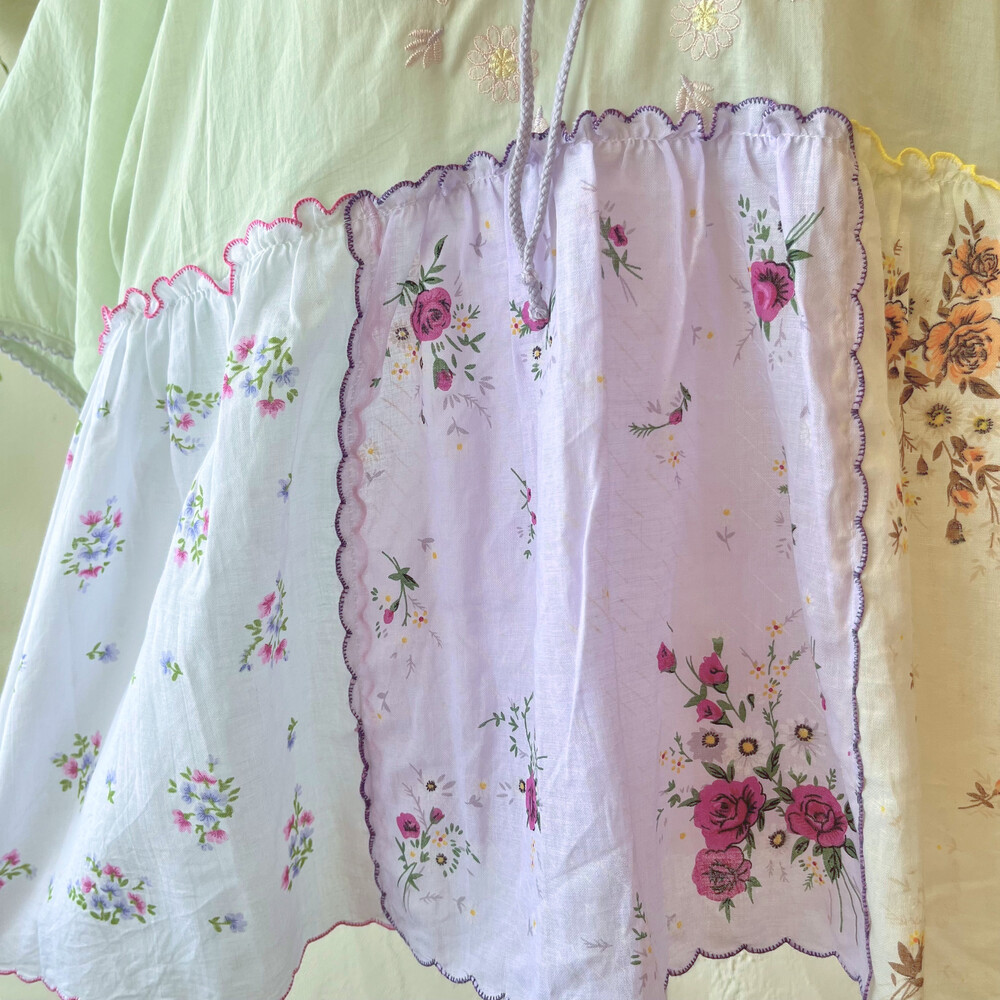 파스텔 색감의 자수+패치 블라우스예요