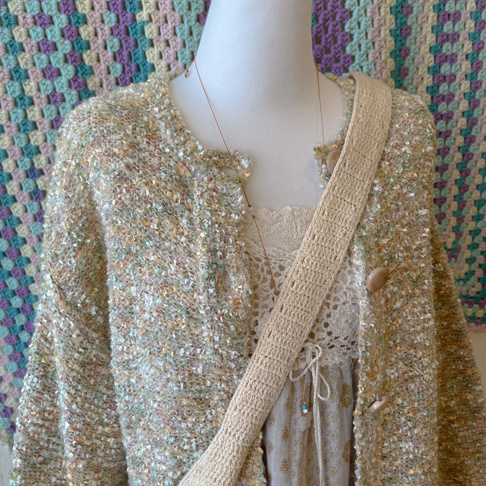 연두, 노랑 색감이 섞인 믹스 가디건이에요