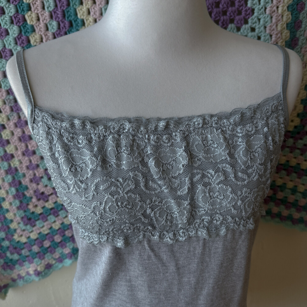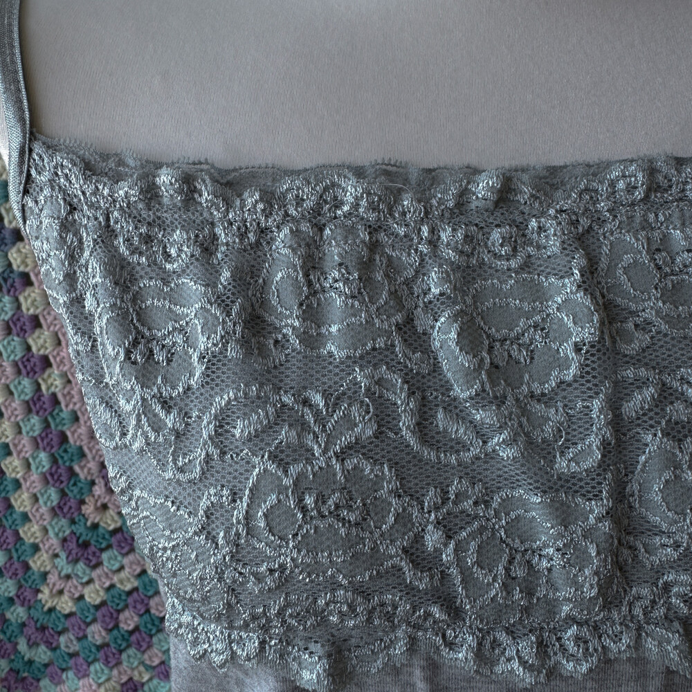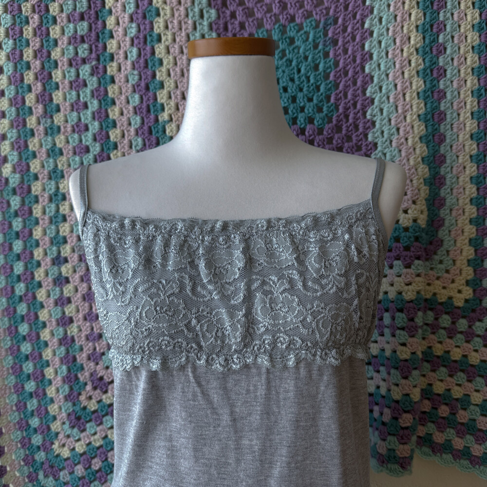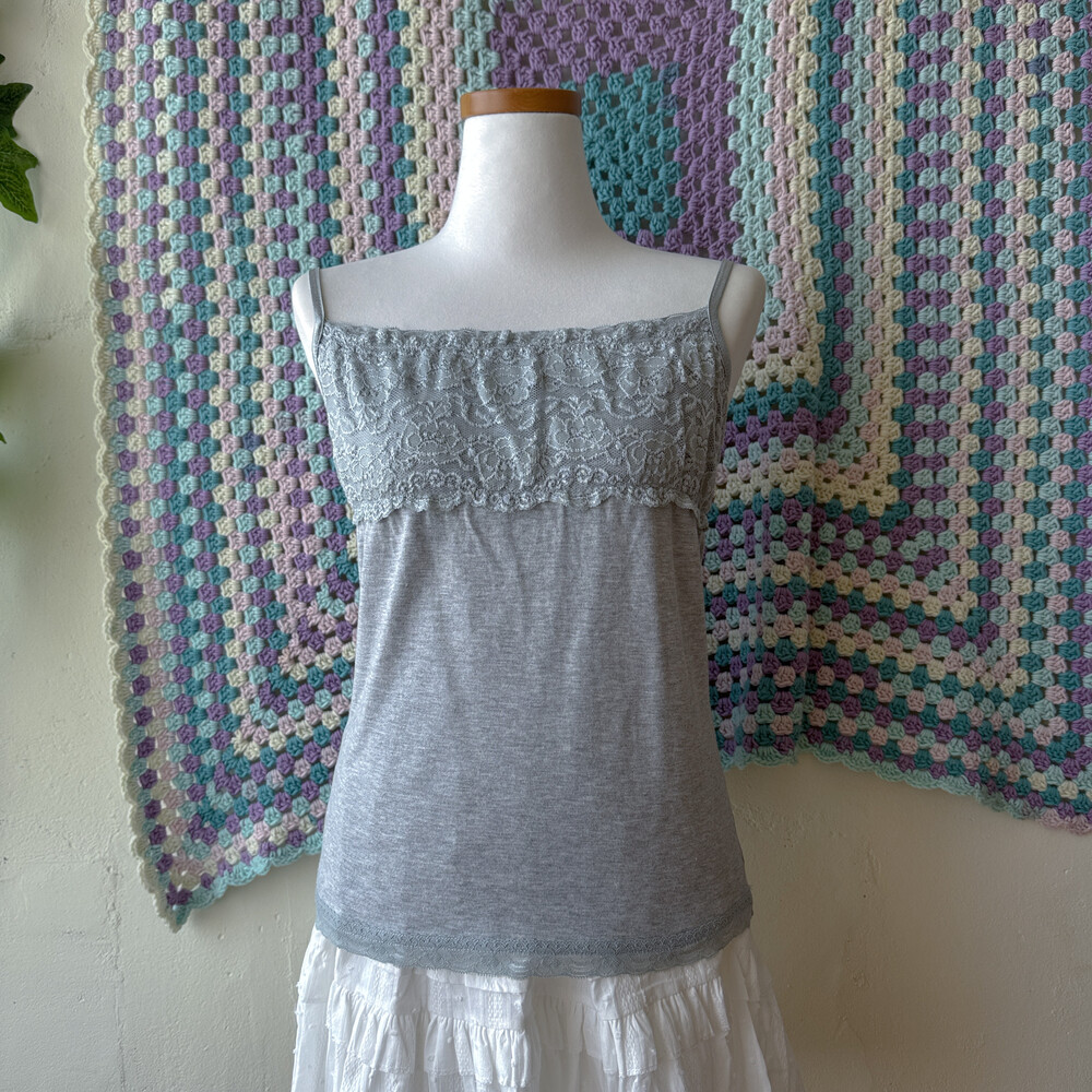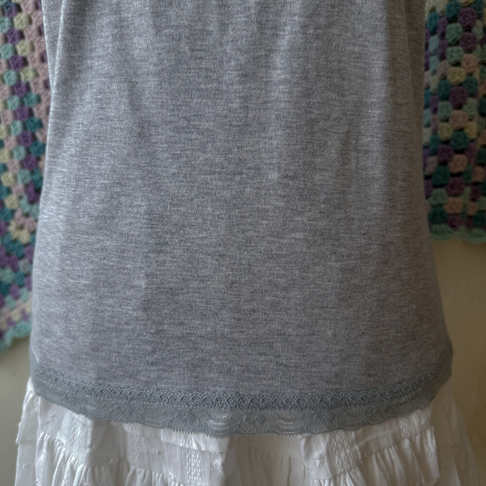 gray chest&hemline lace sleeveless top
