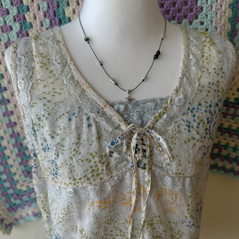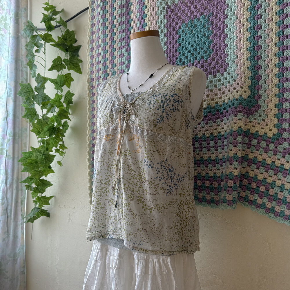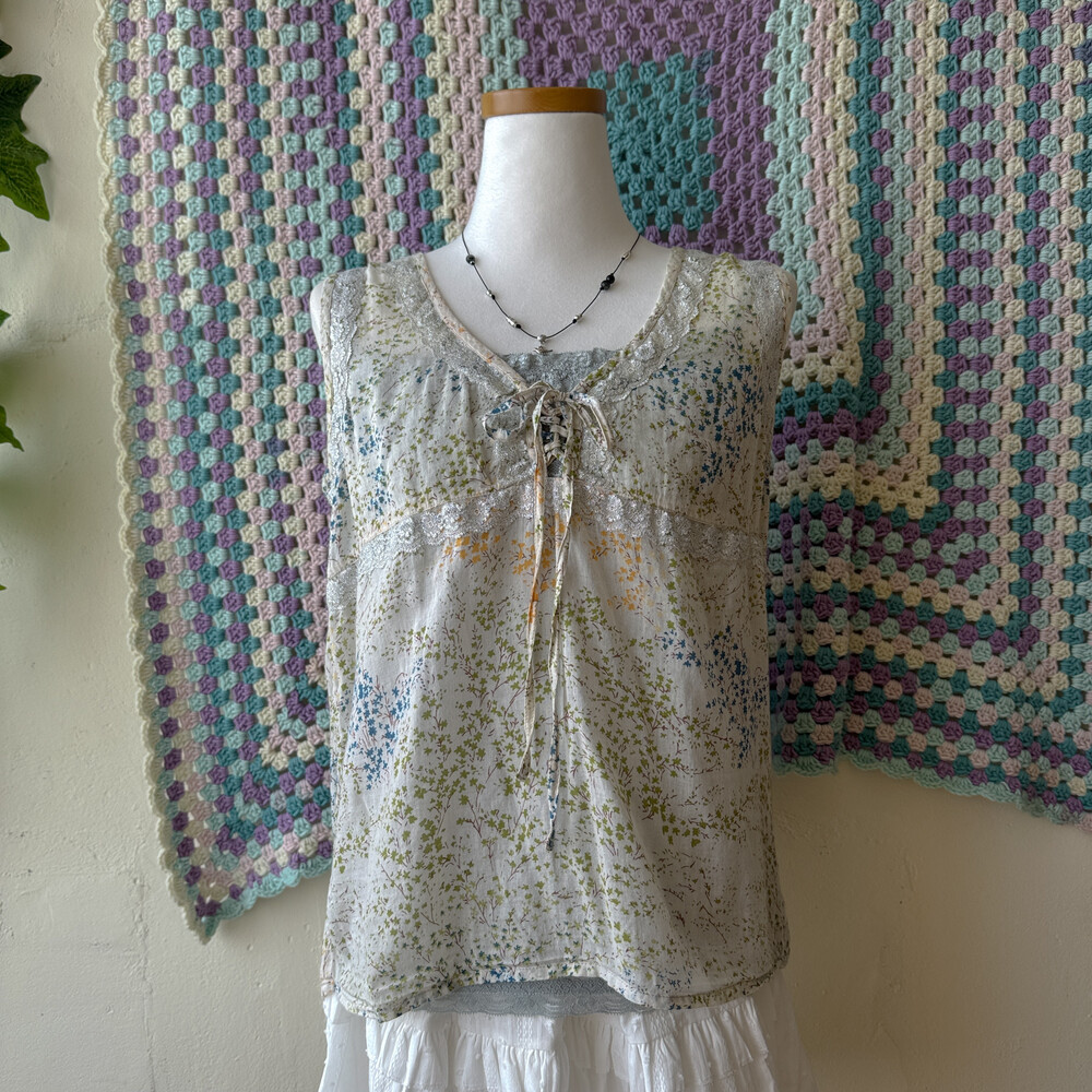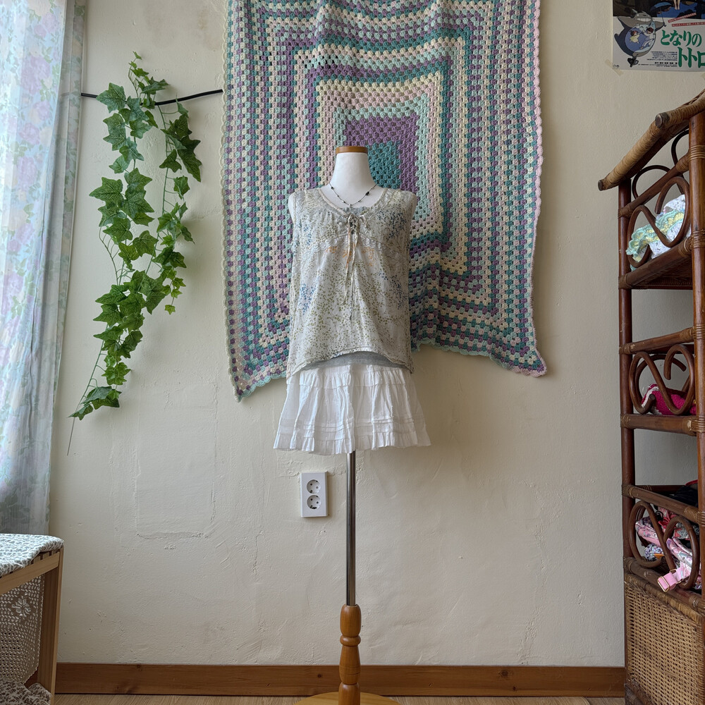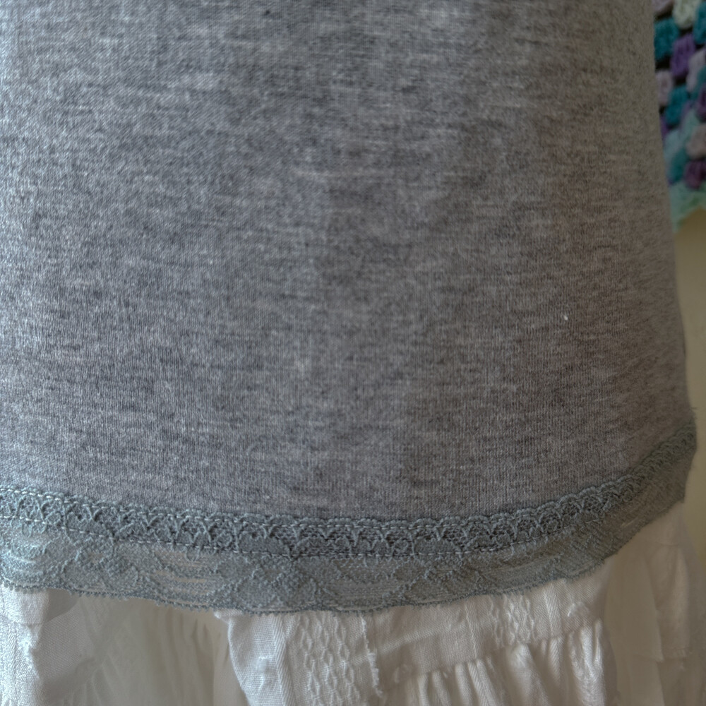 gray chest&hemline lace sleeveless top
