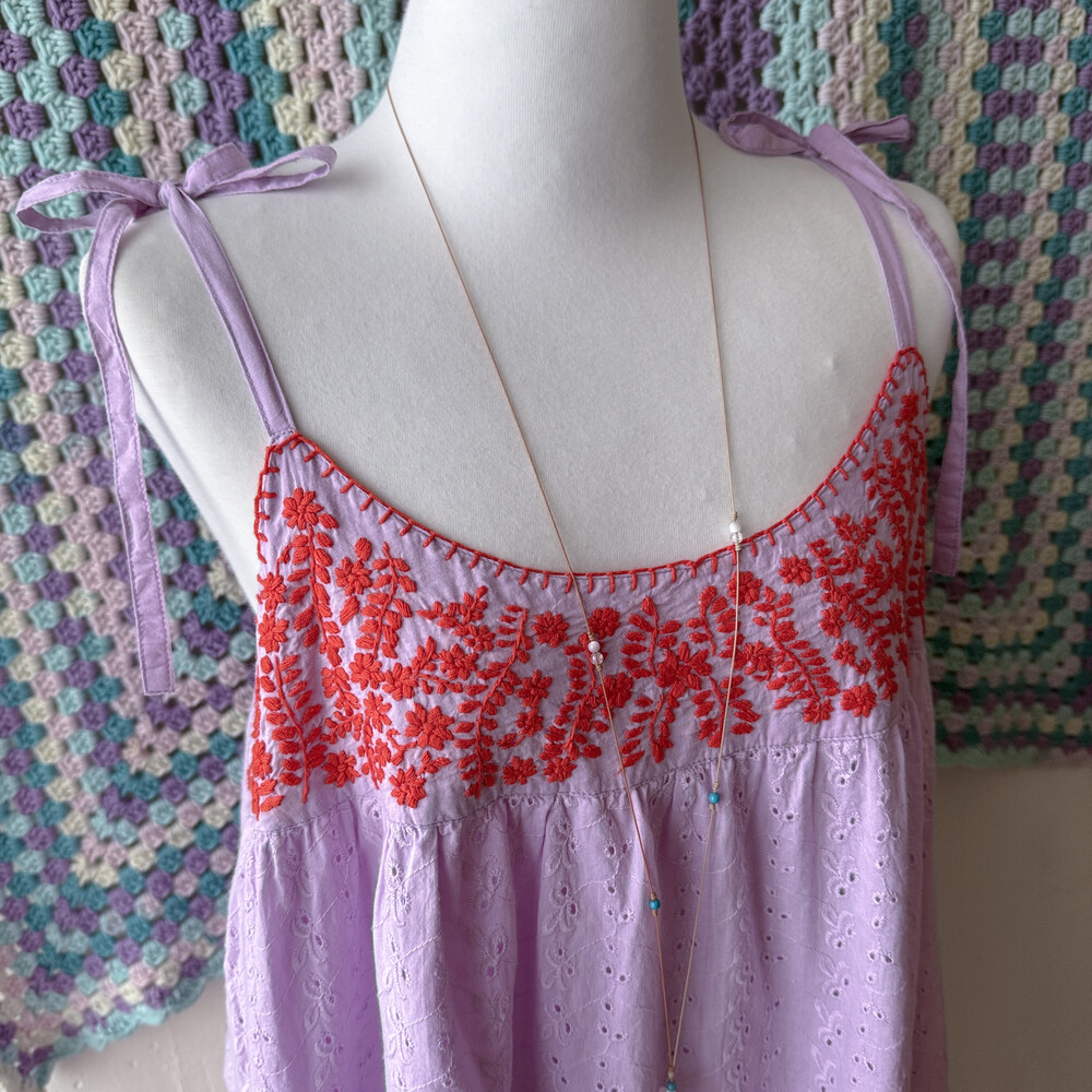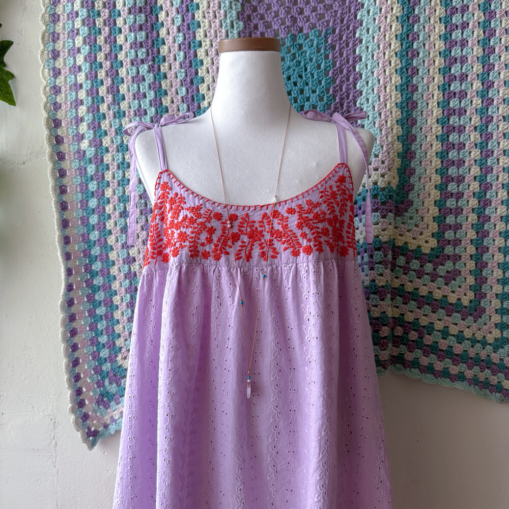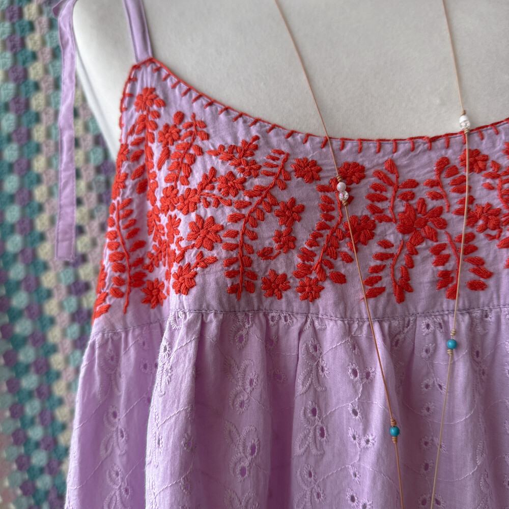 보라색감 바탕에 전체적으로 자수가 가득 들어가 있는