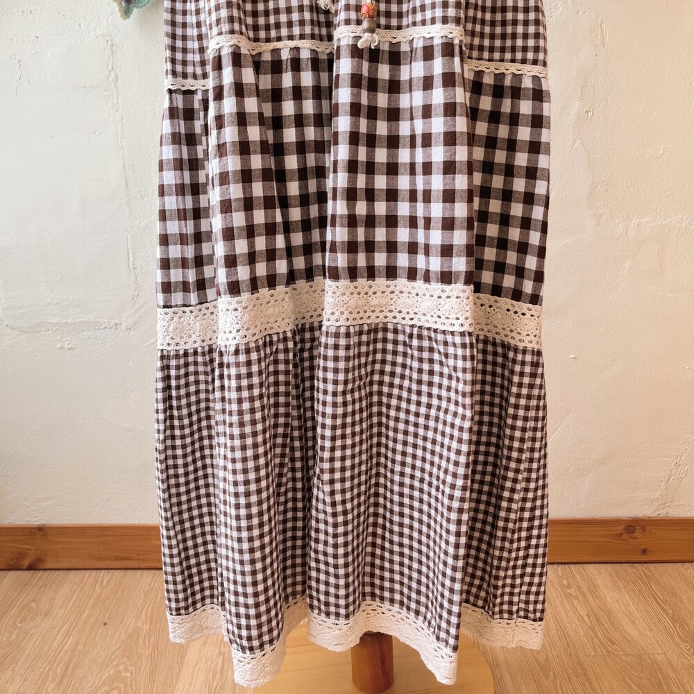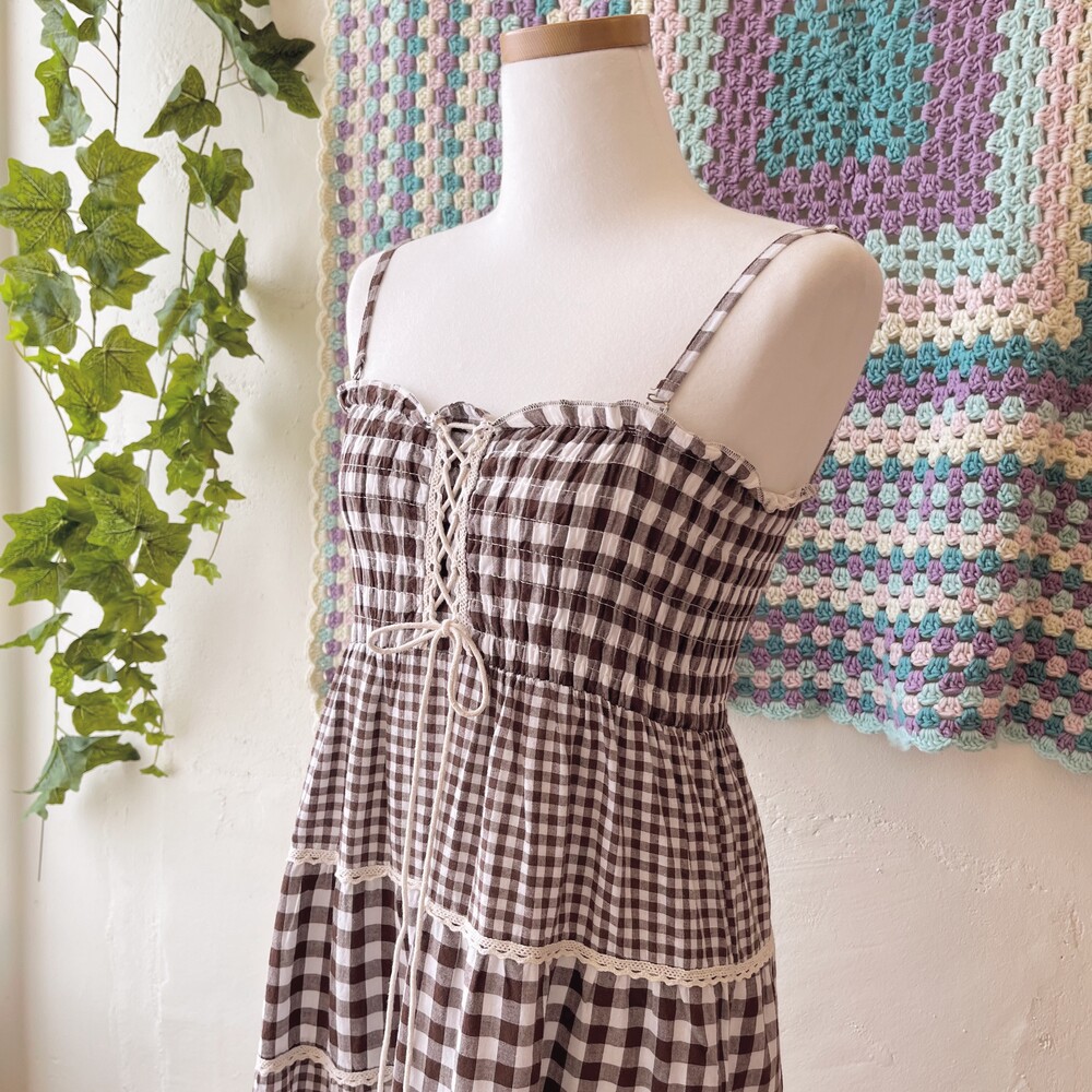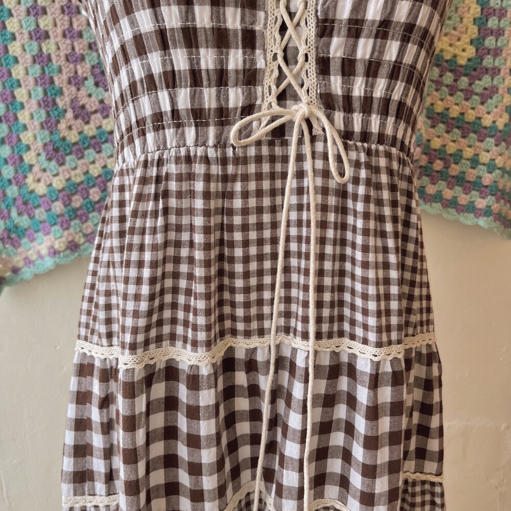 reddish brown check eyelet tiered ops