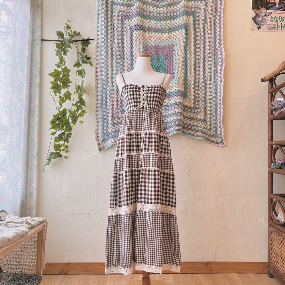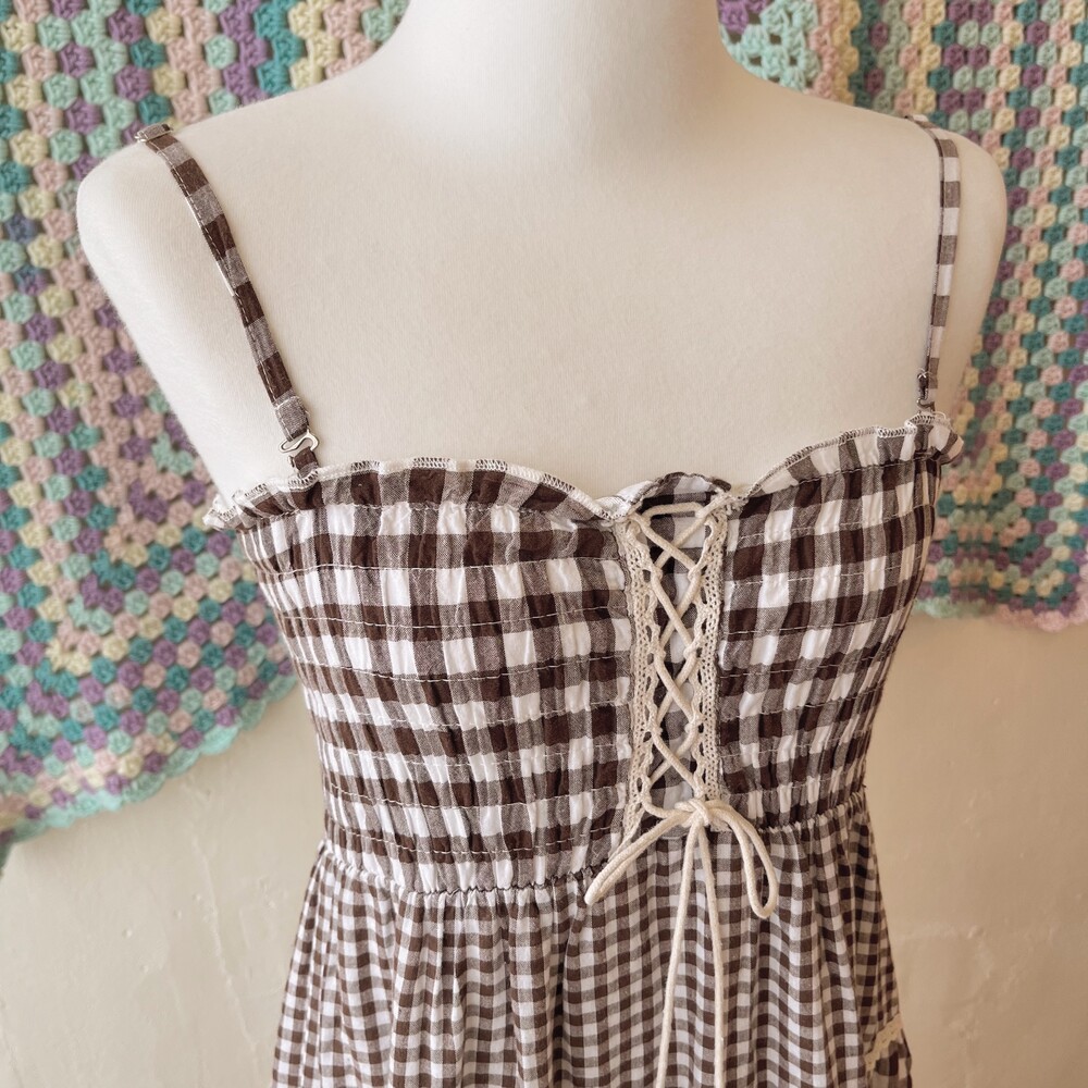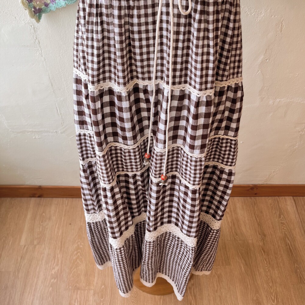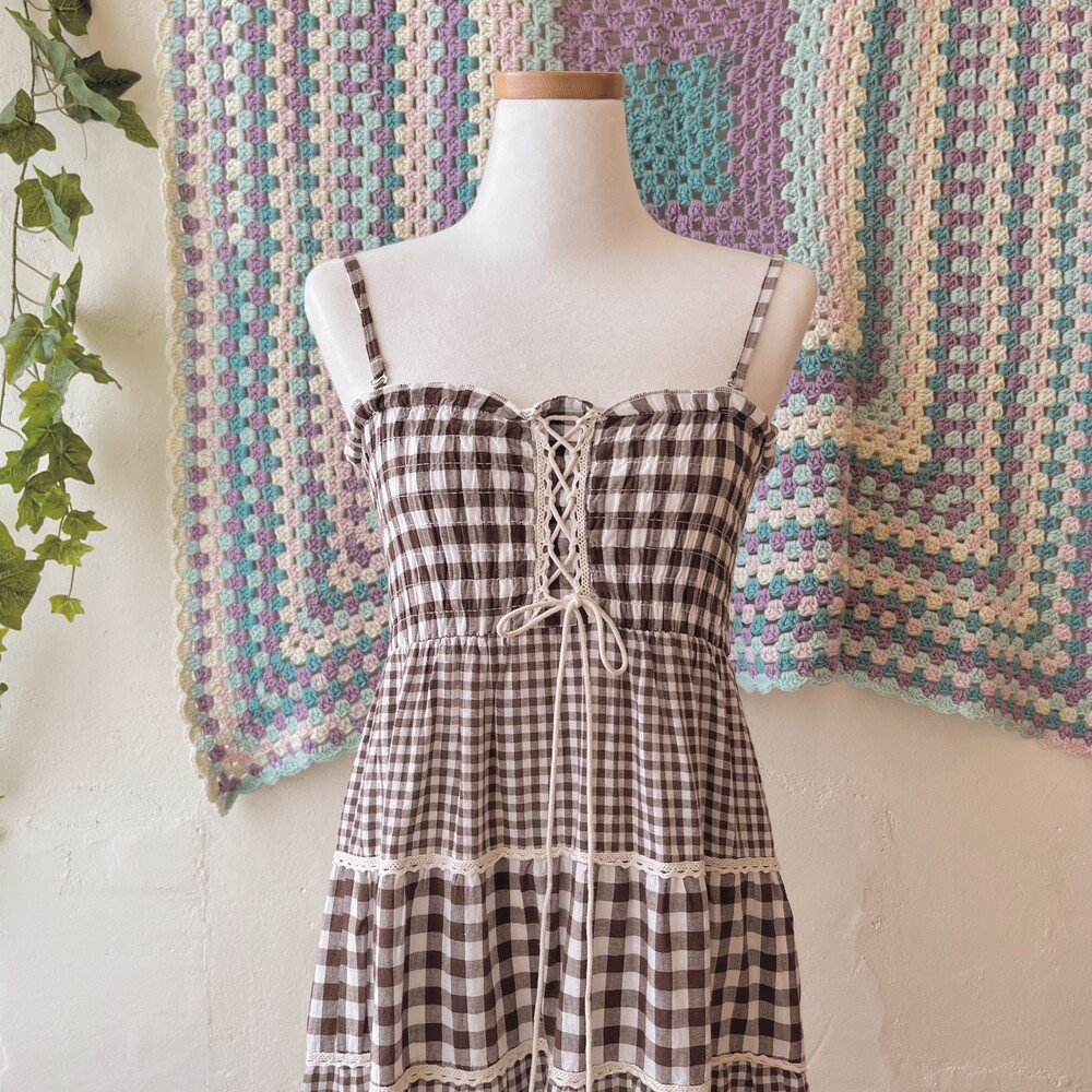 reddish brown check eyelet tiered ops