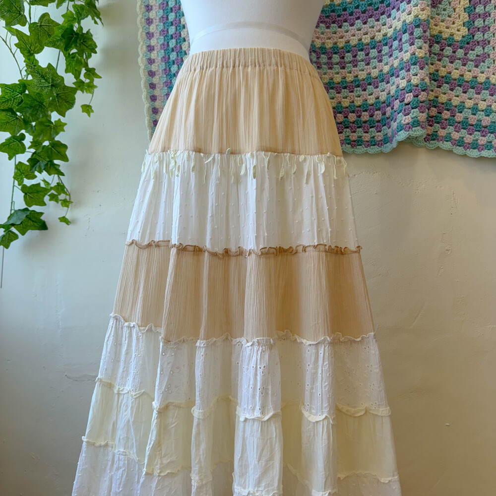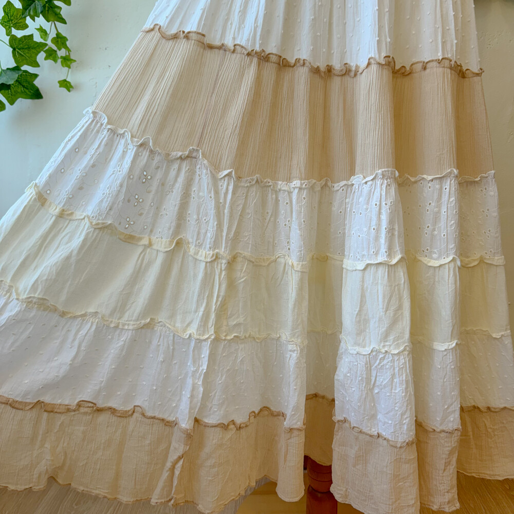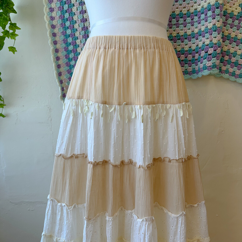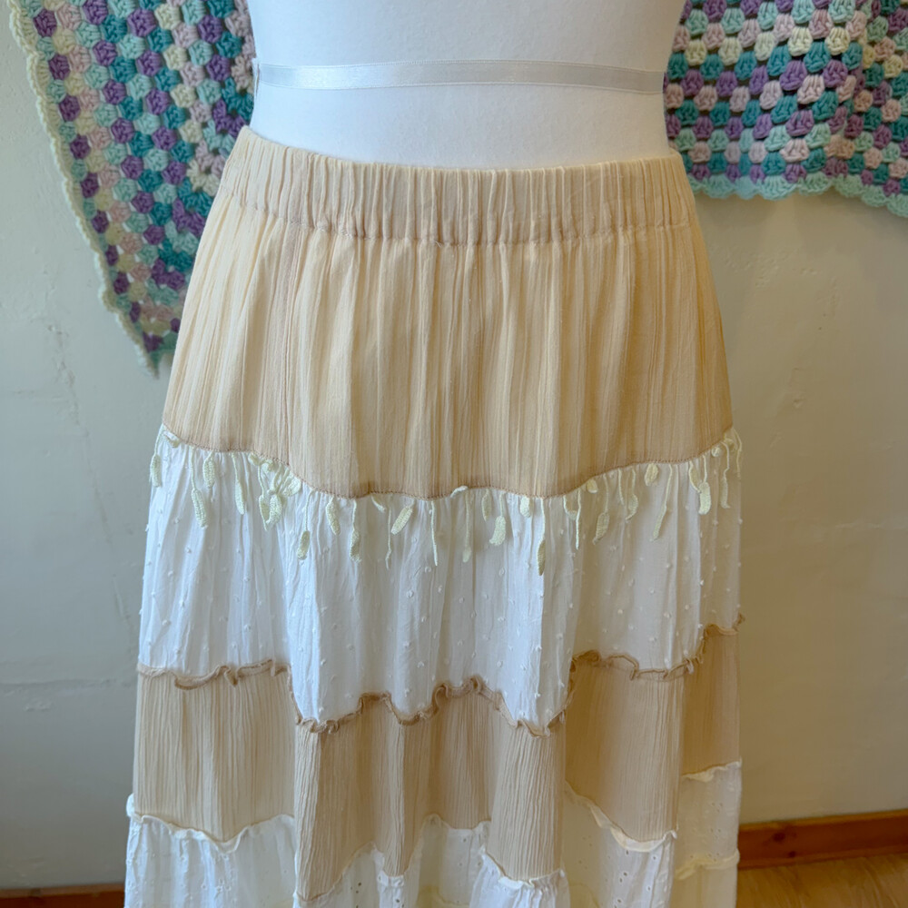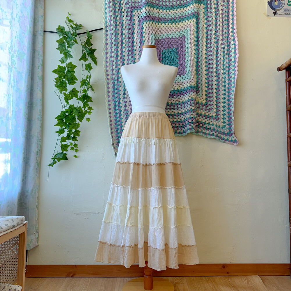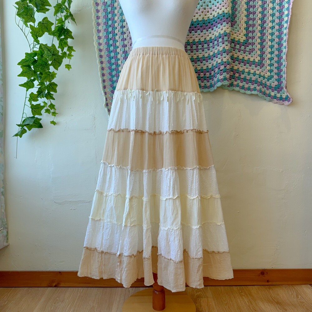아이보리와 베이지 색감 조합의 패치워크 스커트예요