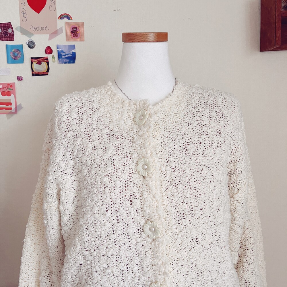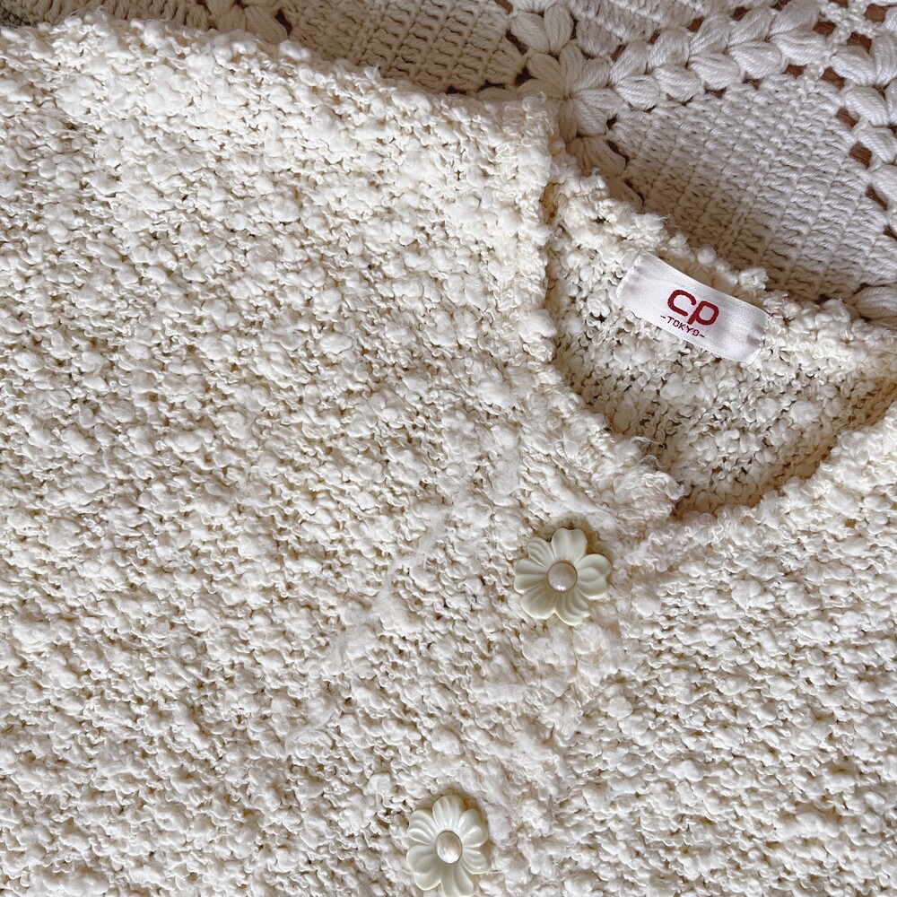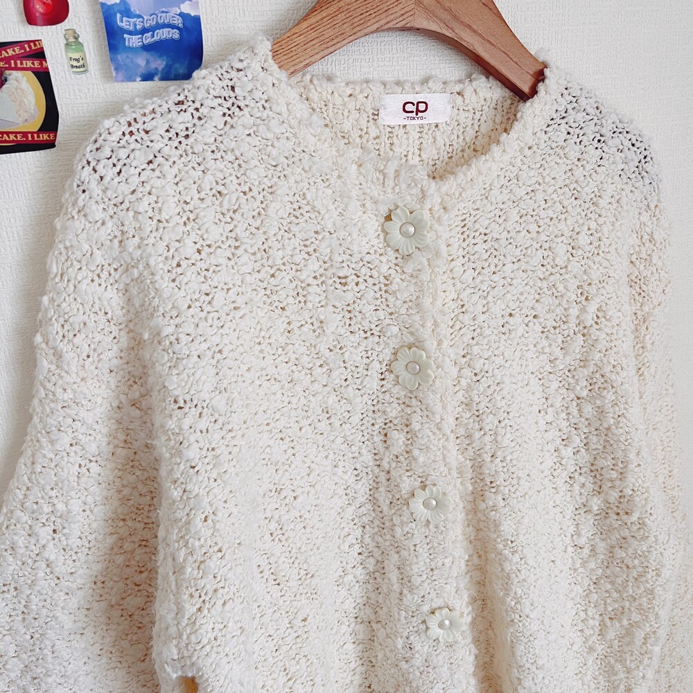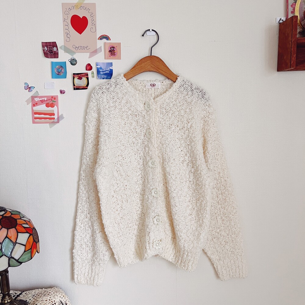 cp사의 아이보리 플라워 버튼 가디건이에요