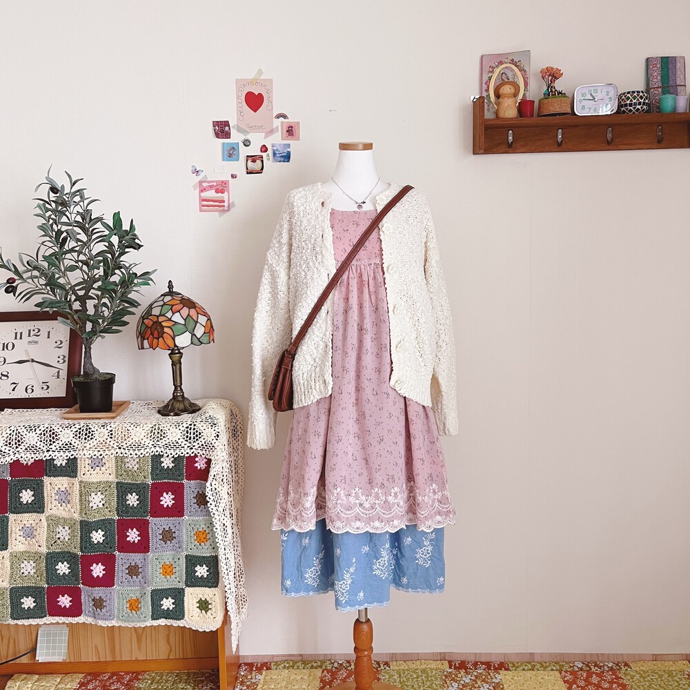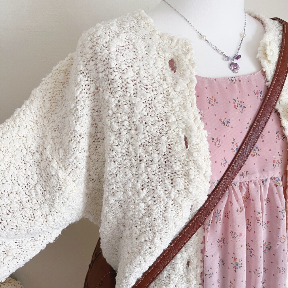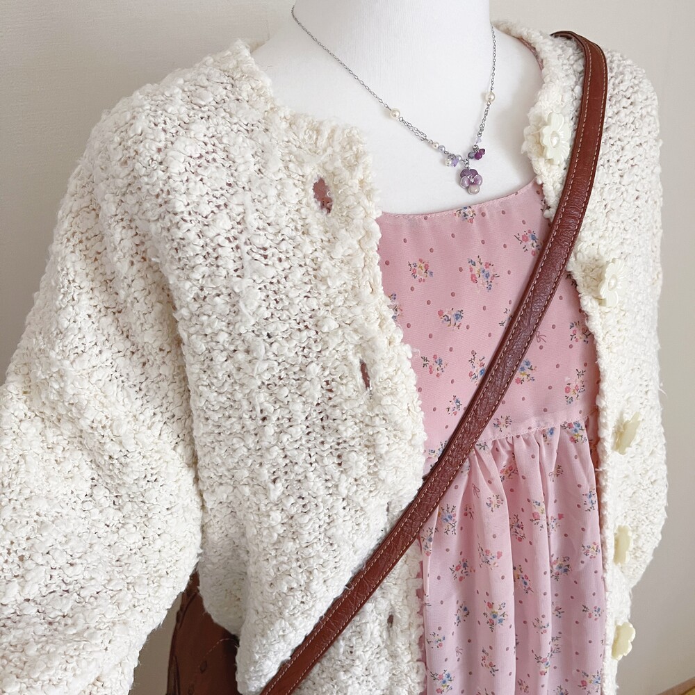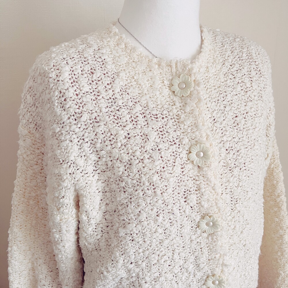 cp사의 아이보리 플라워 버튼 가디건이에요