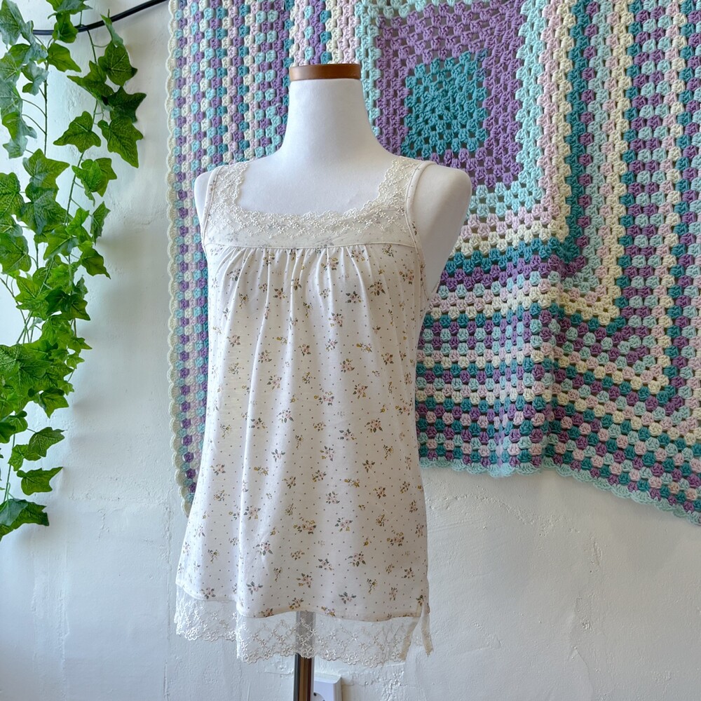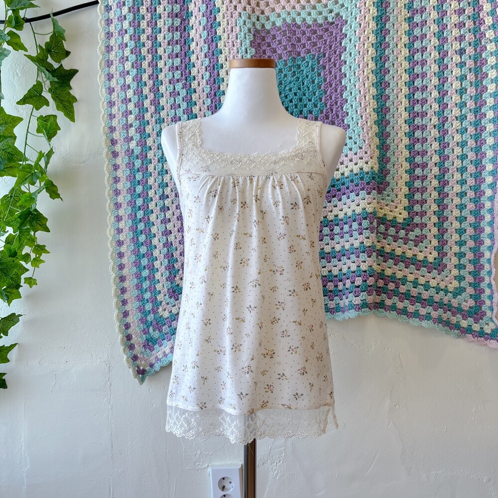 milky lace neck mini flower inner top