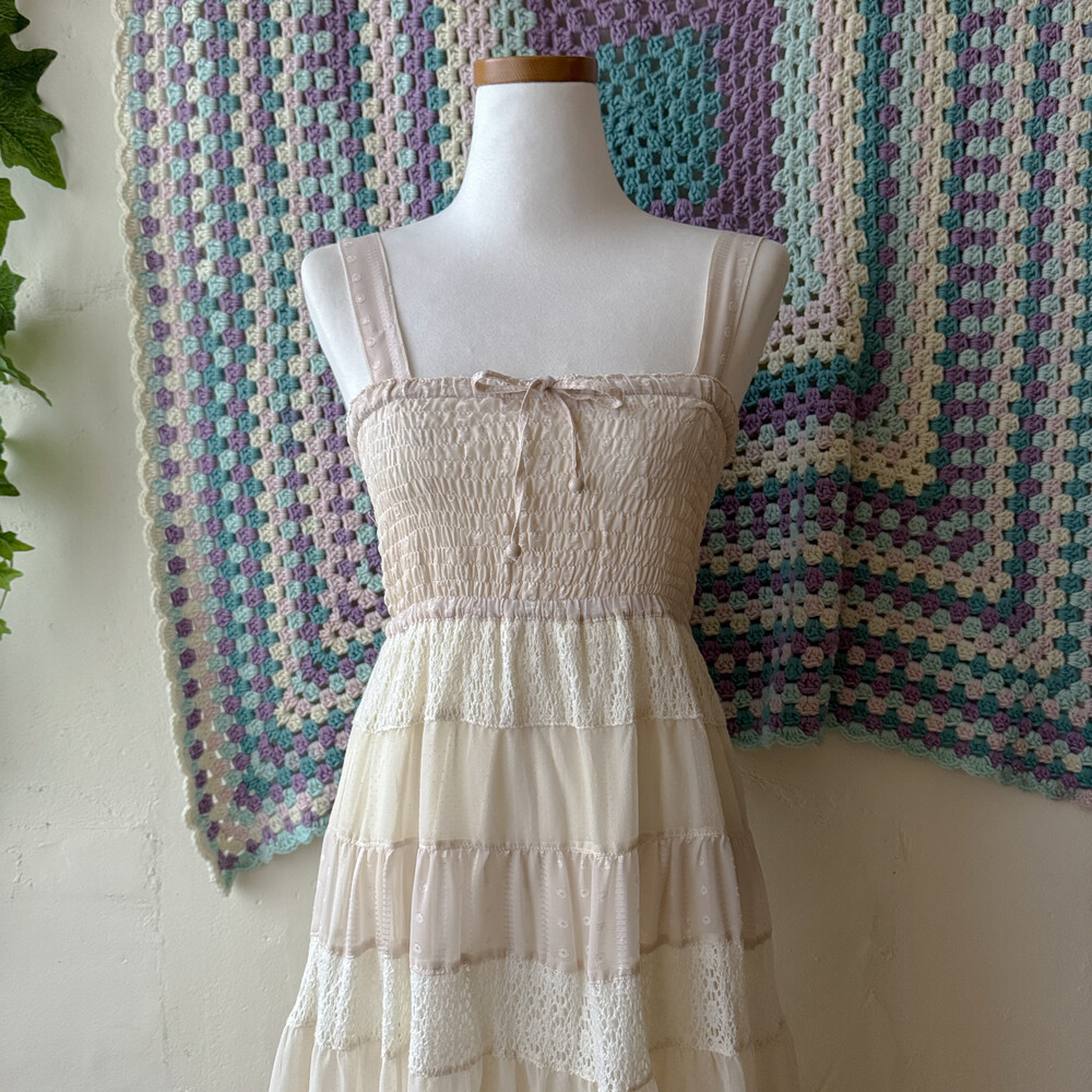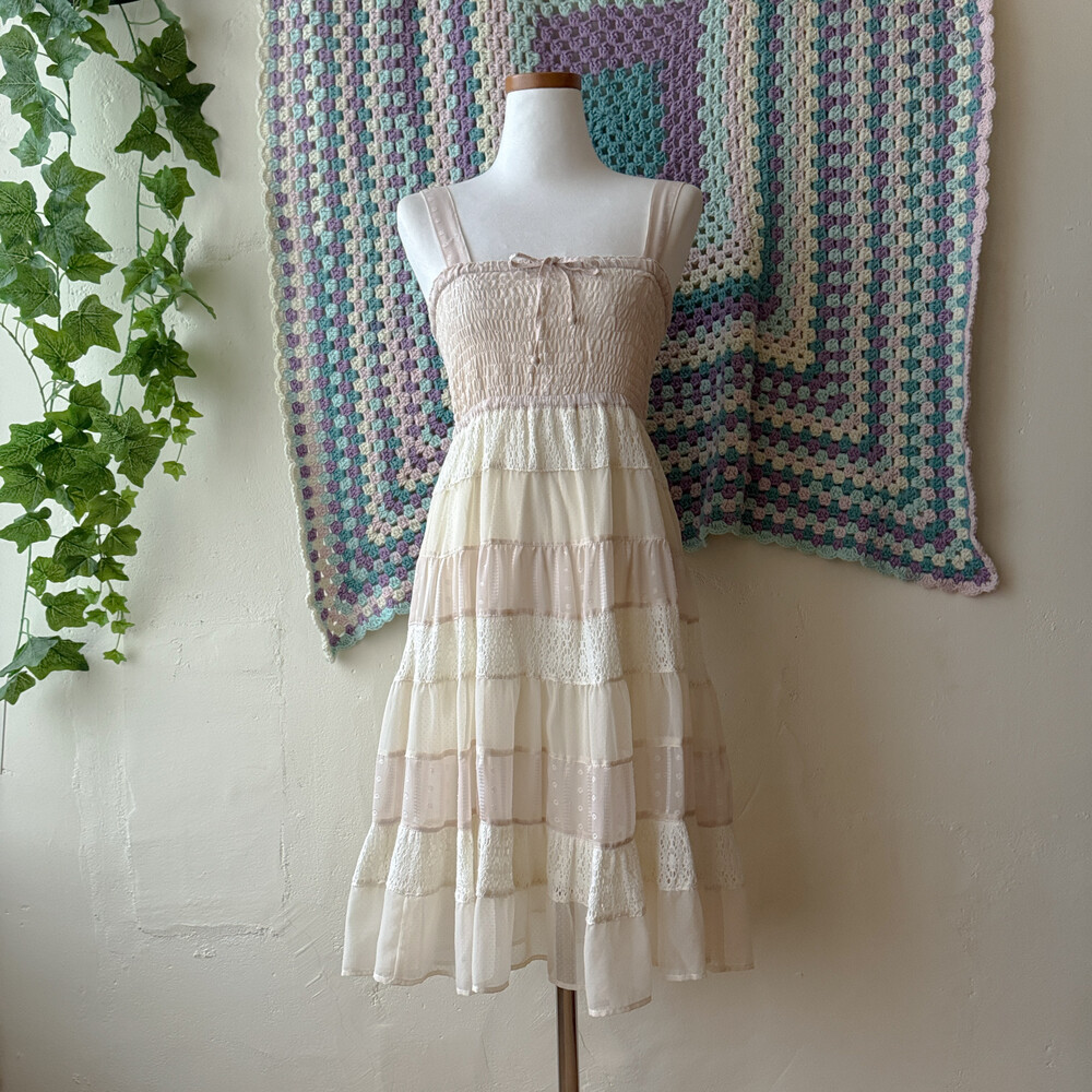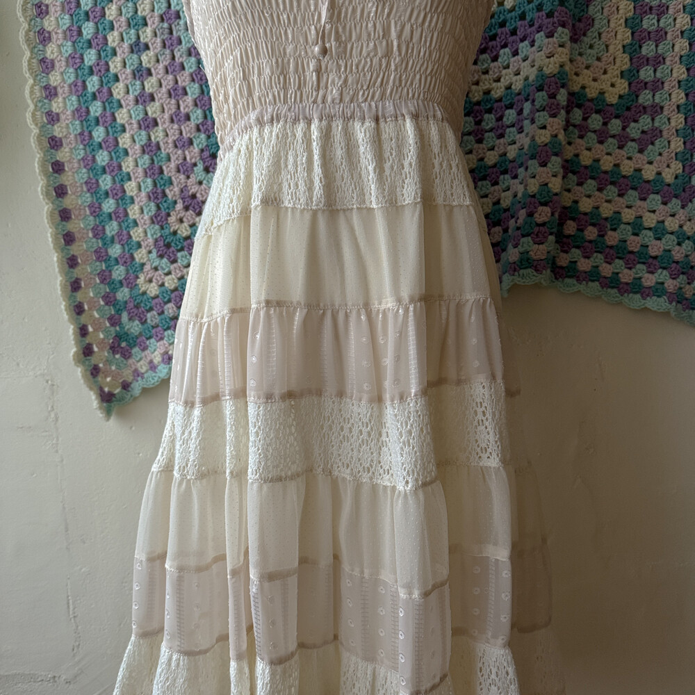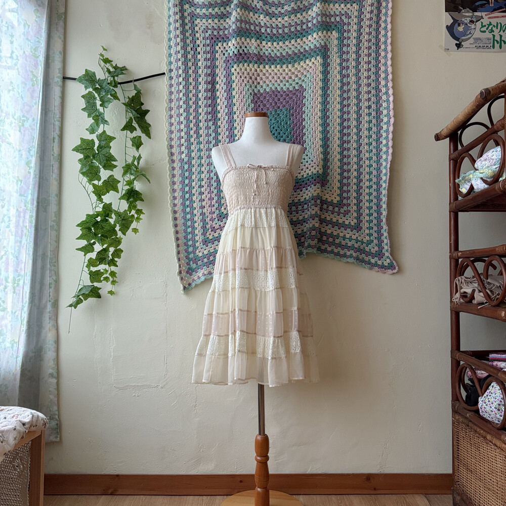 아이보리 색감의 패치워크 원피스예요