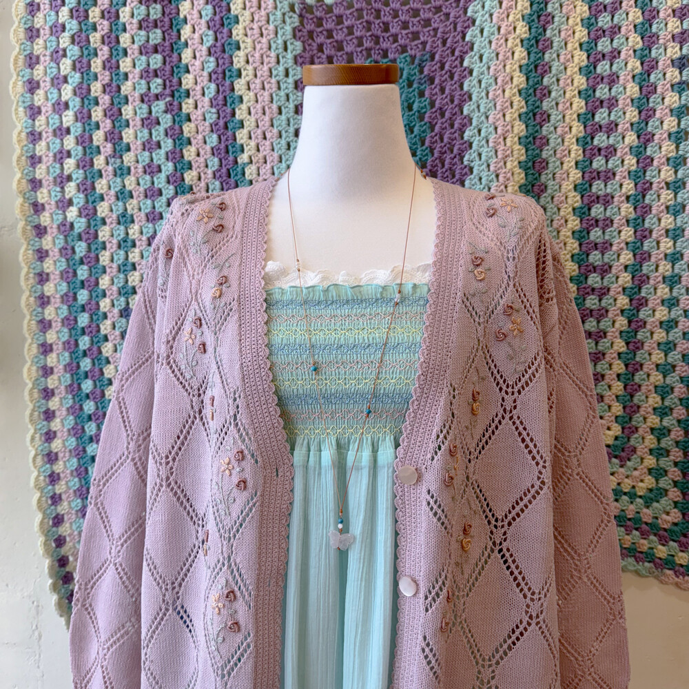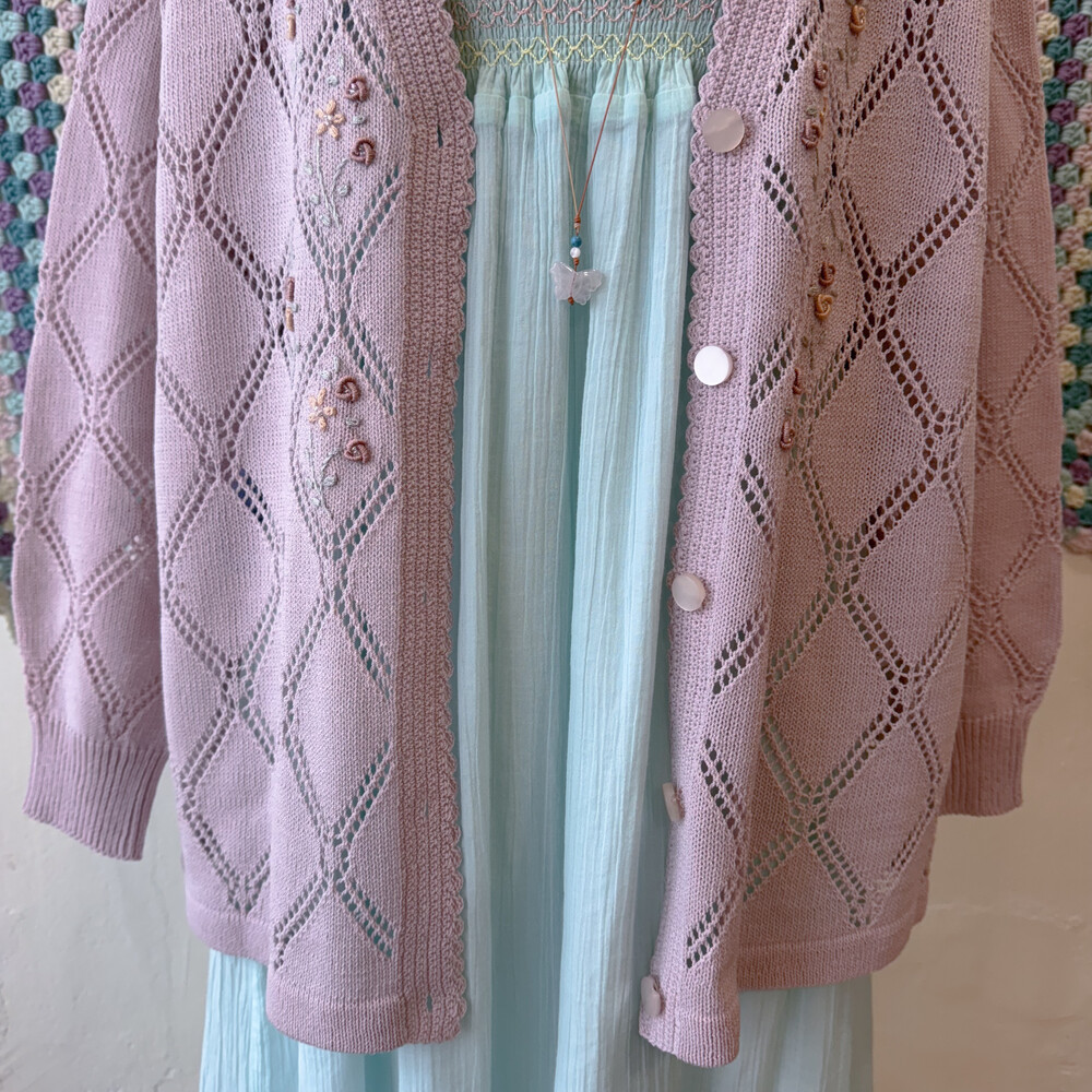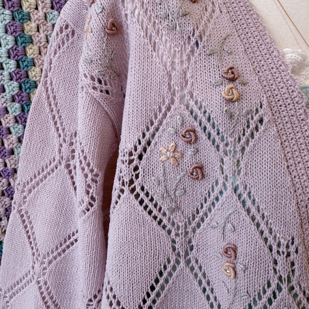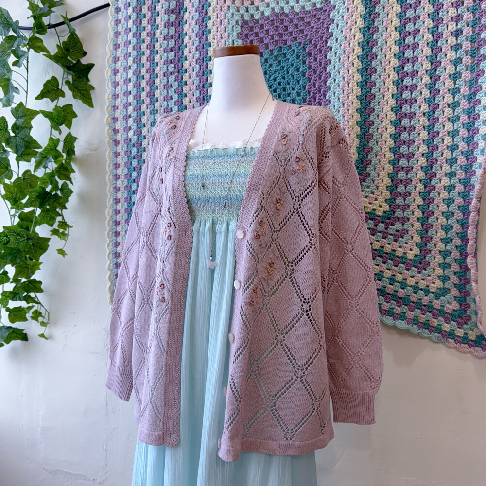 핑크 색감의 자수 비즈 포인트 가디건이에요