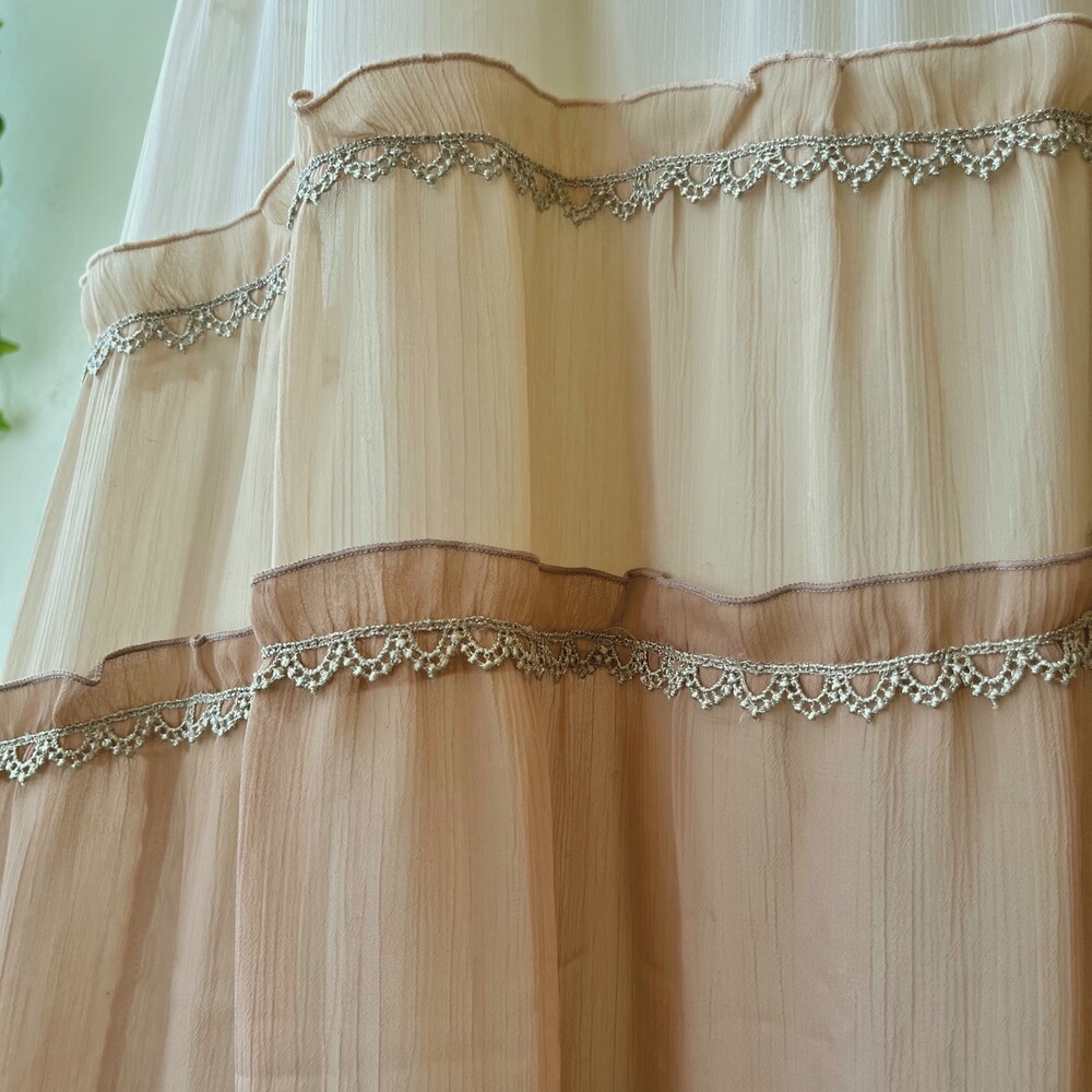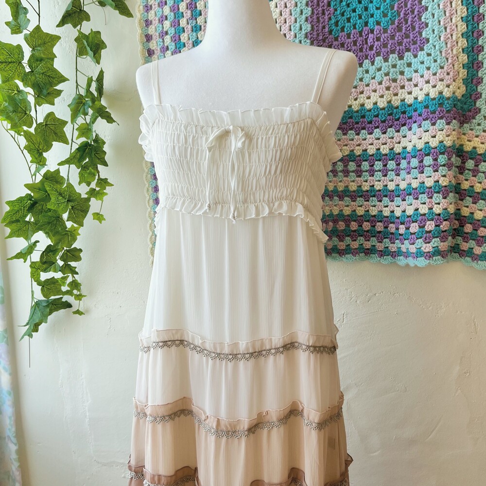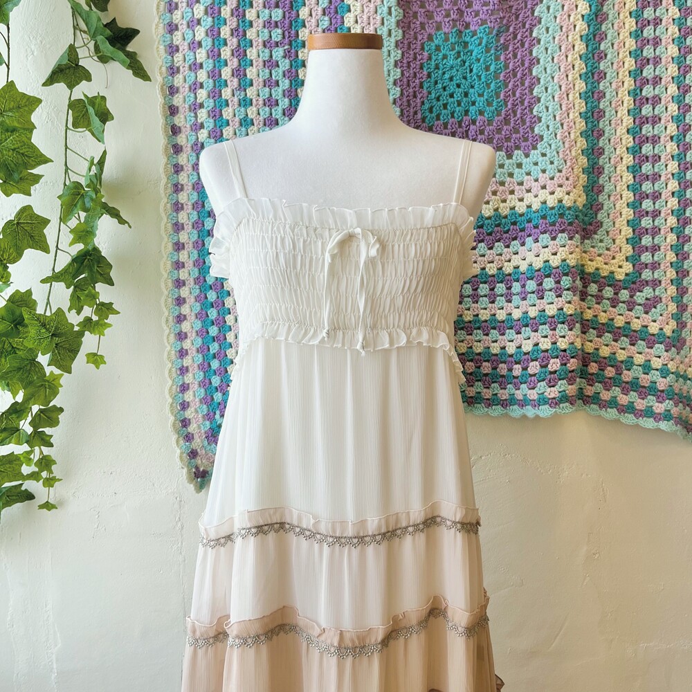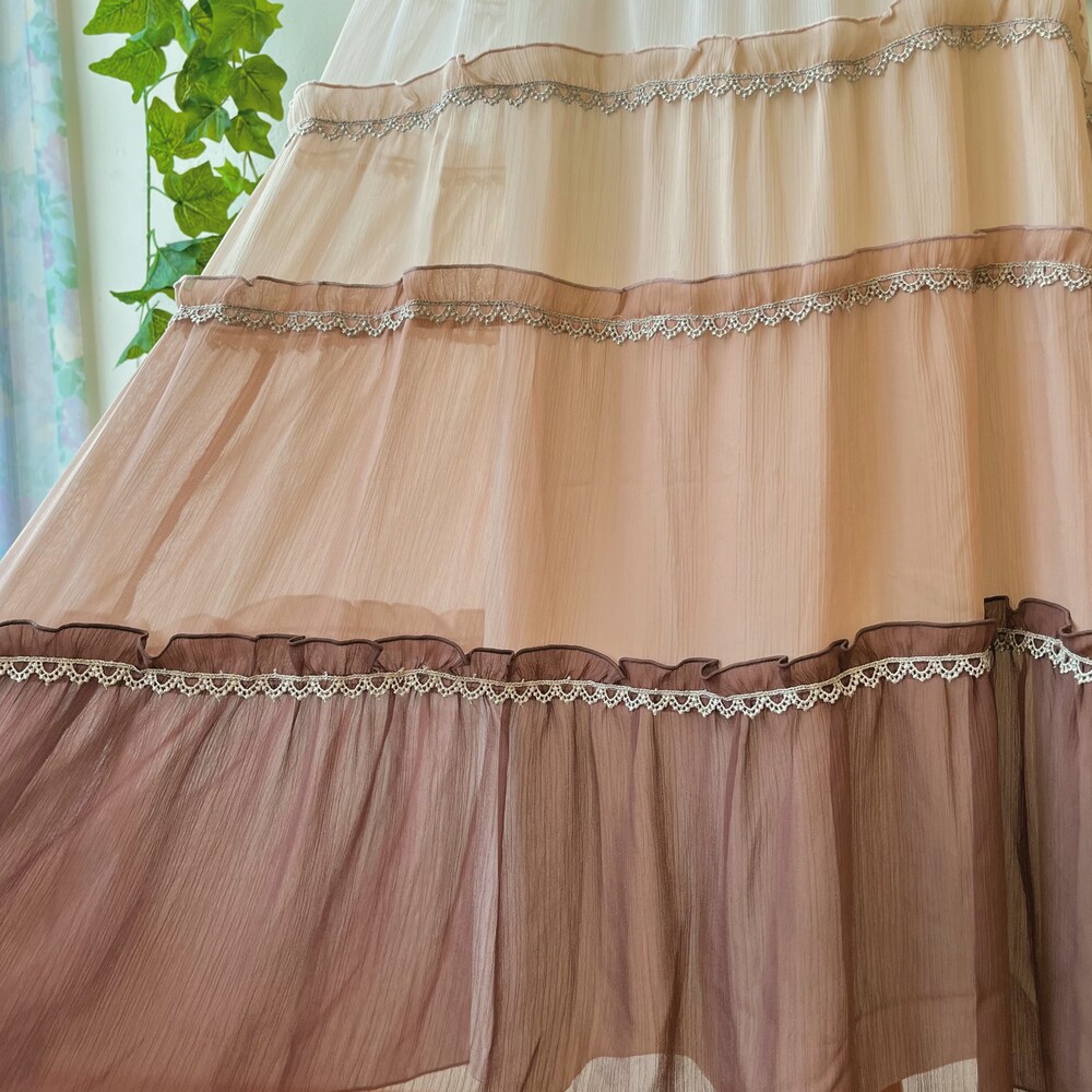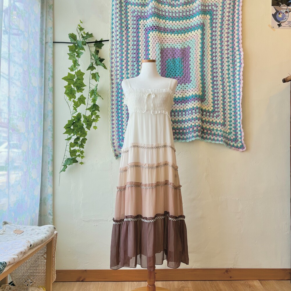 브라운 색감의 쉬폰 티어드 끈원피스예요