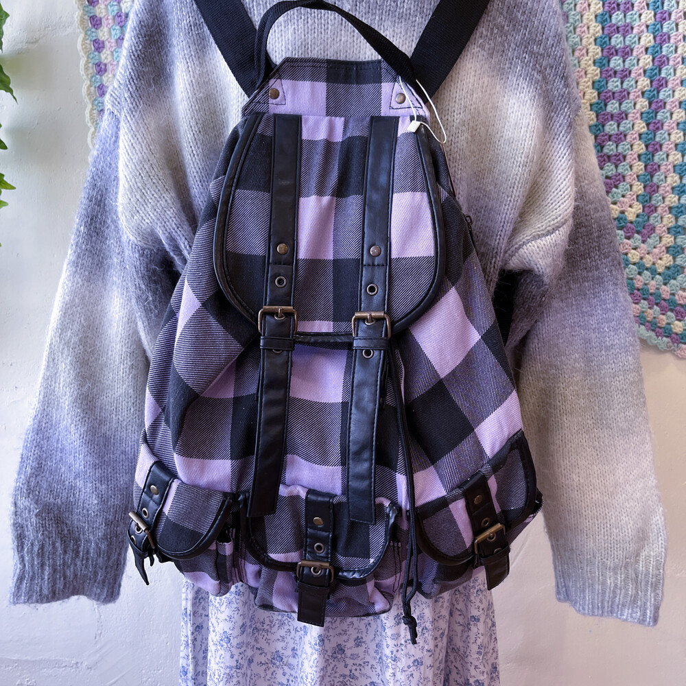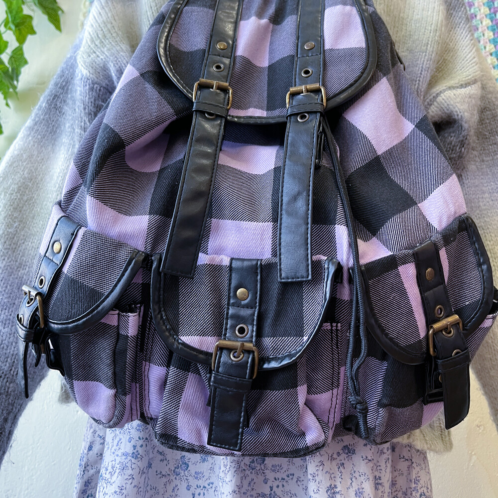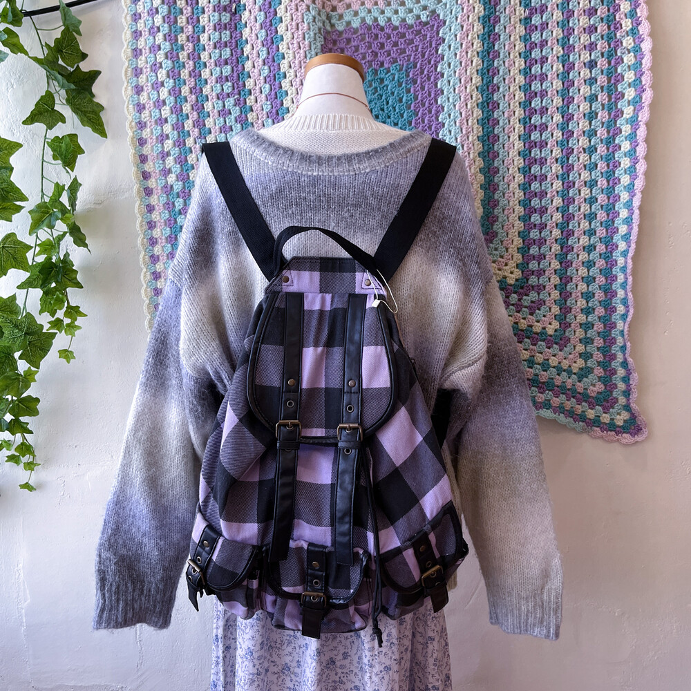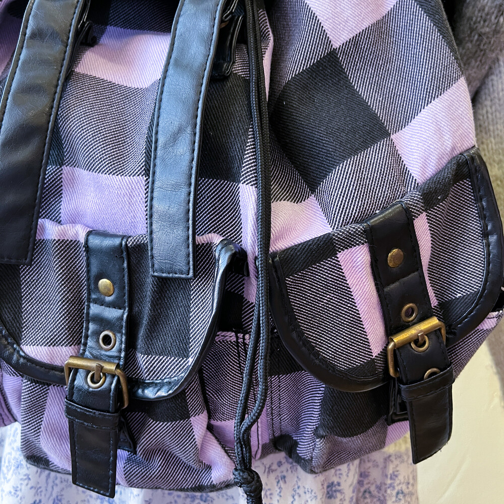 light purple&black check backpack