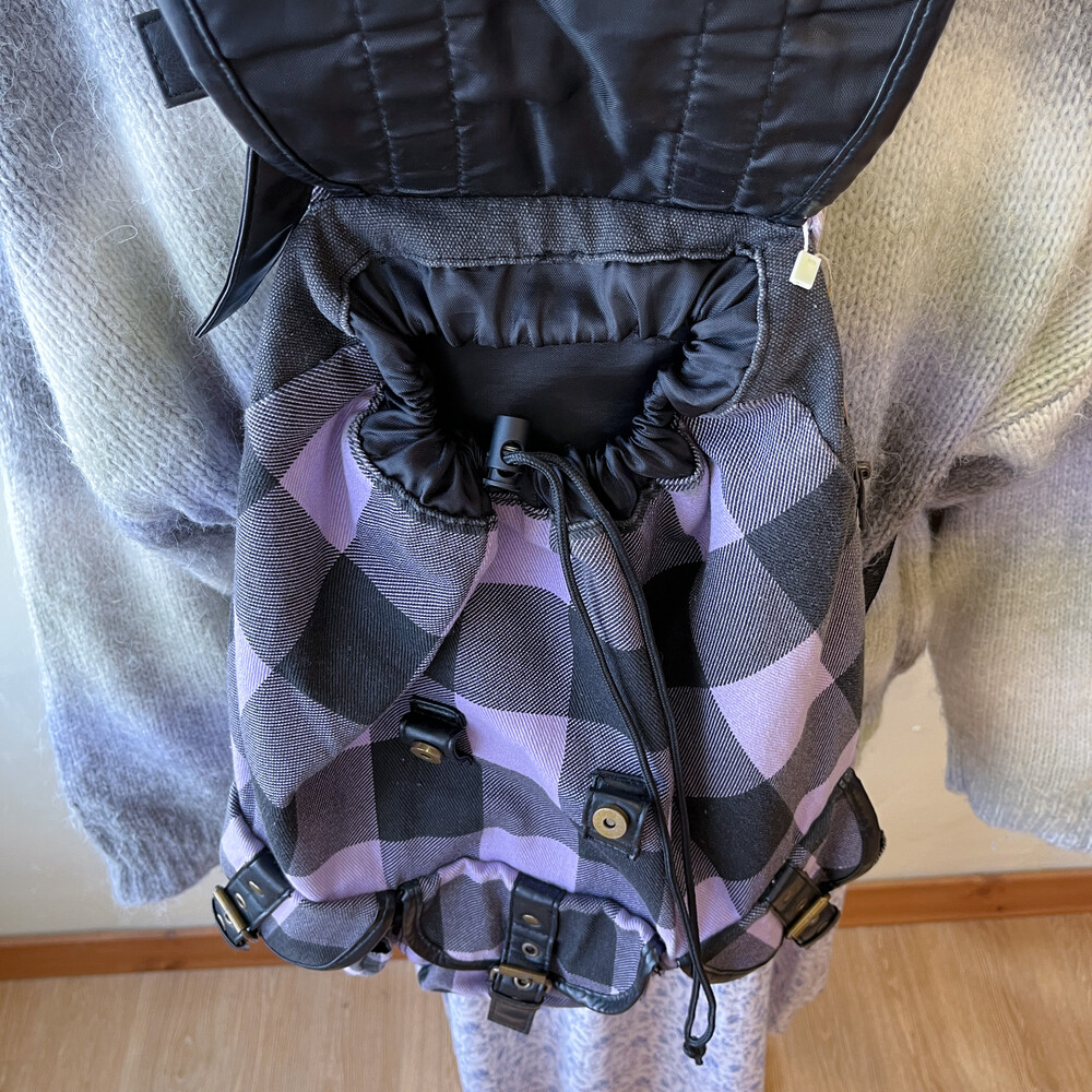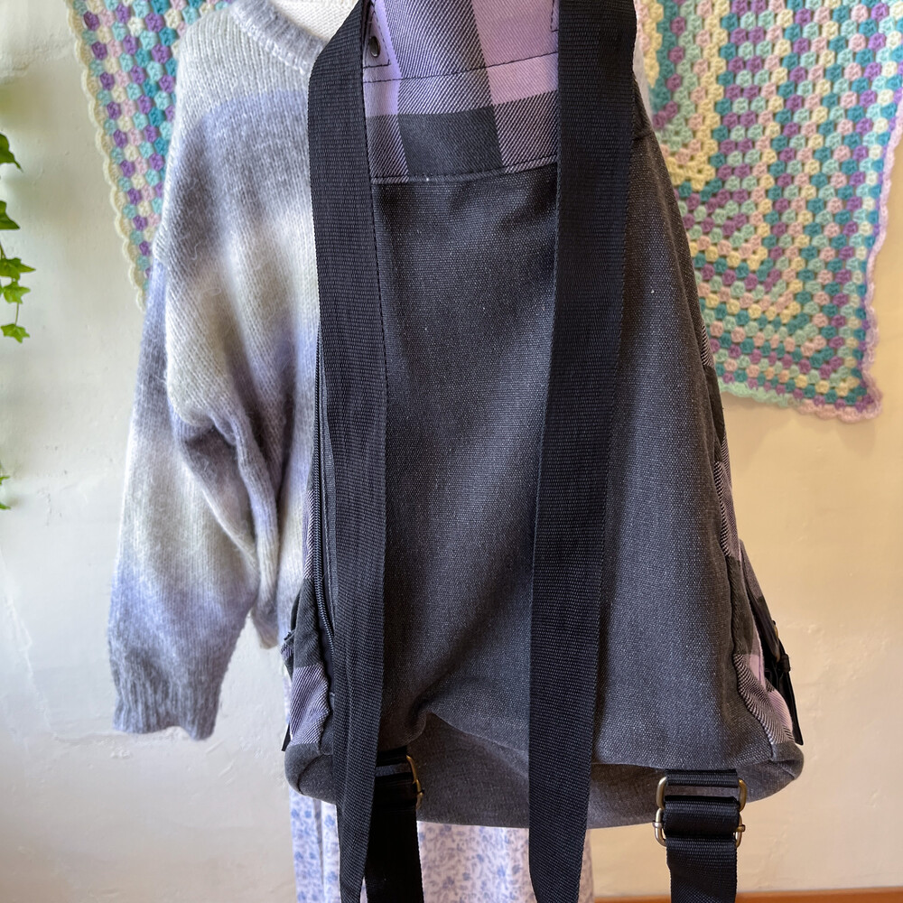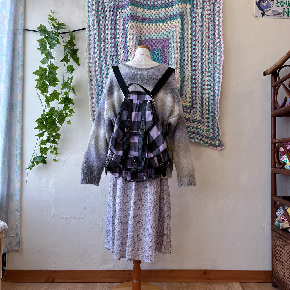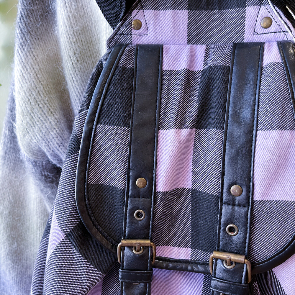 light purple&black check backpack
