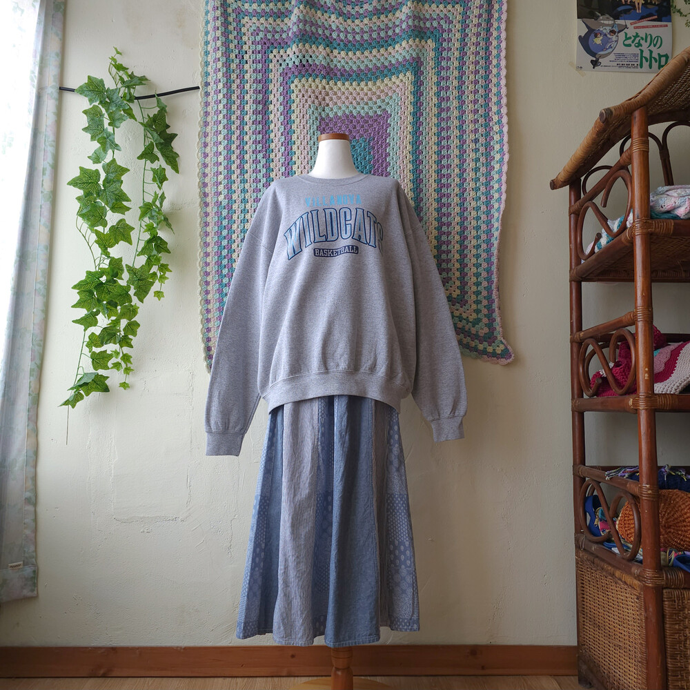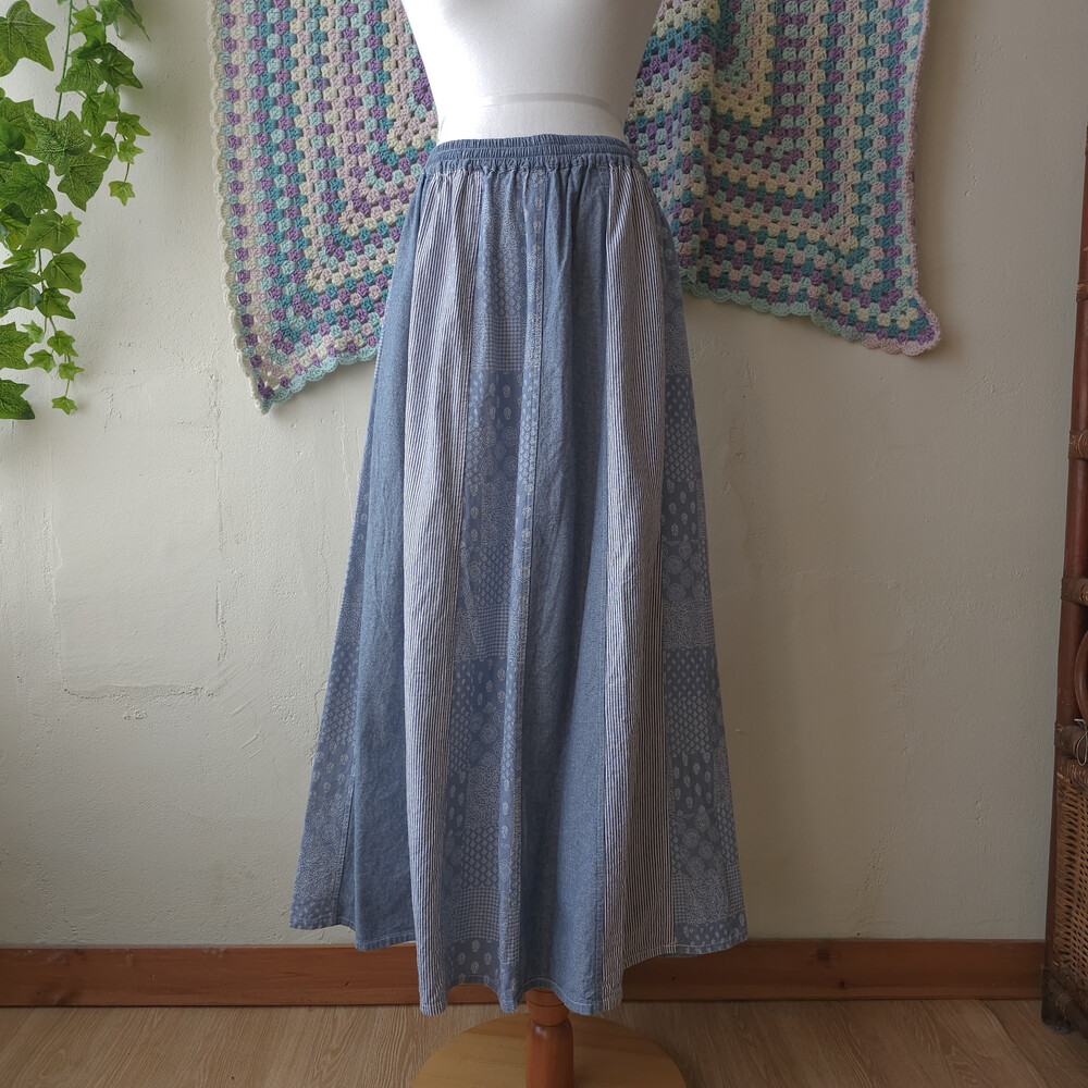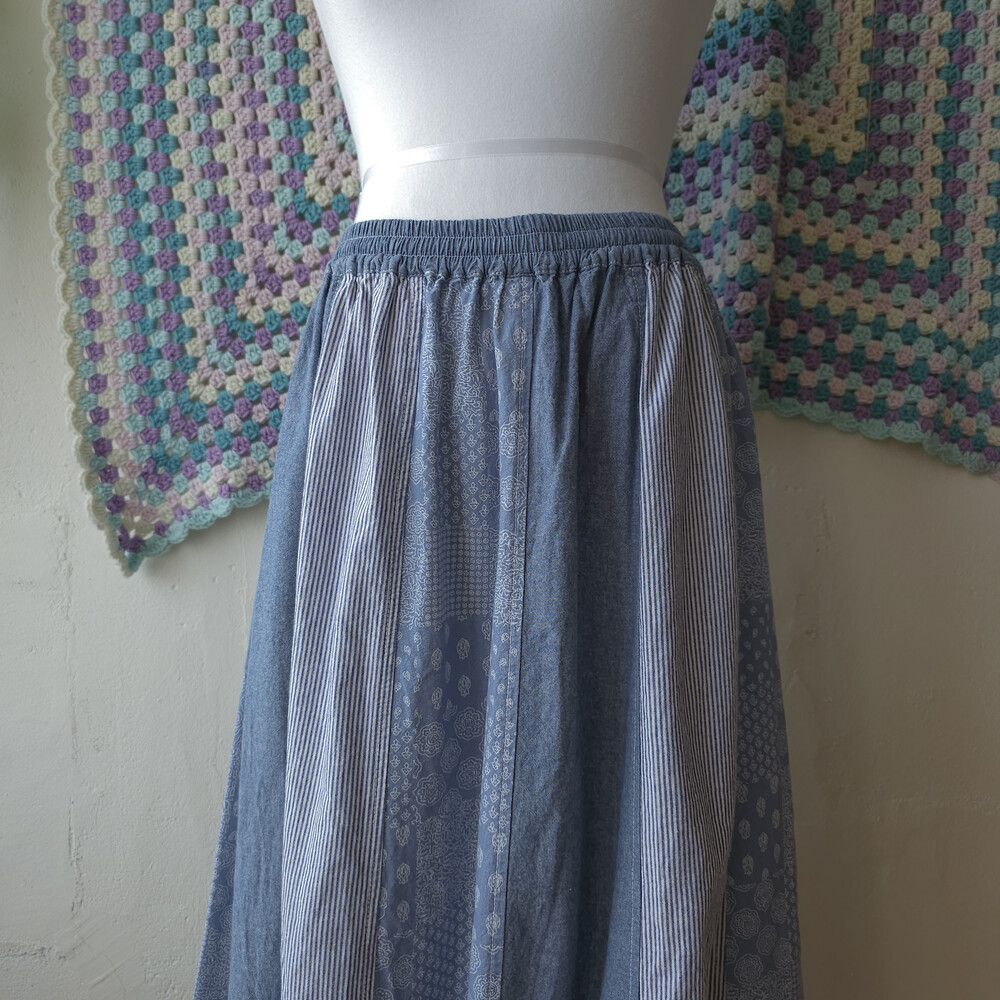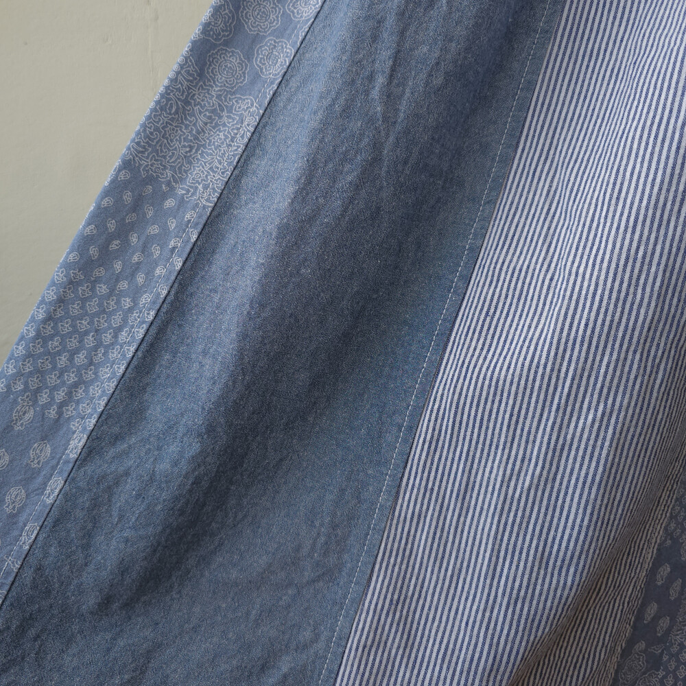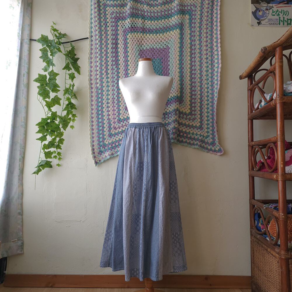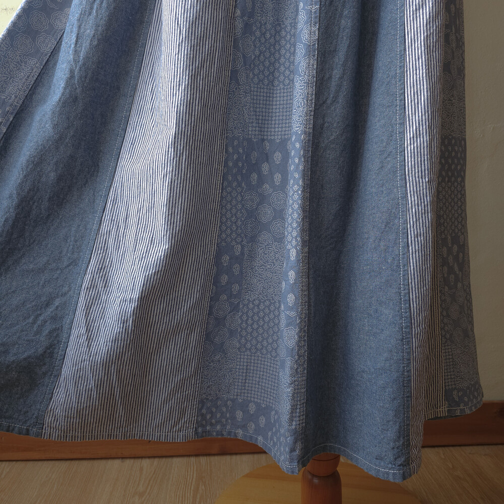 뮤트한 중청느낌의 데님 패치워크 스커트예요