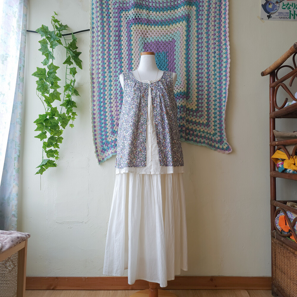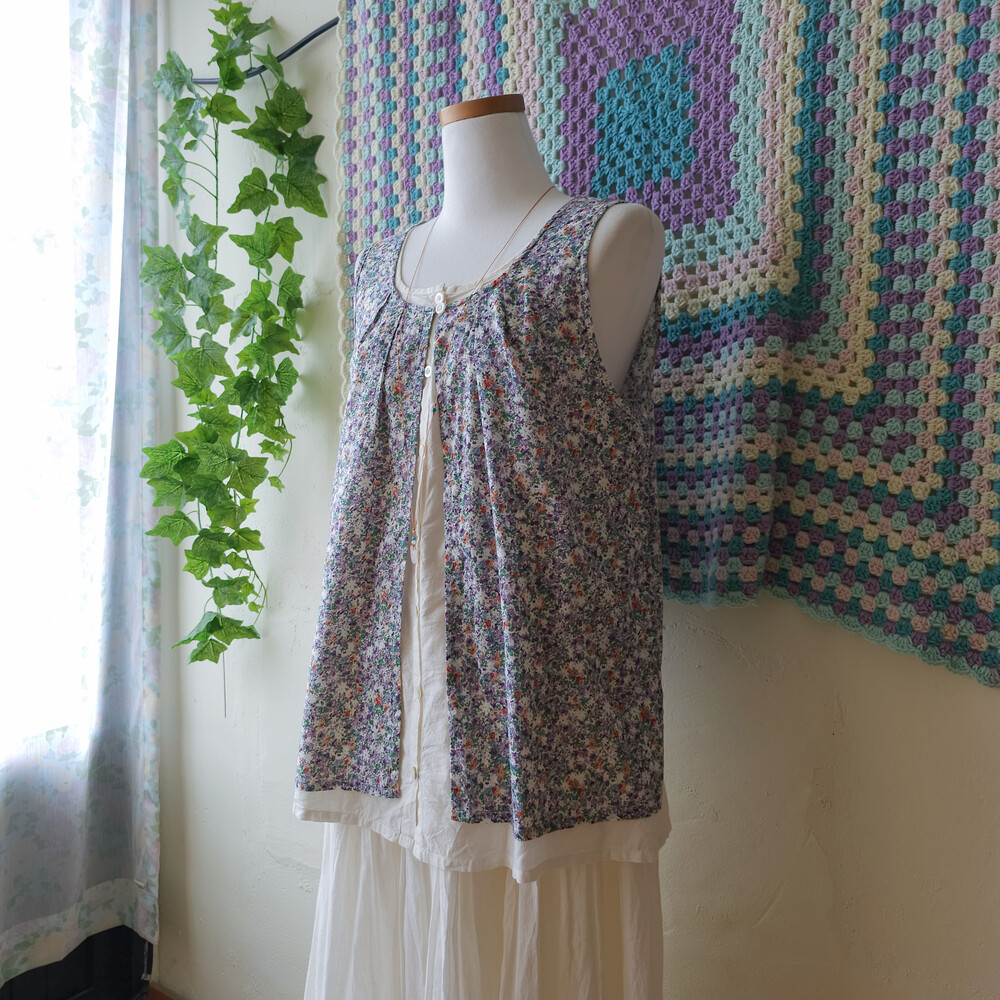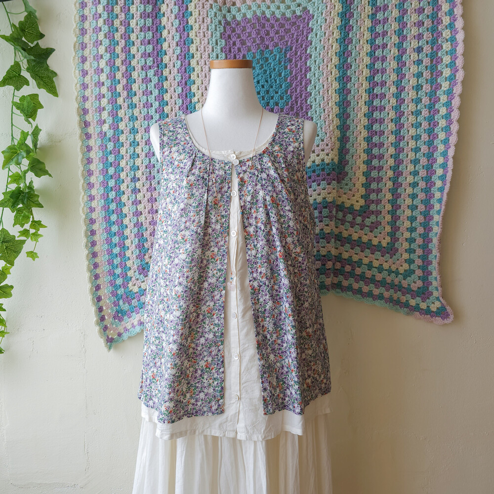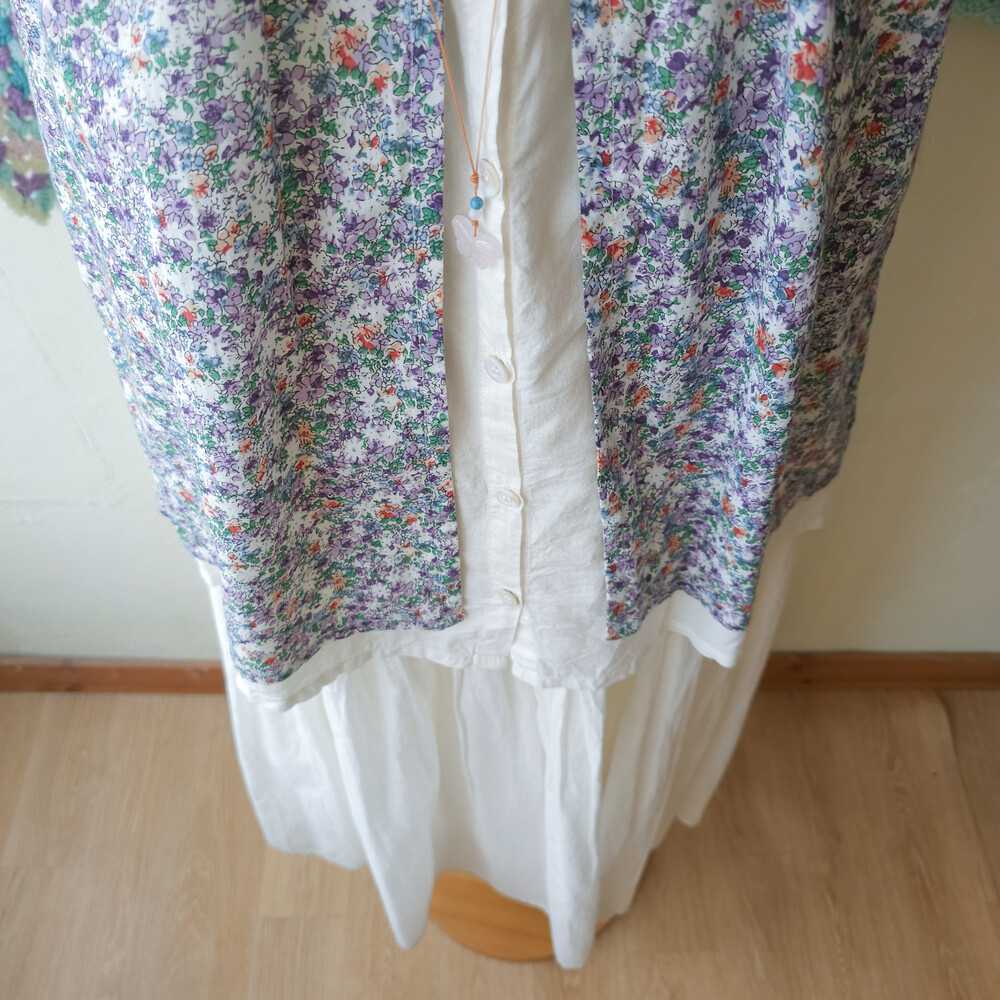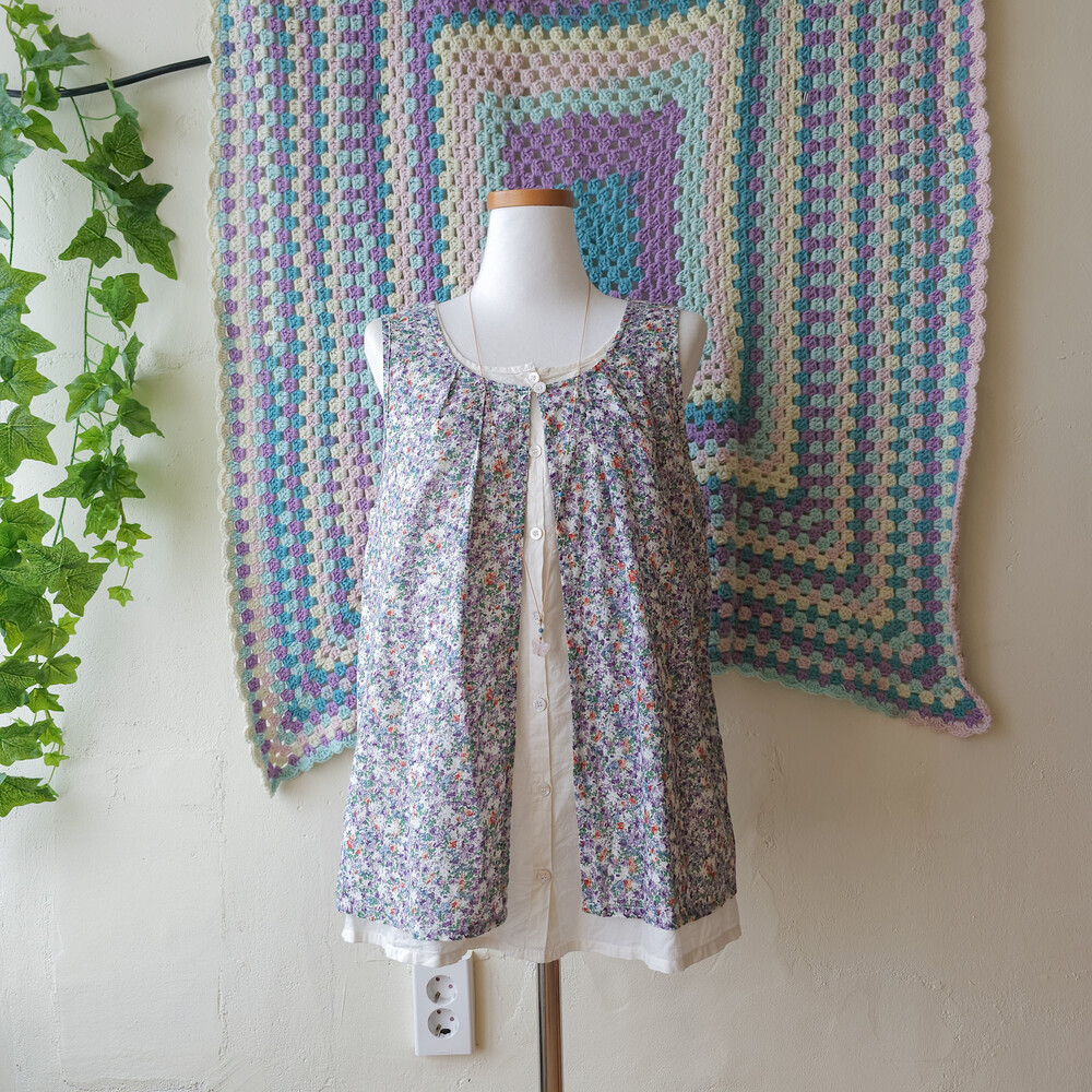 purple&green mini flower layered tunic