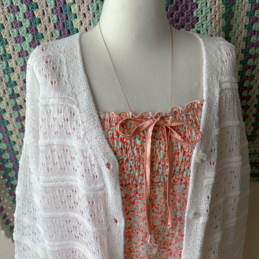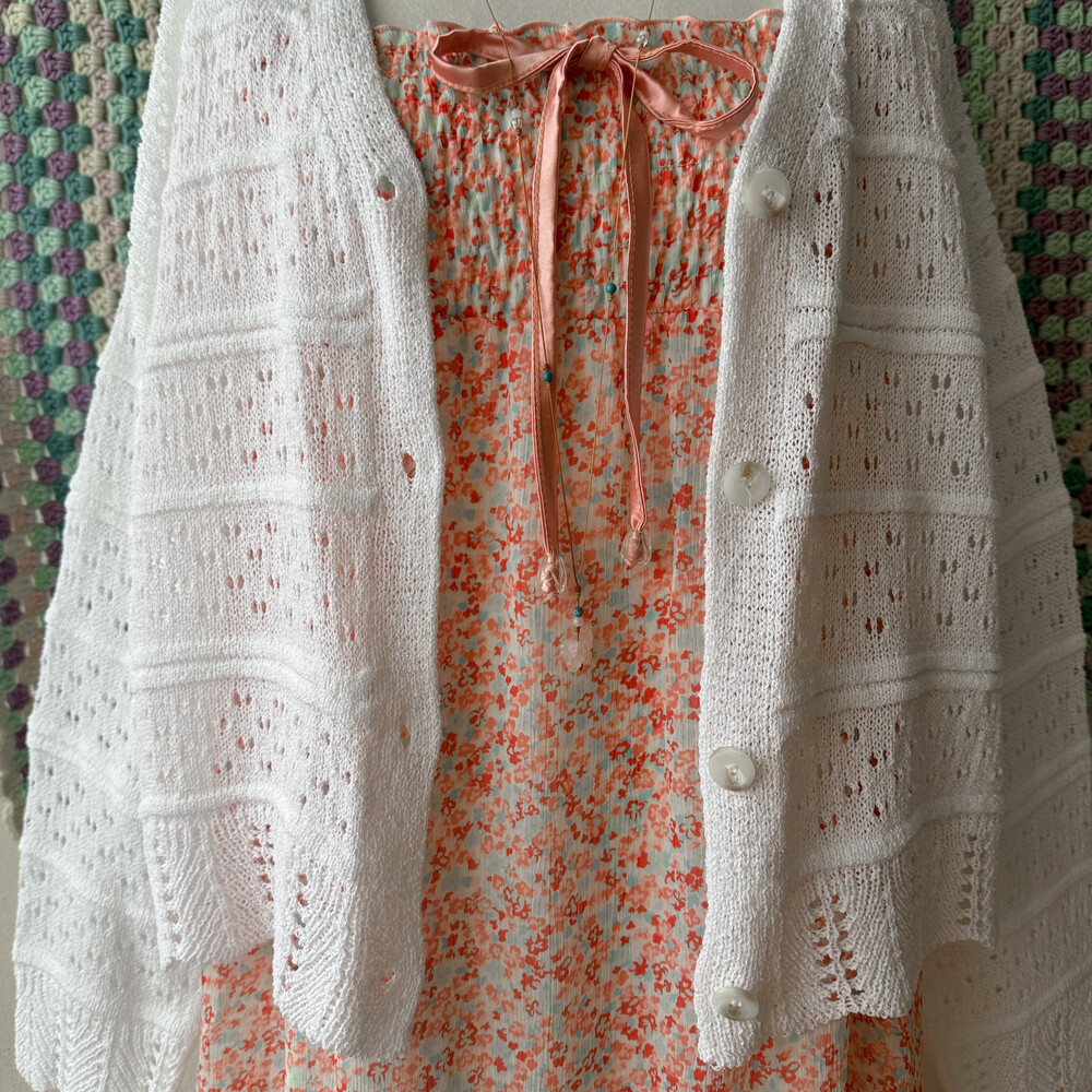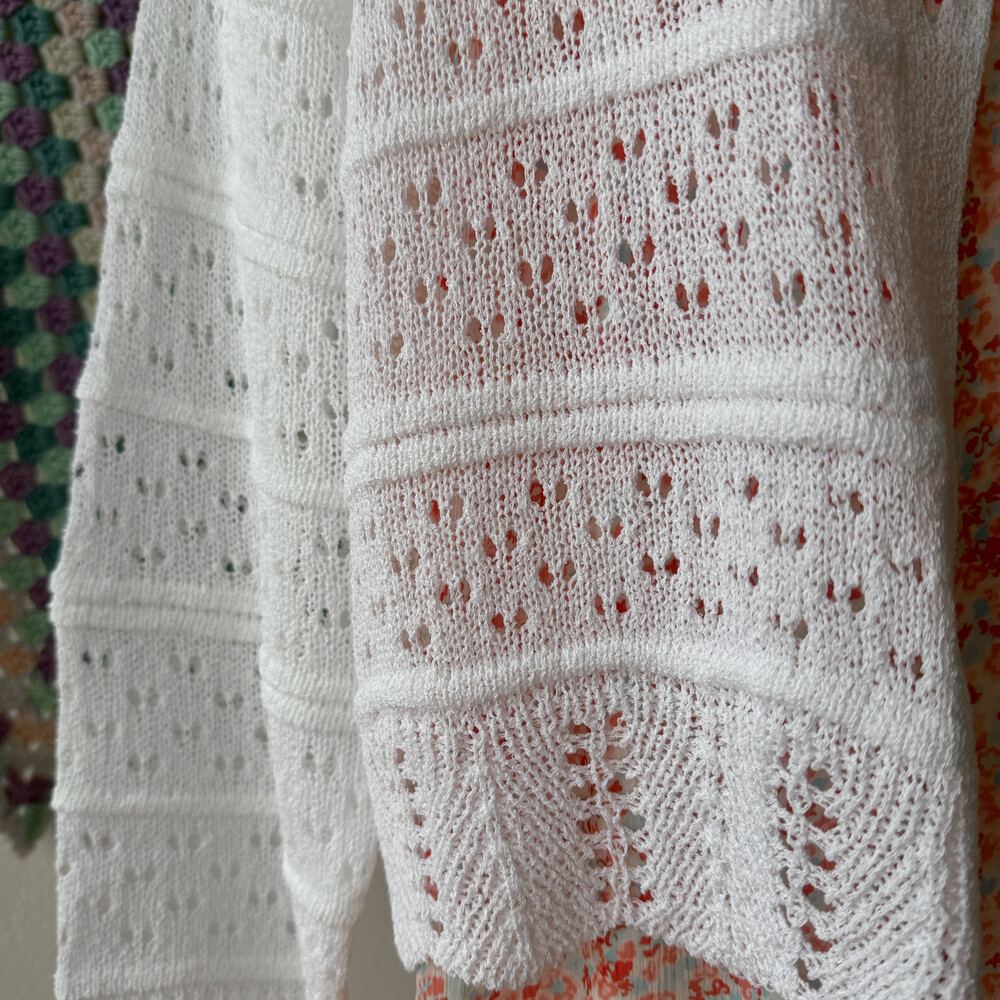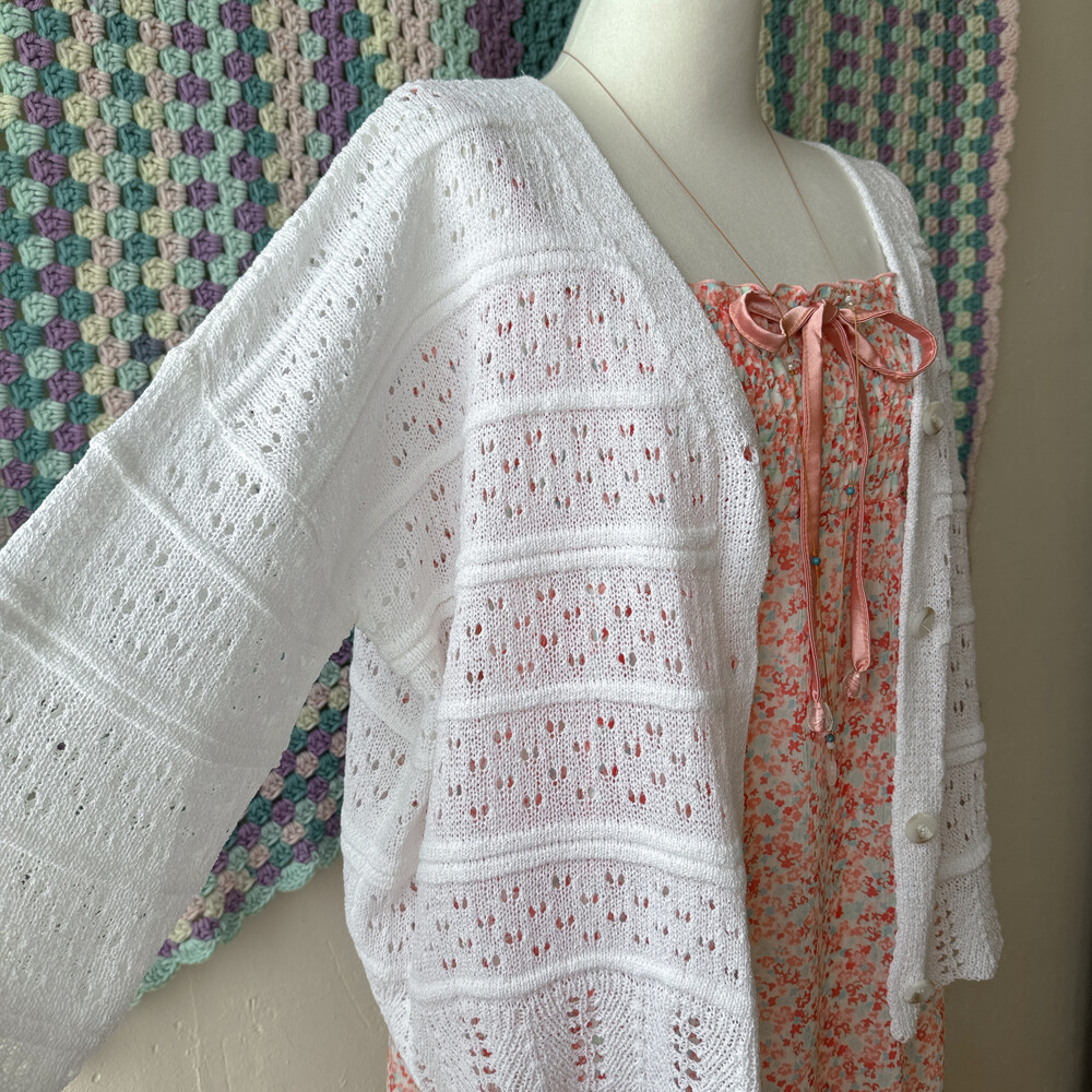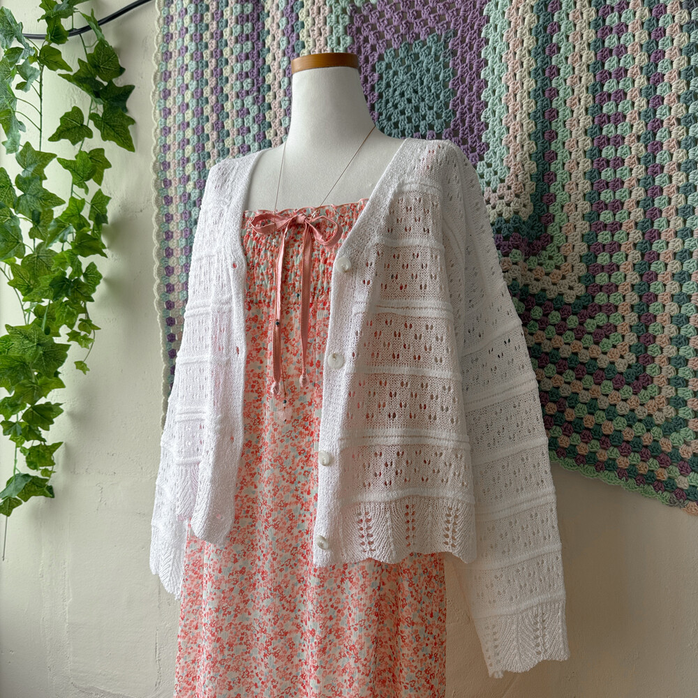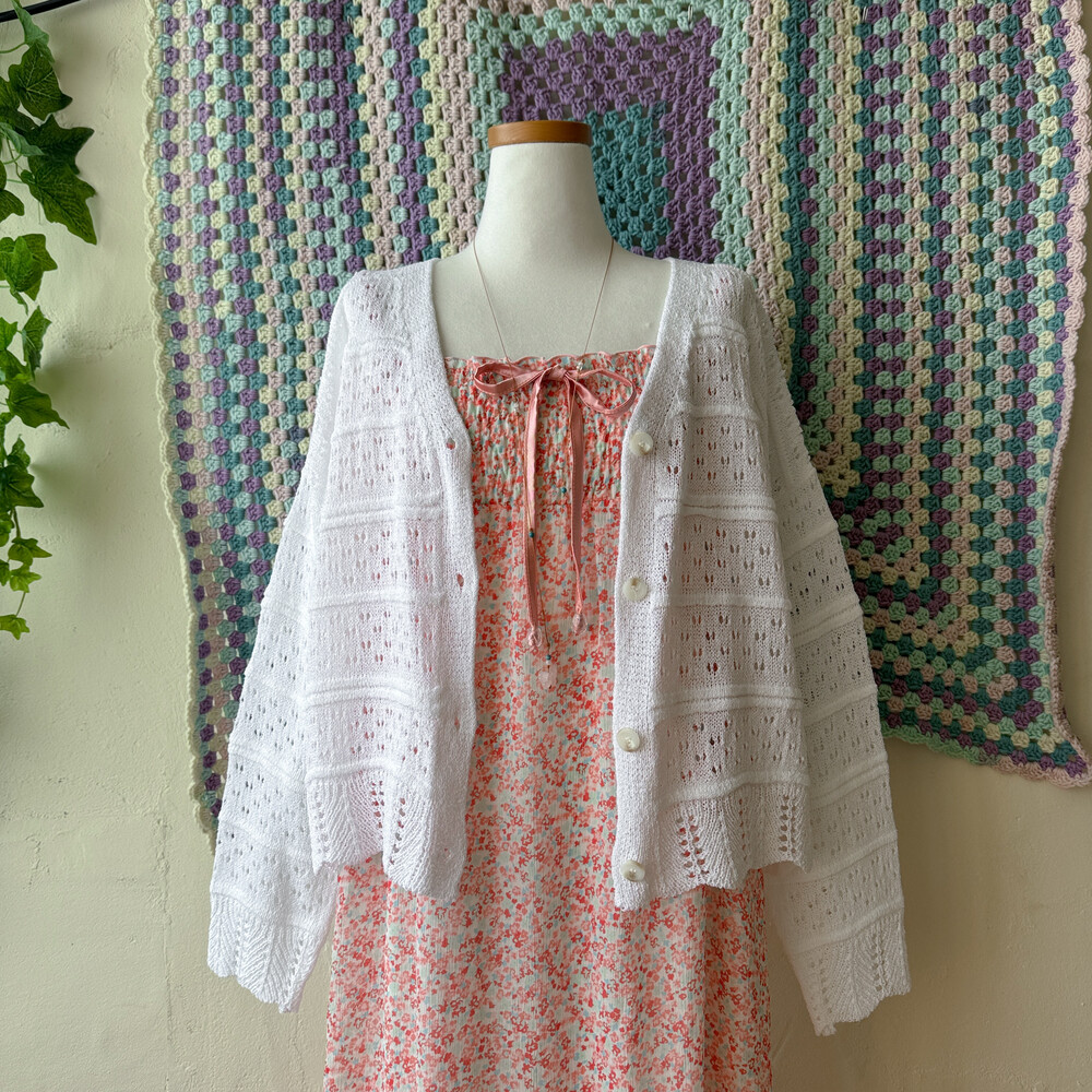 화이트 색감의 펀칭, 물결 디자인 가디건이에요