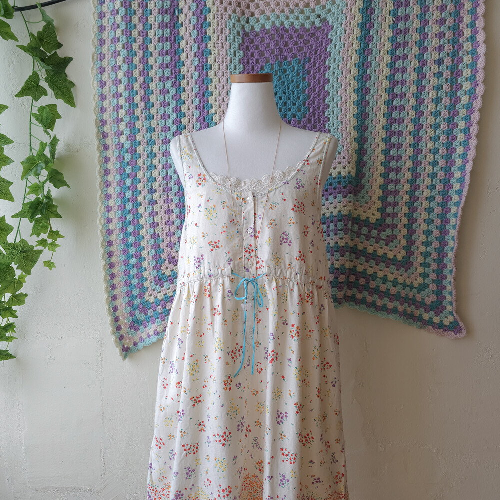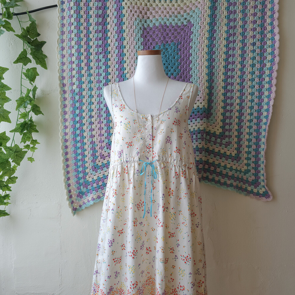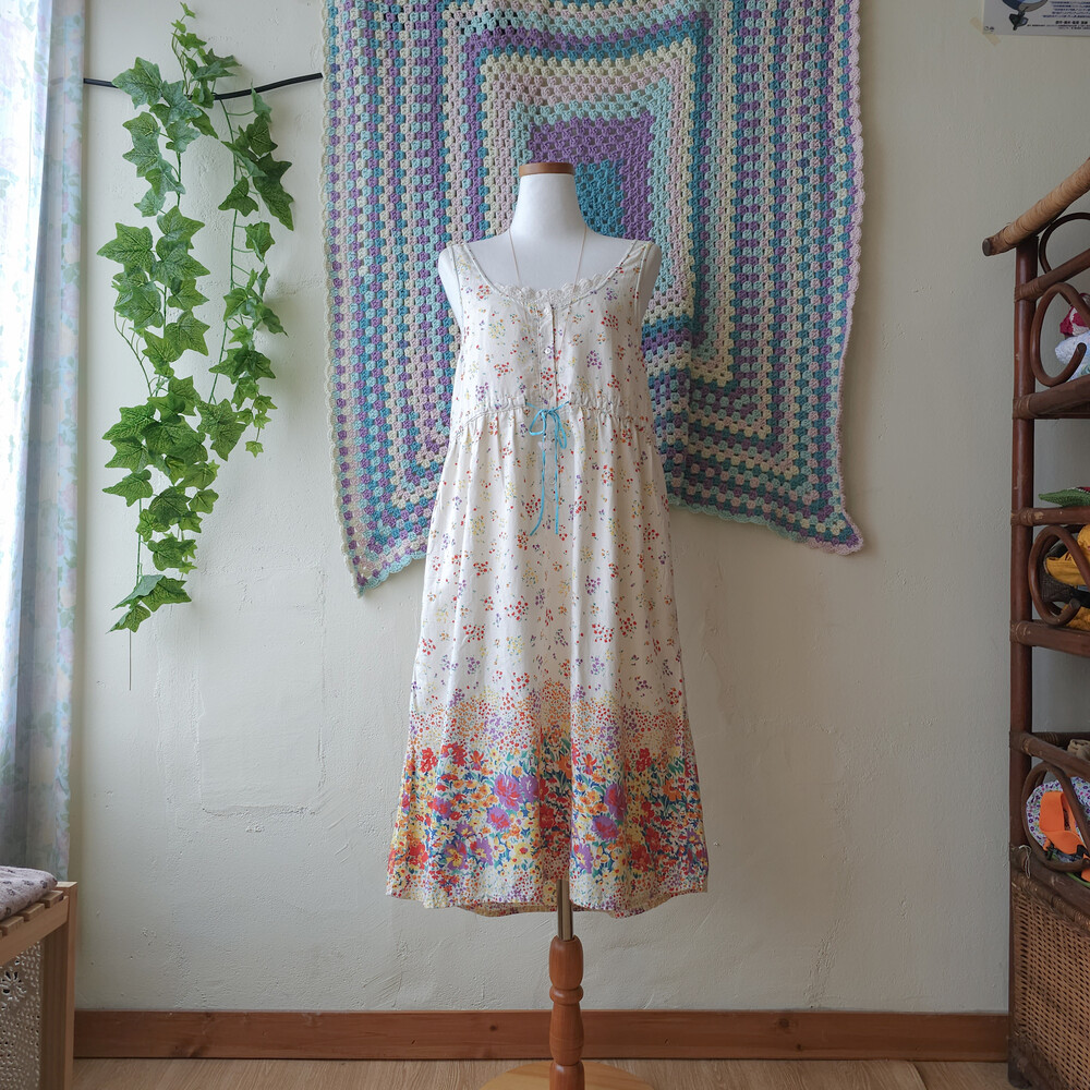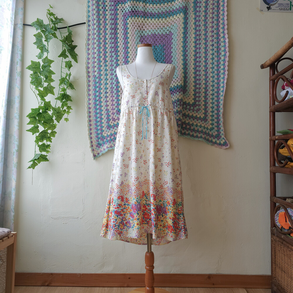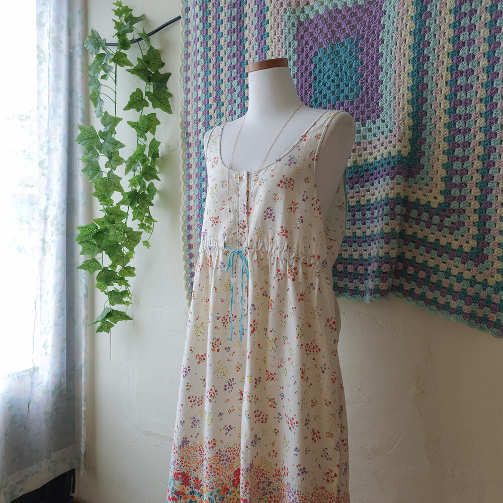 꽃무늬 코튼 민소매 버튼업 원피스예요