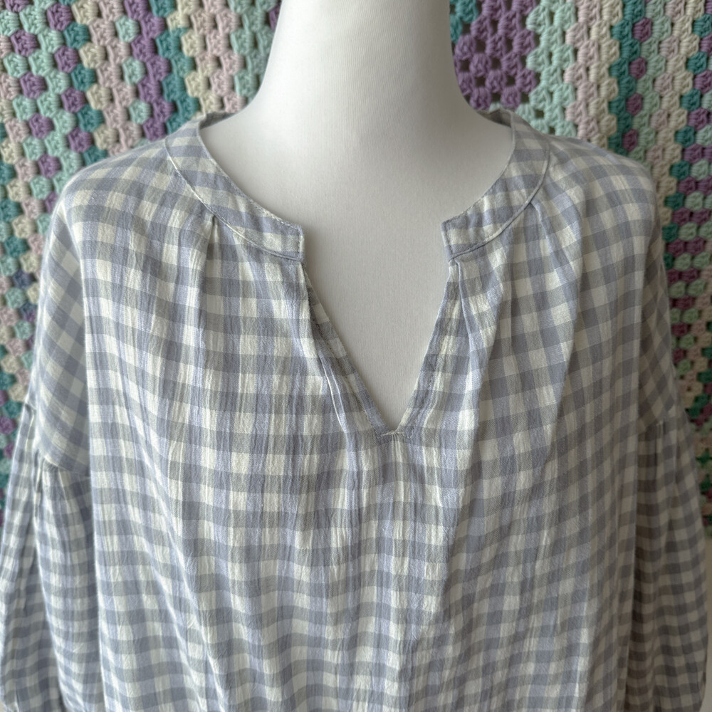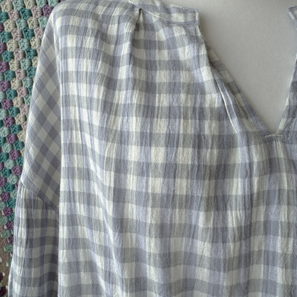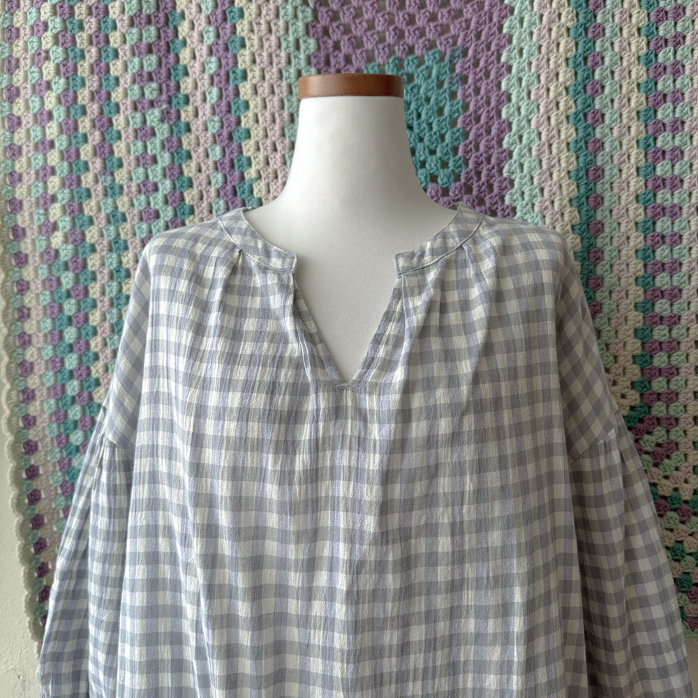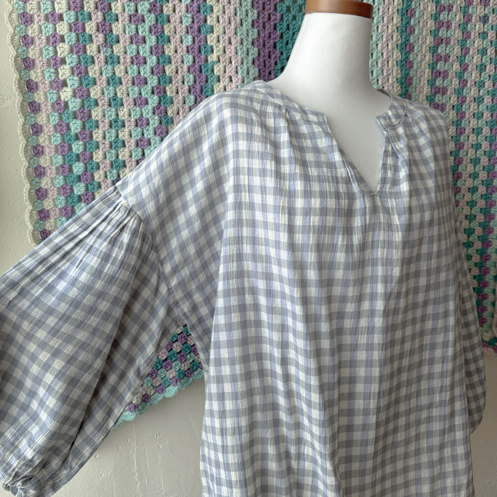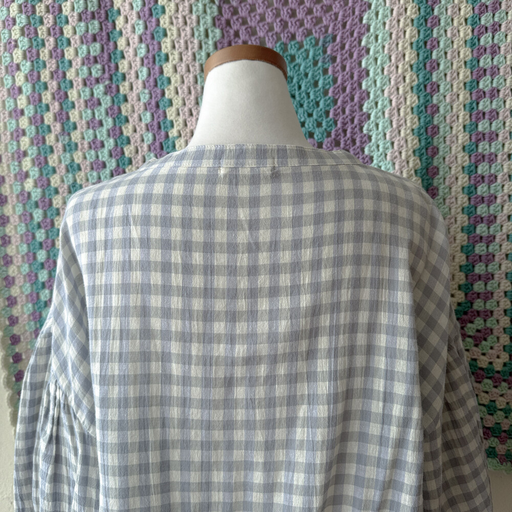 청보라와 그레이 조합의 체크 블라우스예요