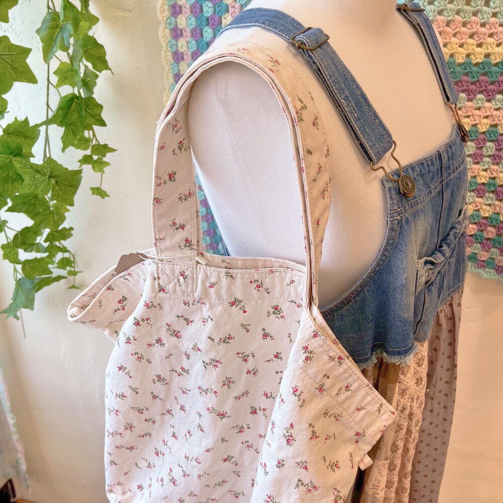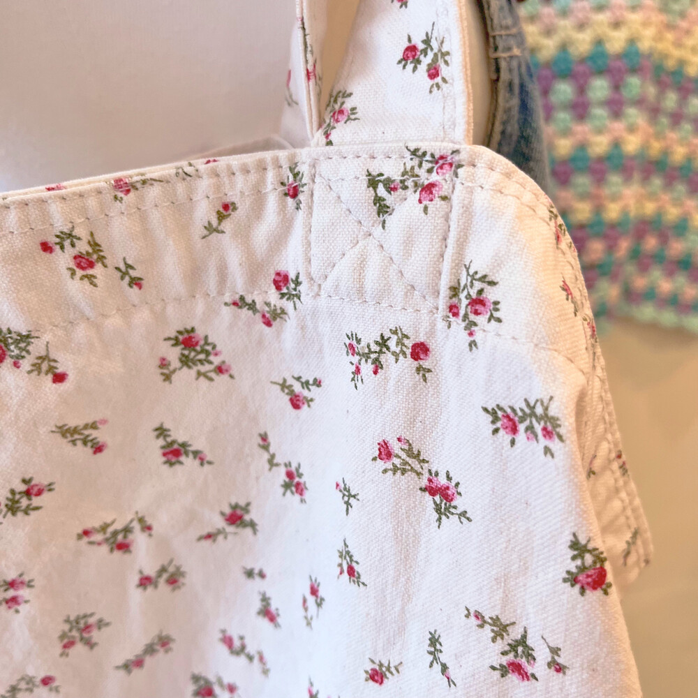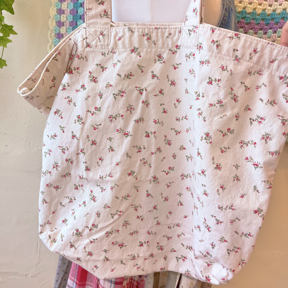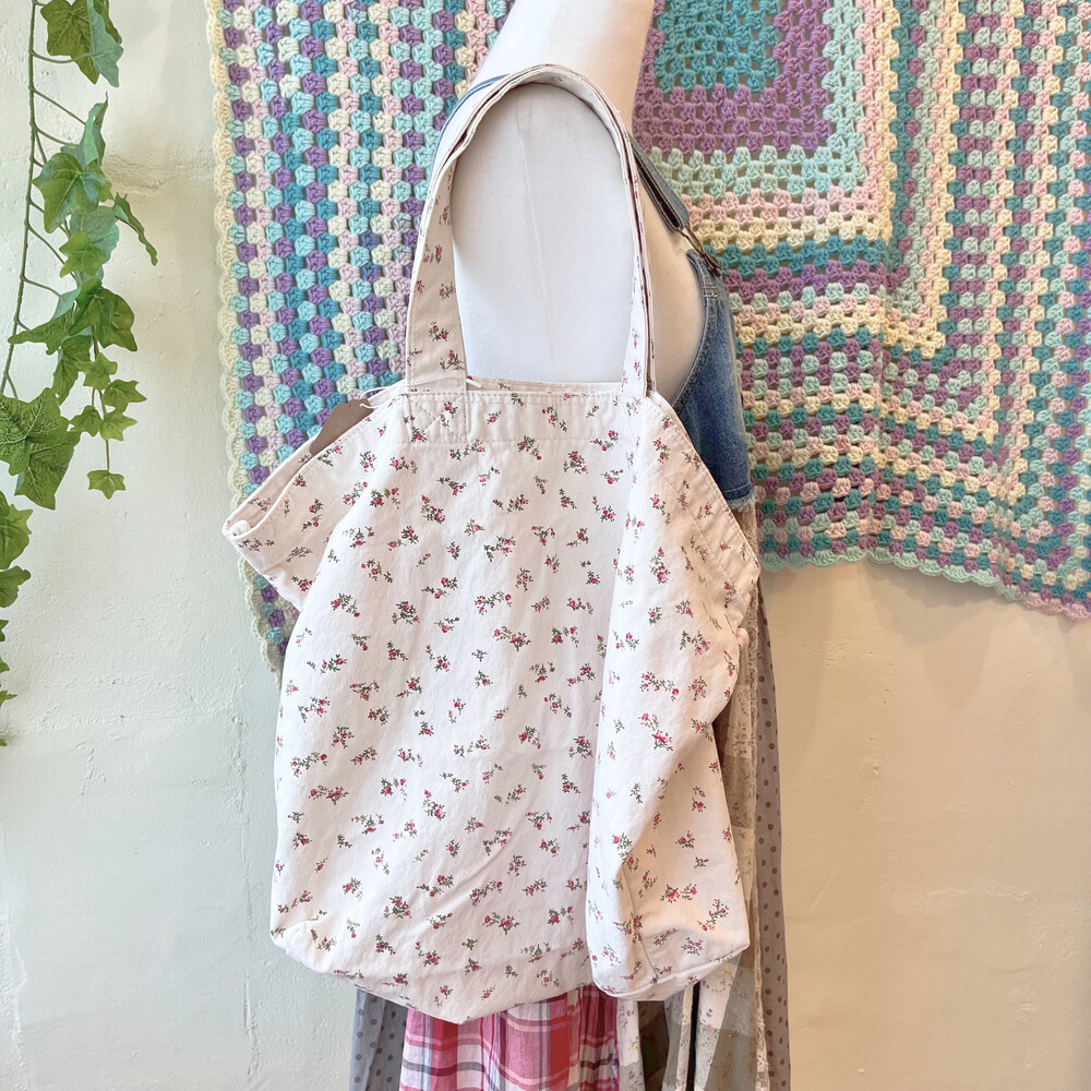 아이보리 색감 베이스의 잔꽃 빅 숄더백이에요