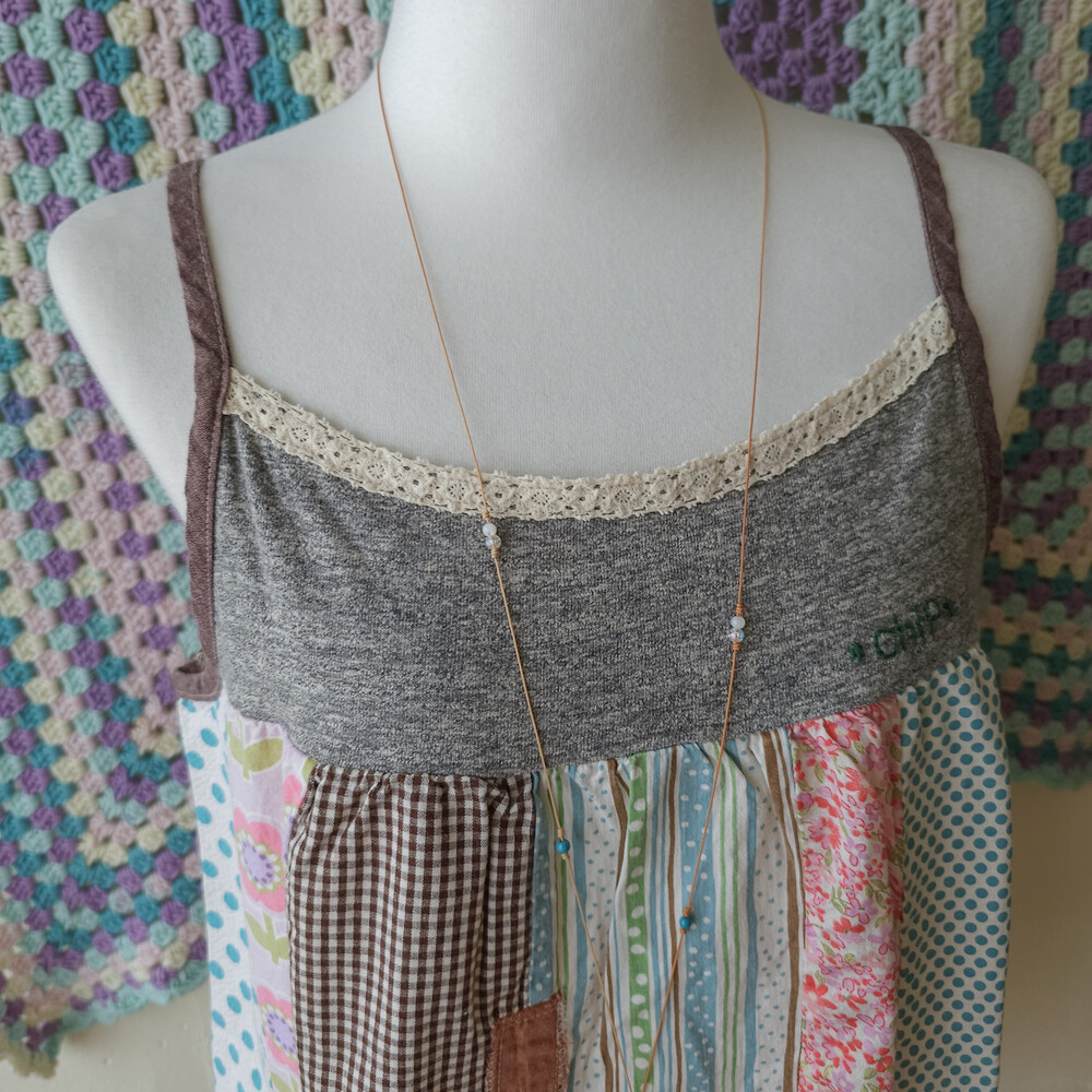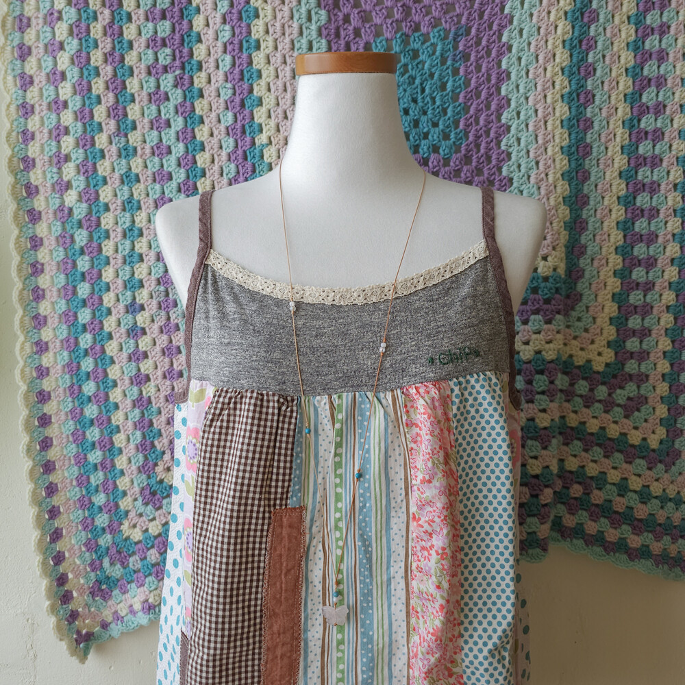 코튼 소재구요, 어깨 끈 길이 조절 불가하지만 적당해요:)