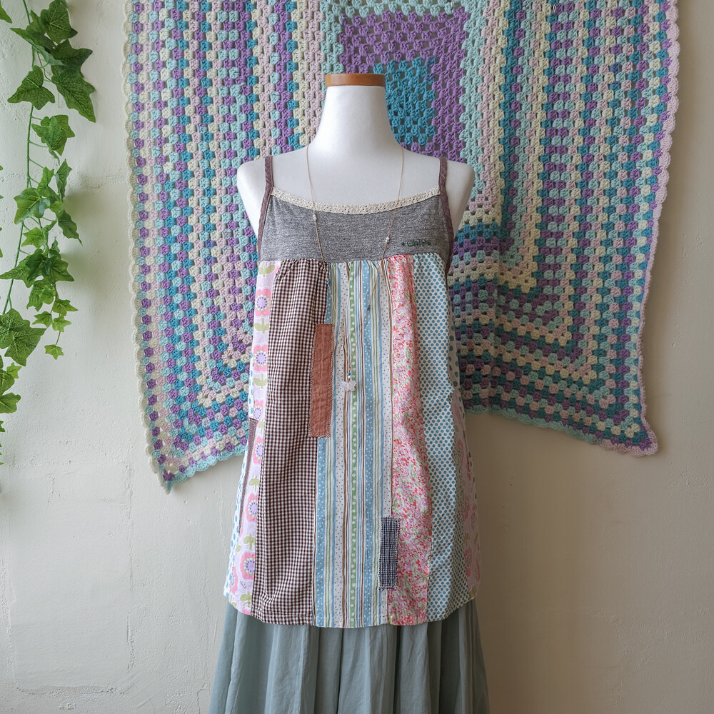 flower&dot vertical patch sleeveless bl