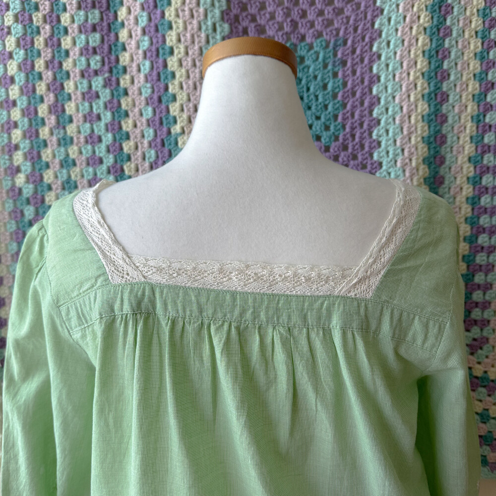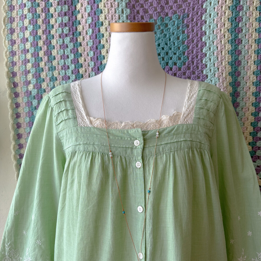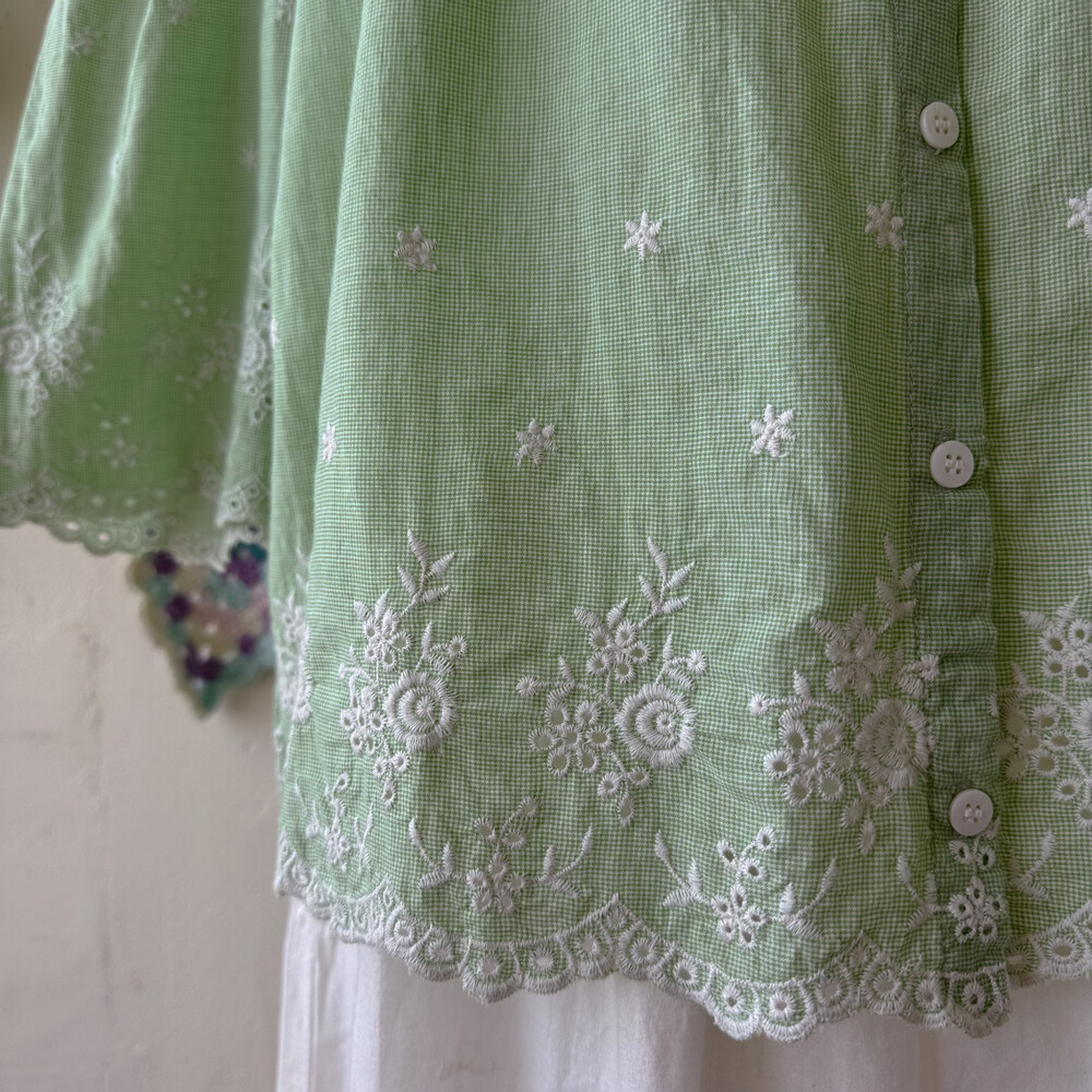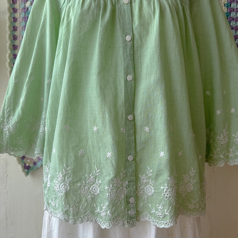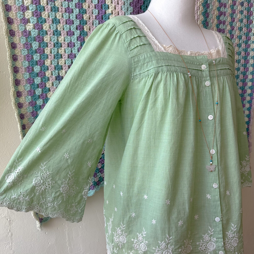 green check embroidery square neck bl
