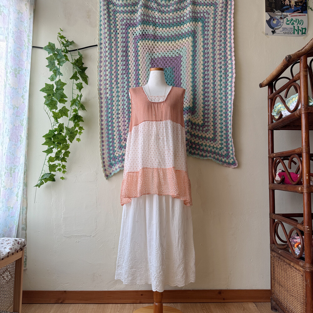 살구 색감의 잔꽃 패치 튜닉이에요