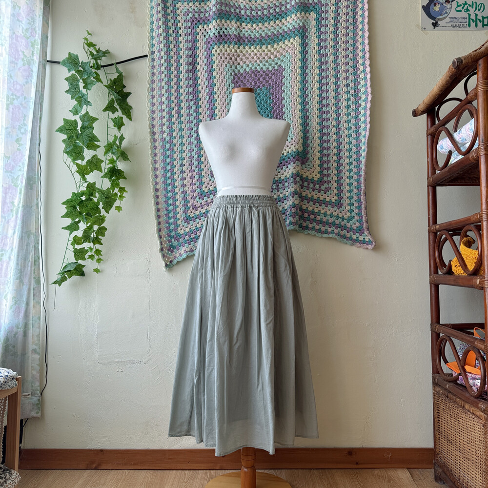 mint-khaki cotton plain sk