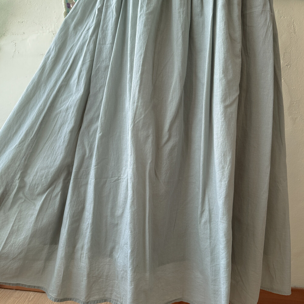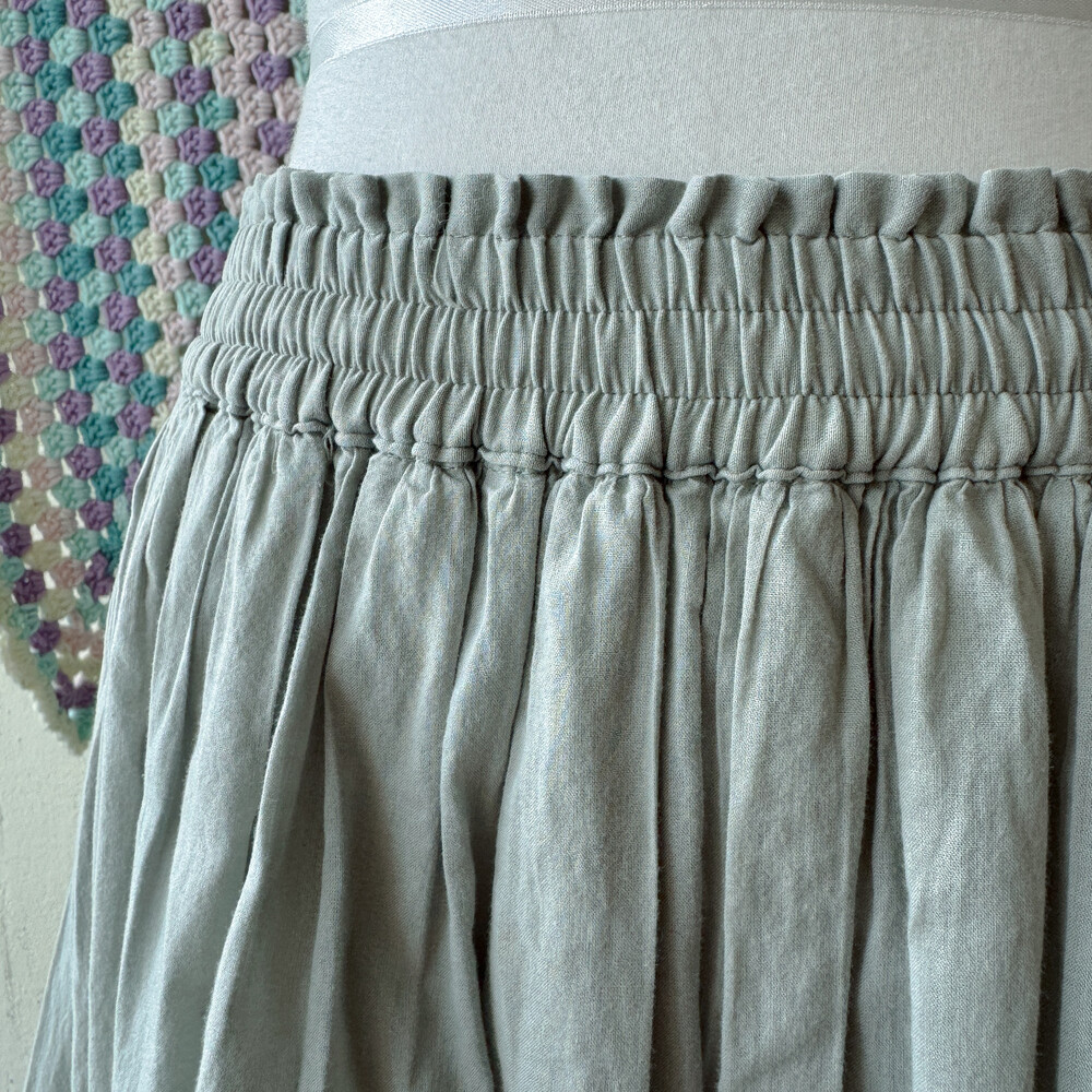 연카키에 민트그린이 살짝 섞인 색감의 코튼 스커트예요