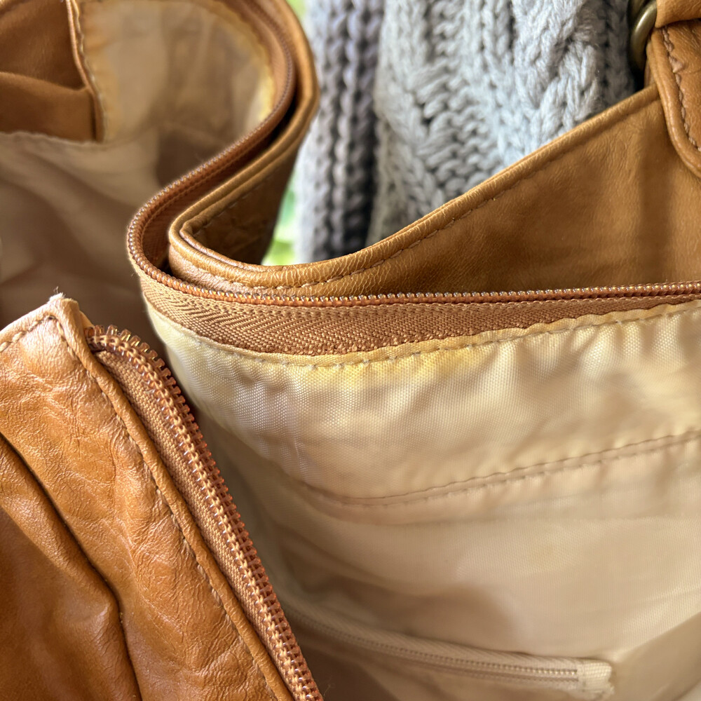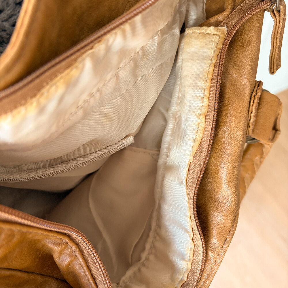 가방 안쪽 윗 가장자리 따라 때탄오염이 있지만