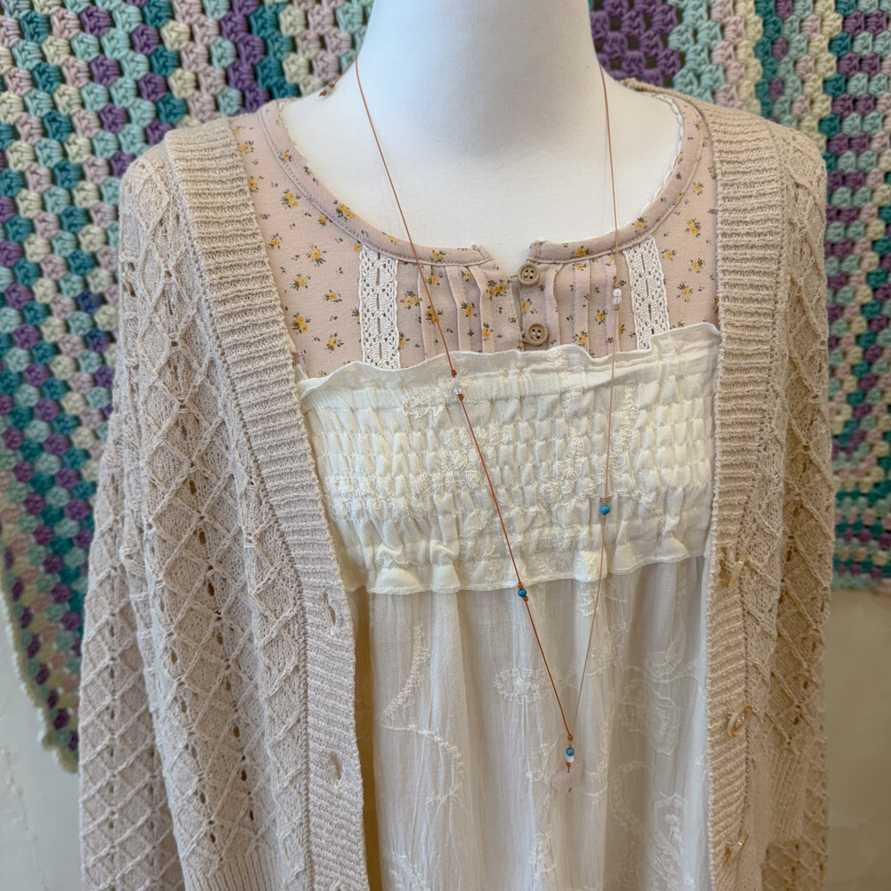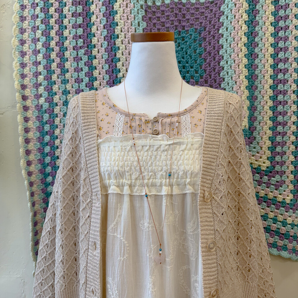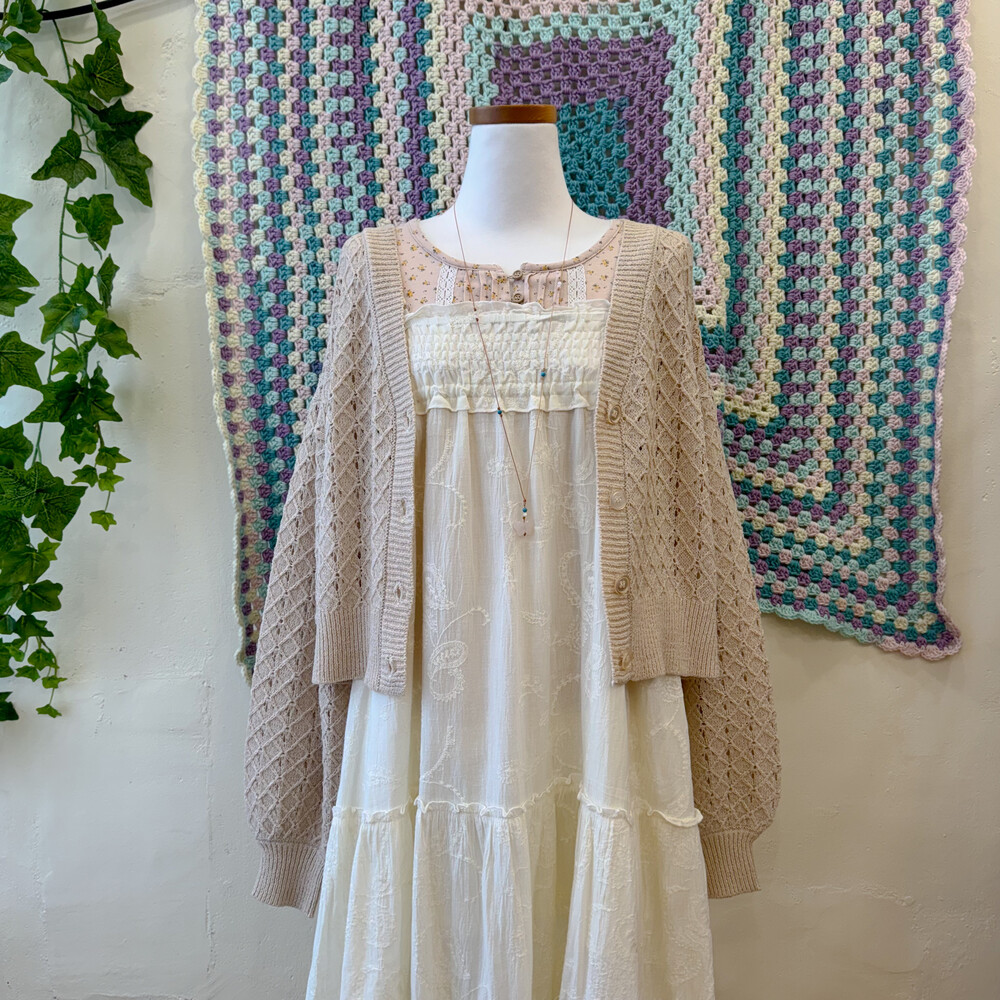 아이보리 색감의 코튼 끈원피스예요