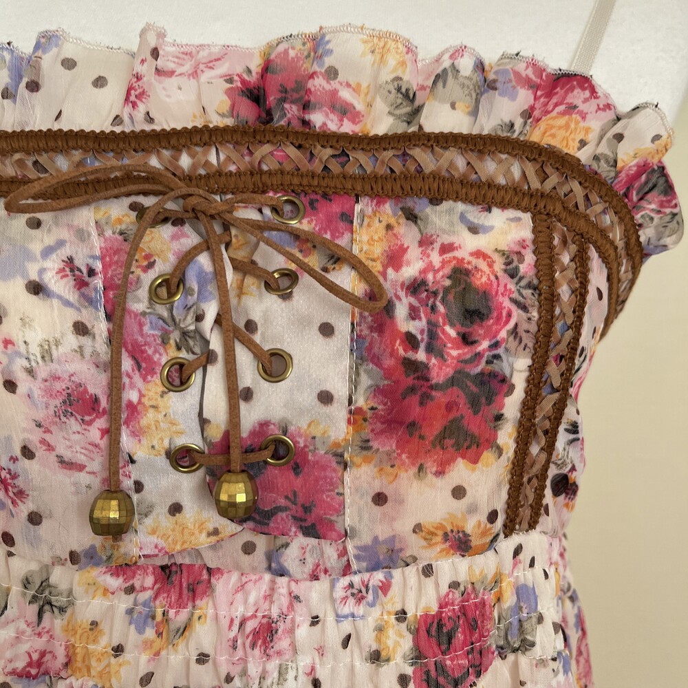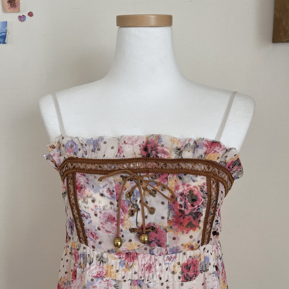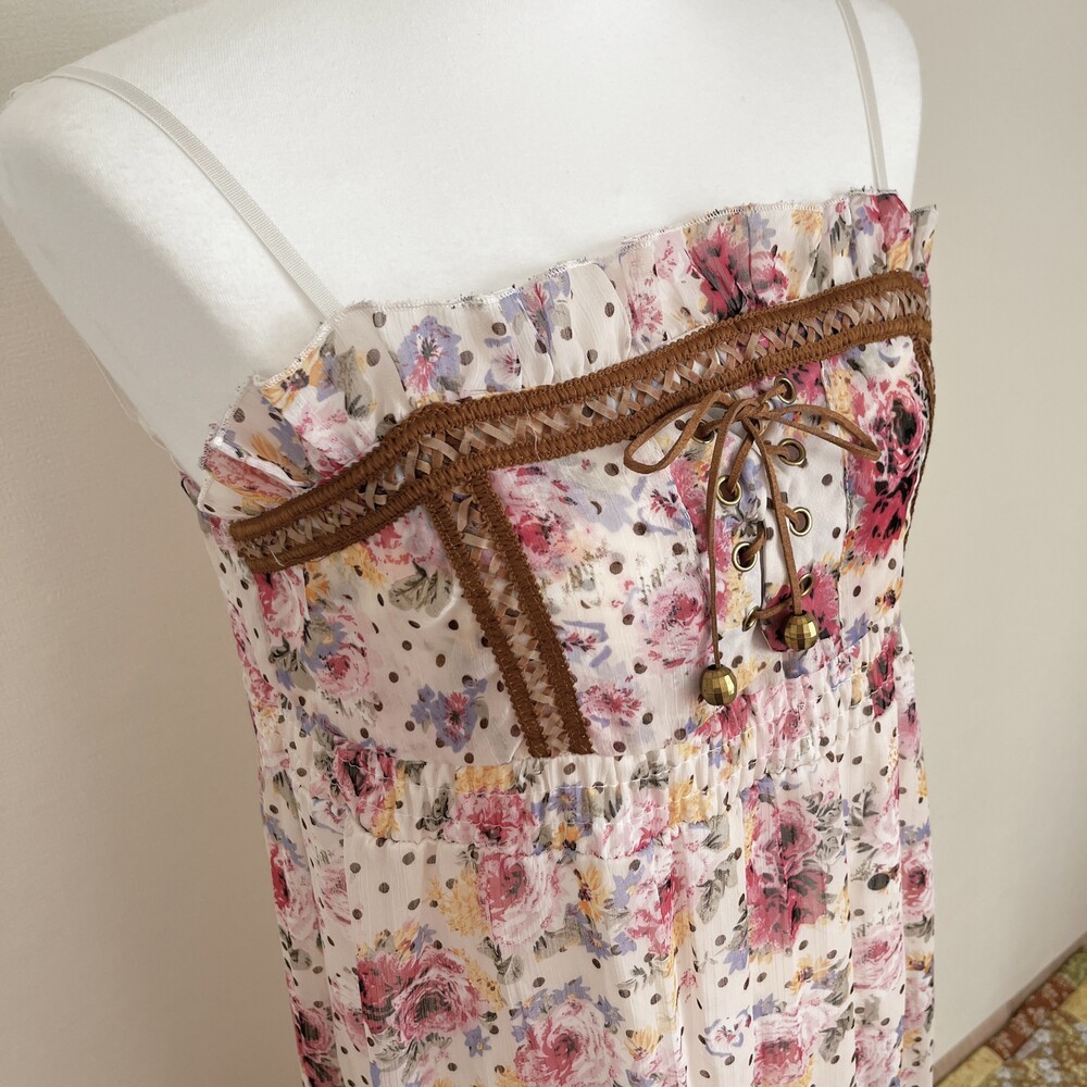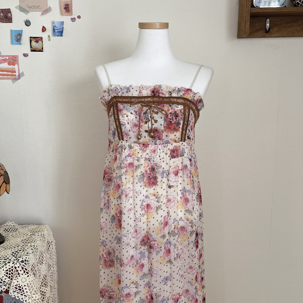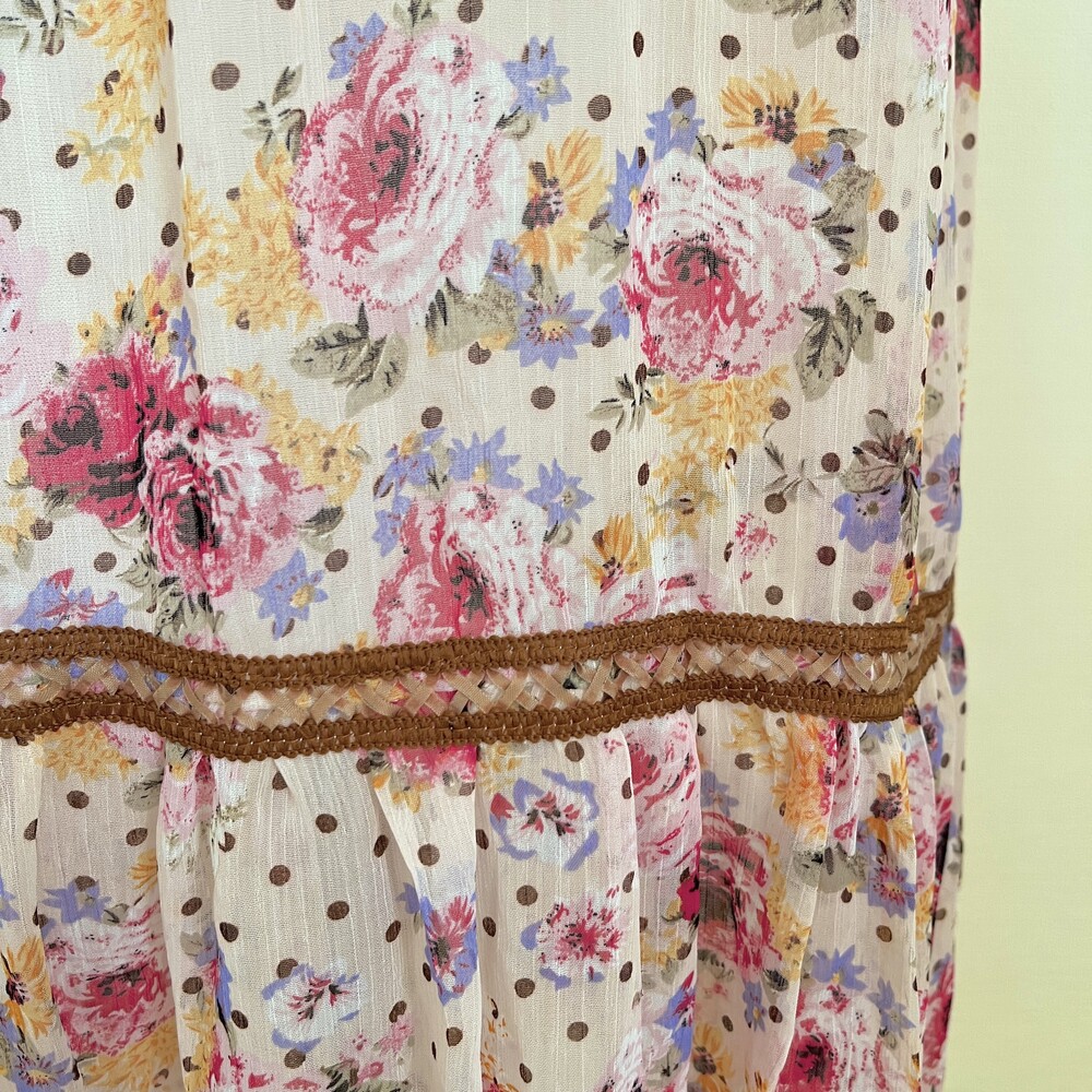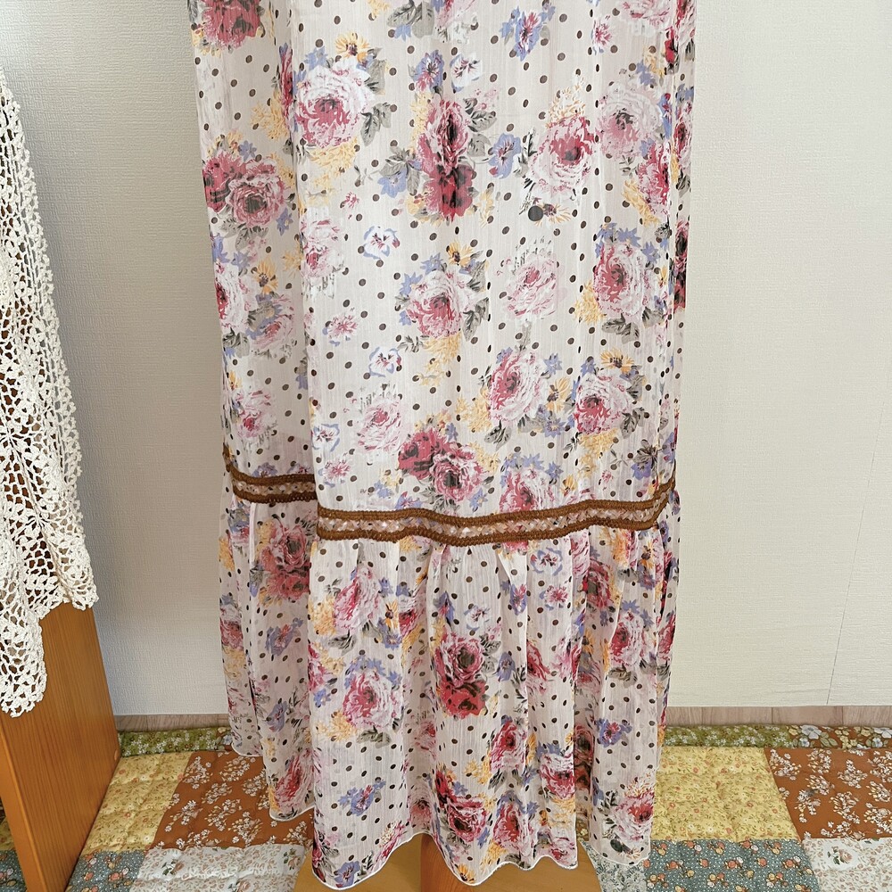 분홍 장미 패턴의 아일렛 쉬폰 원피스예요