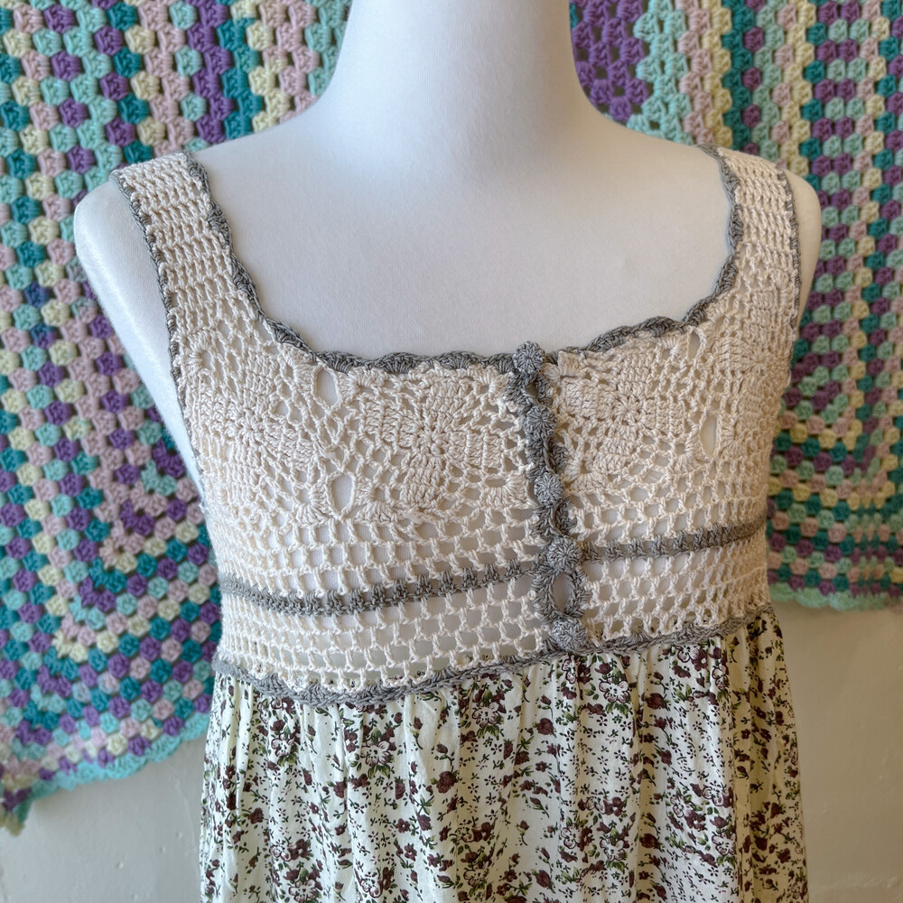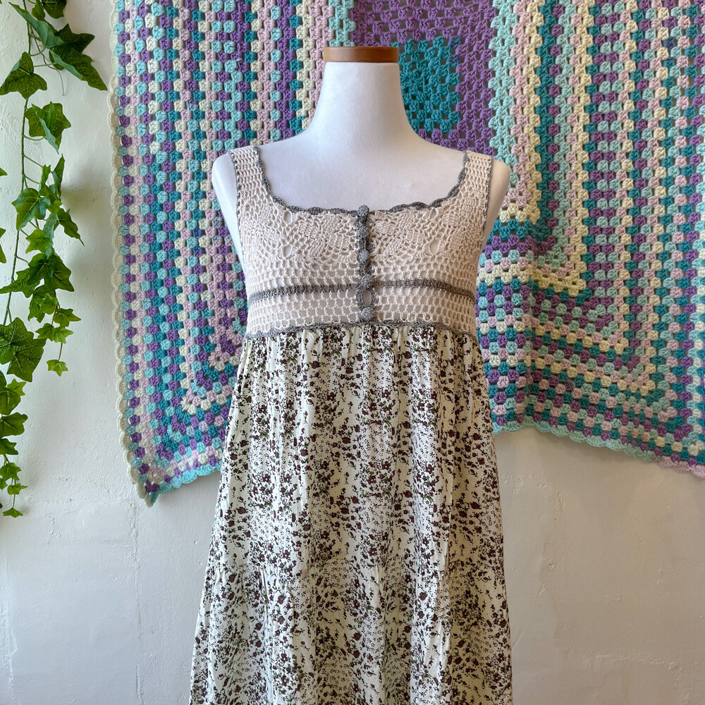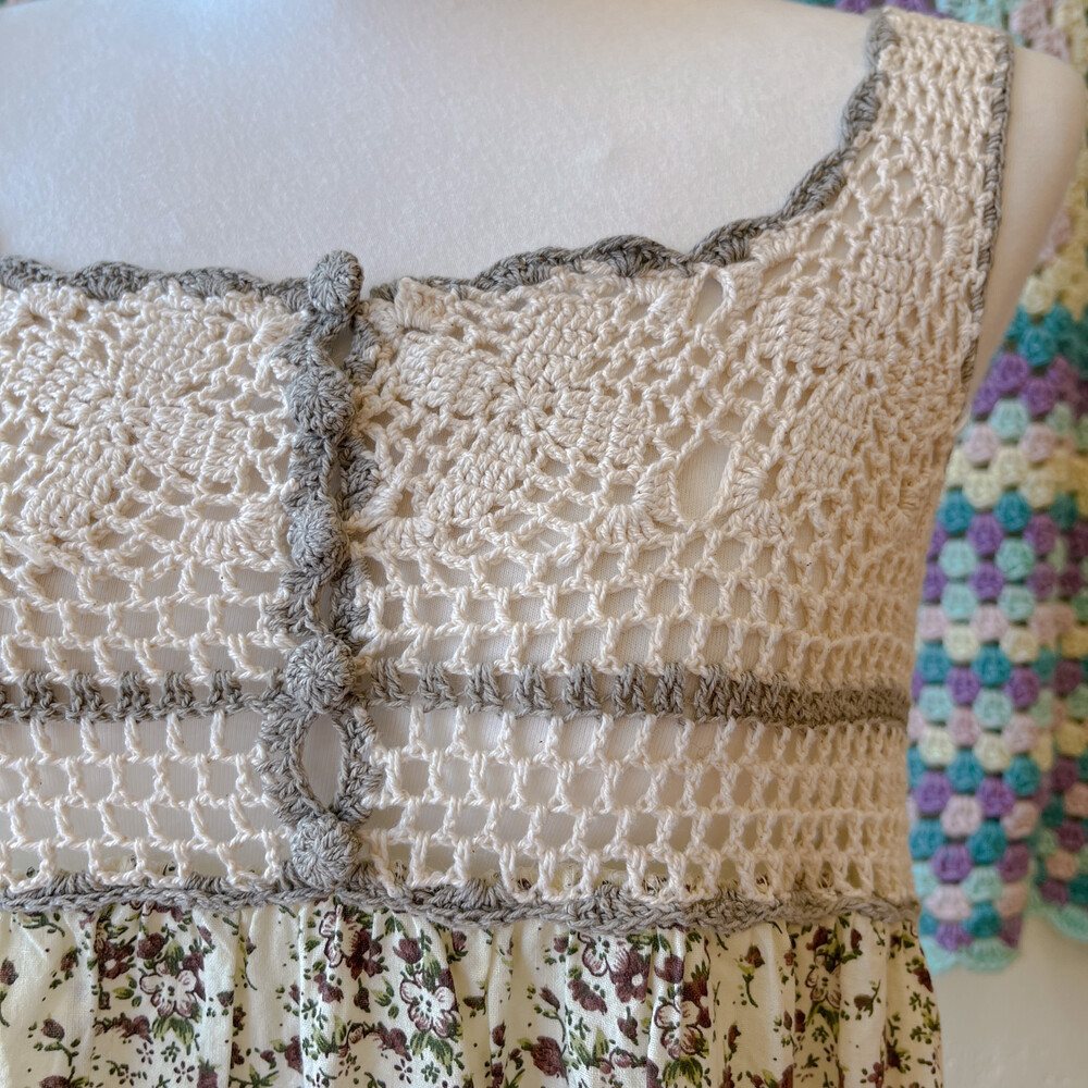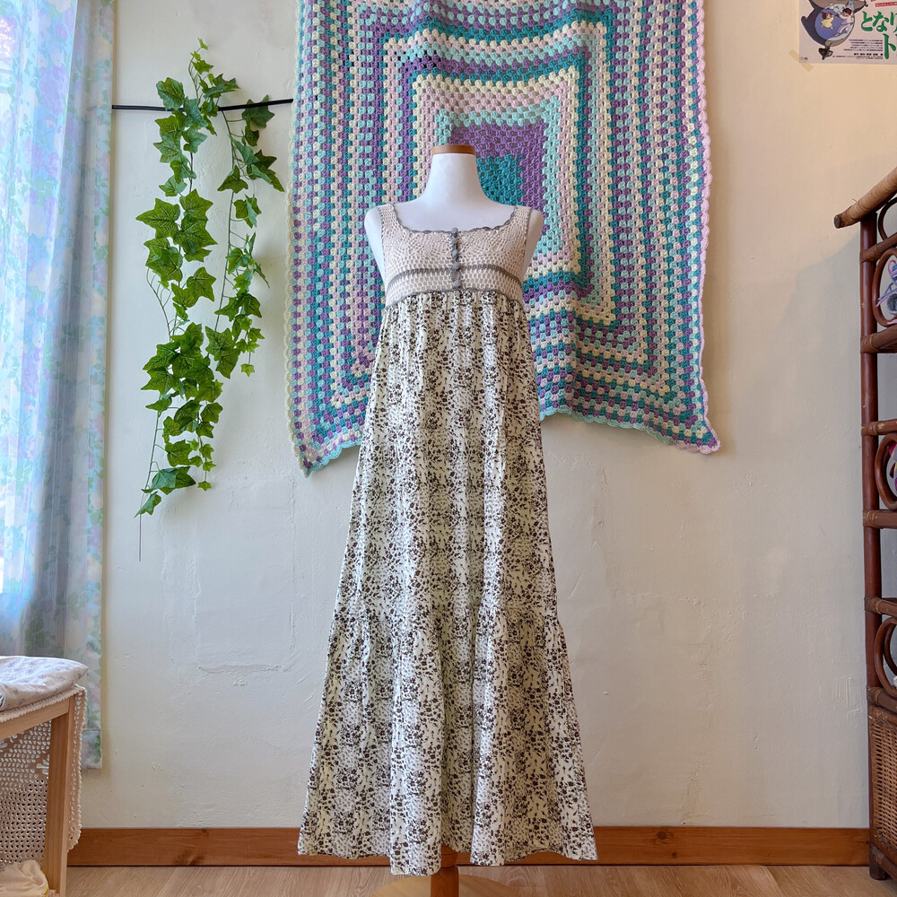 가슴 크로셰 디자인의 코튼 롱원피스예요