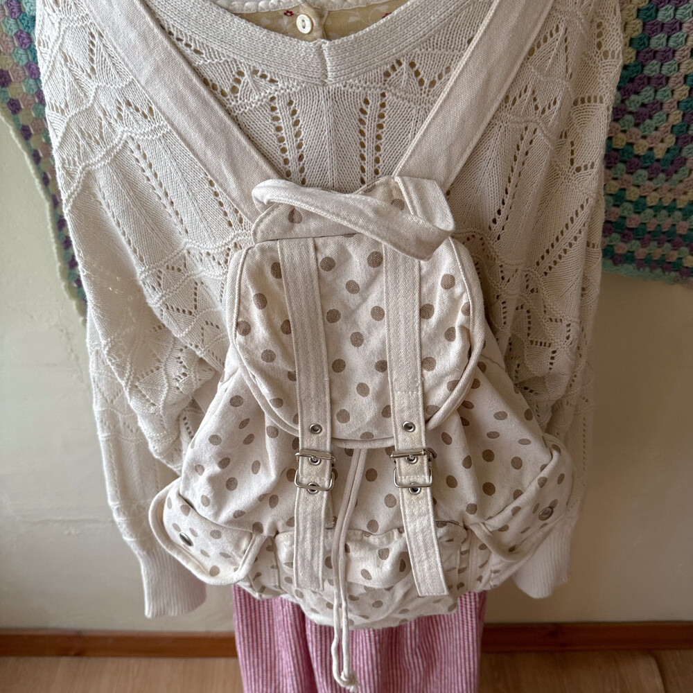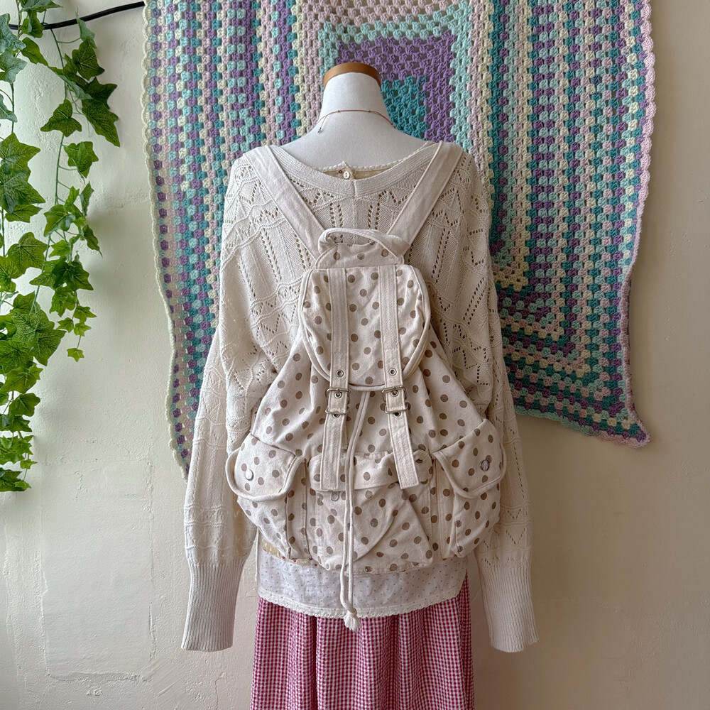 cozy ivory base dot pattern backpack