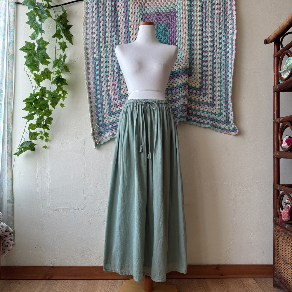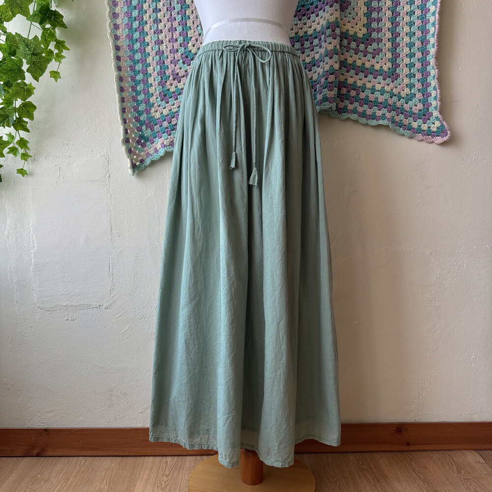 카키 색감의 코튼 롱스커트예요