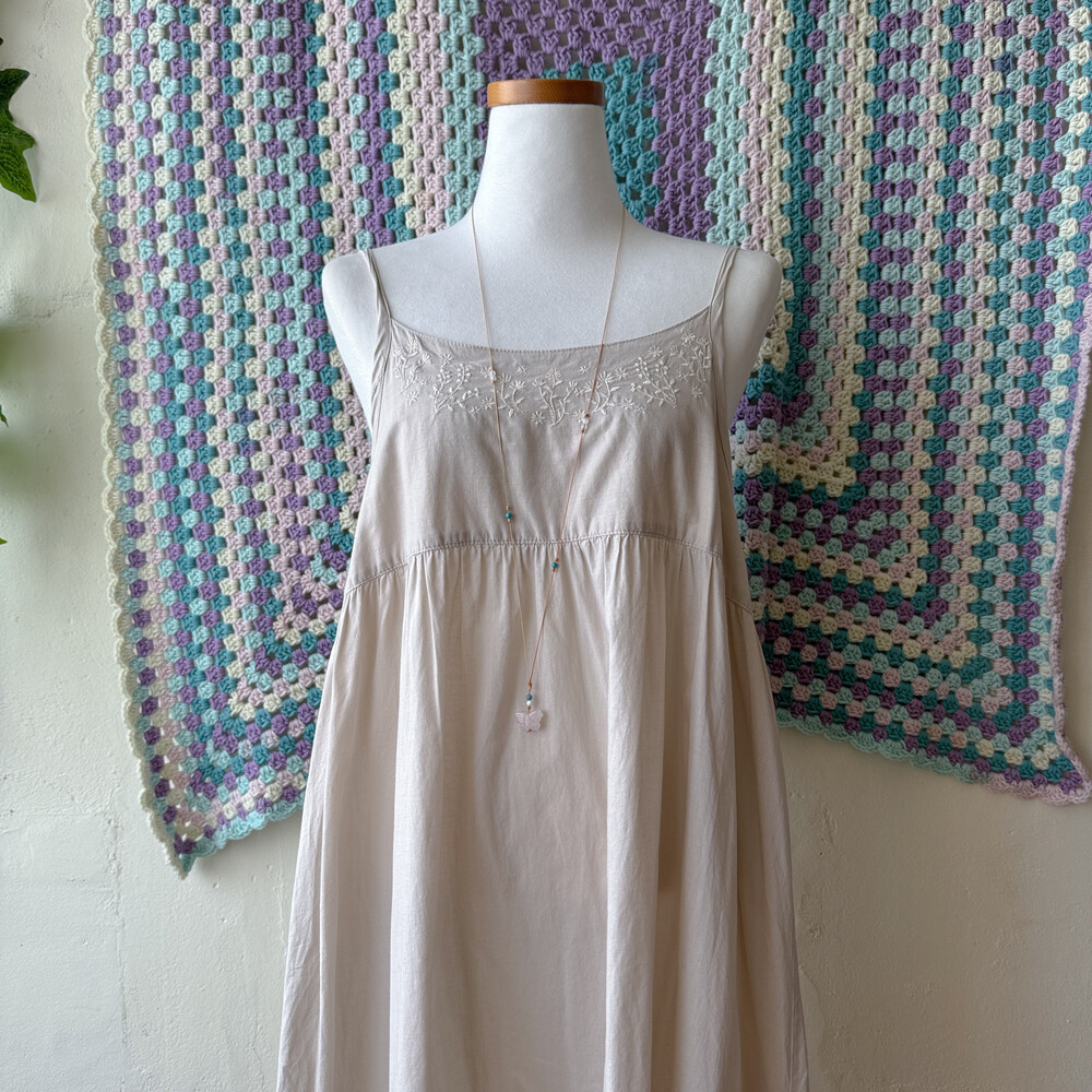 sm2의 베이지 자수 끈원피스예요