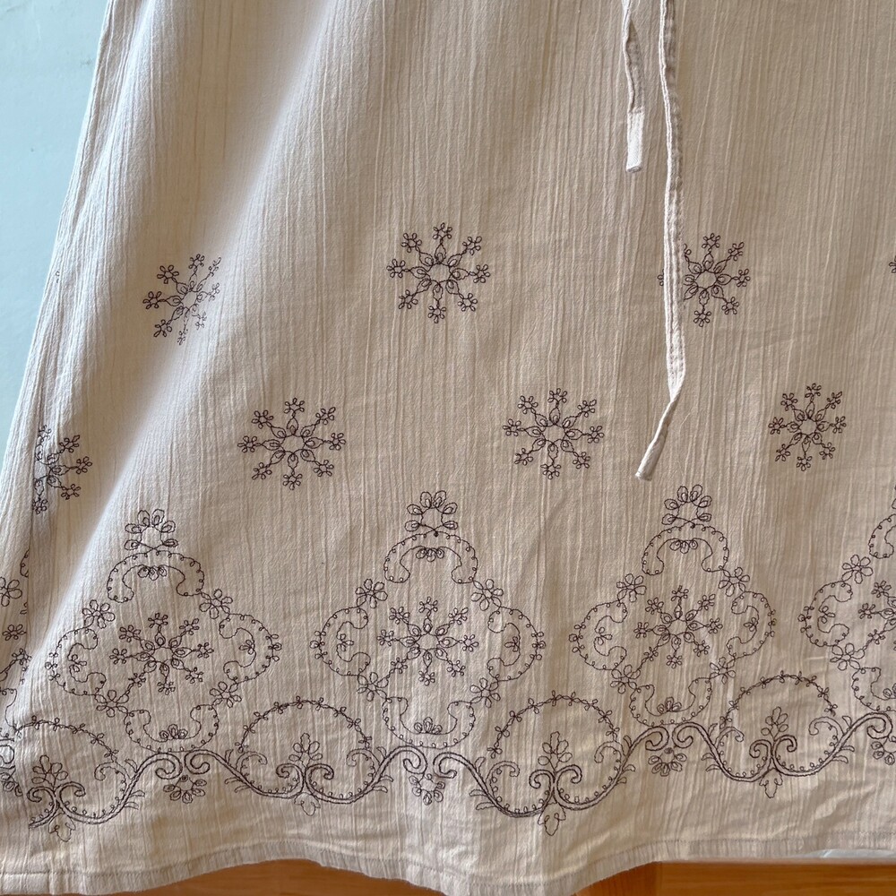 밑단의 자수 포인트와 은은한 베이지 색감이 정말 예뻐요