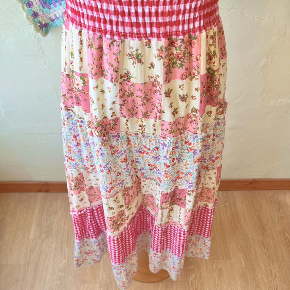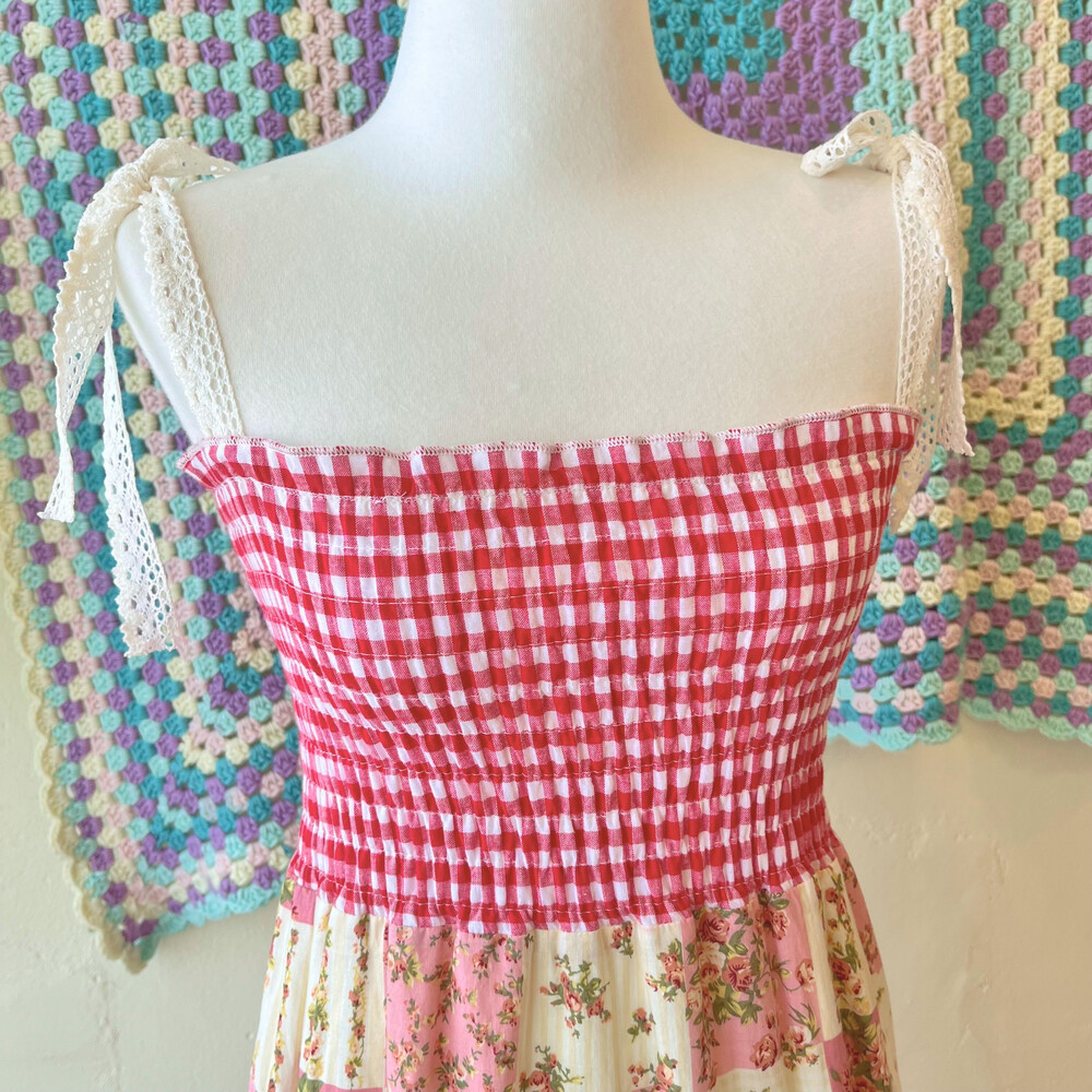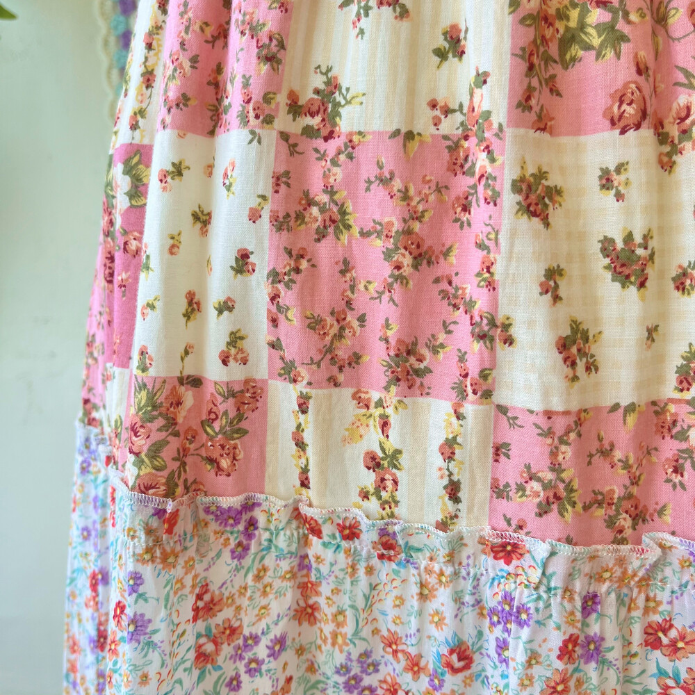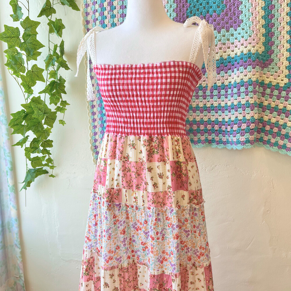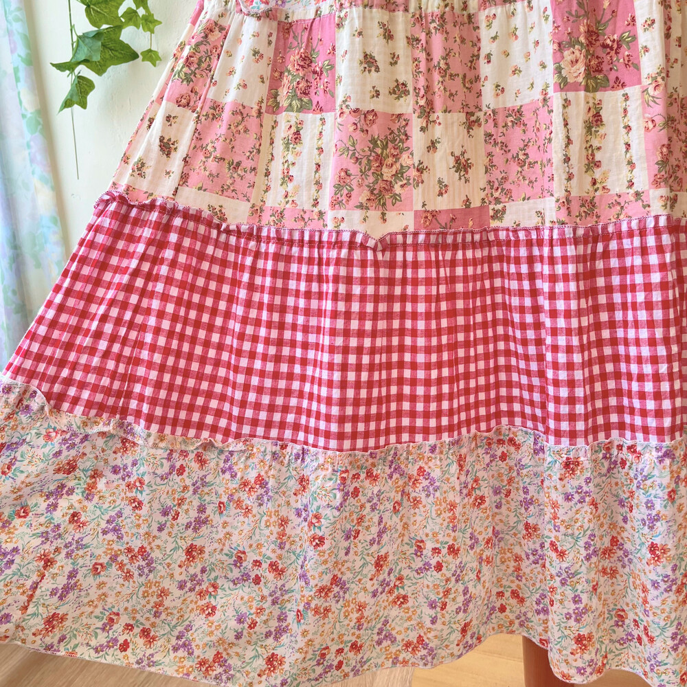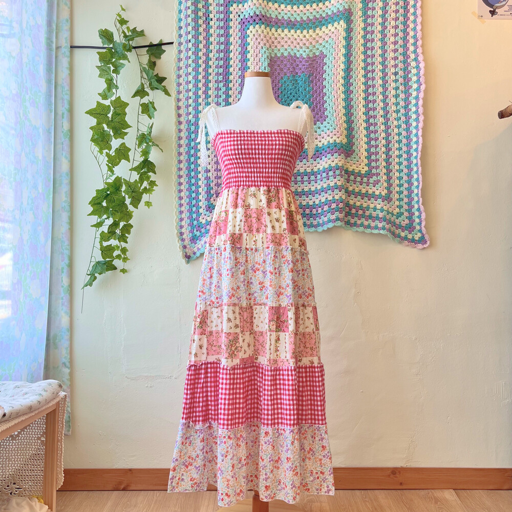 레드 체크, 플라워 패치 코튼 끈원피스예요