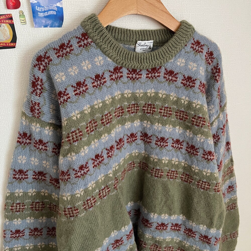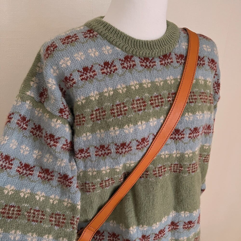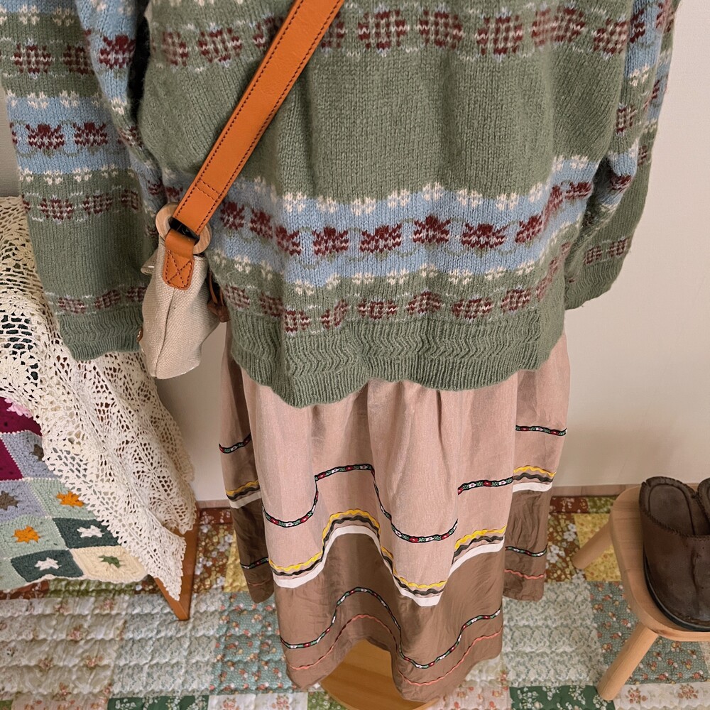 khaki&sky blue pattern flower knit