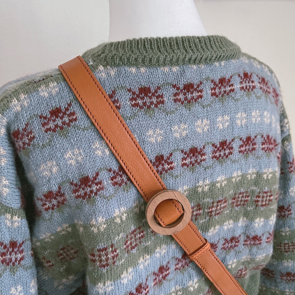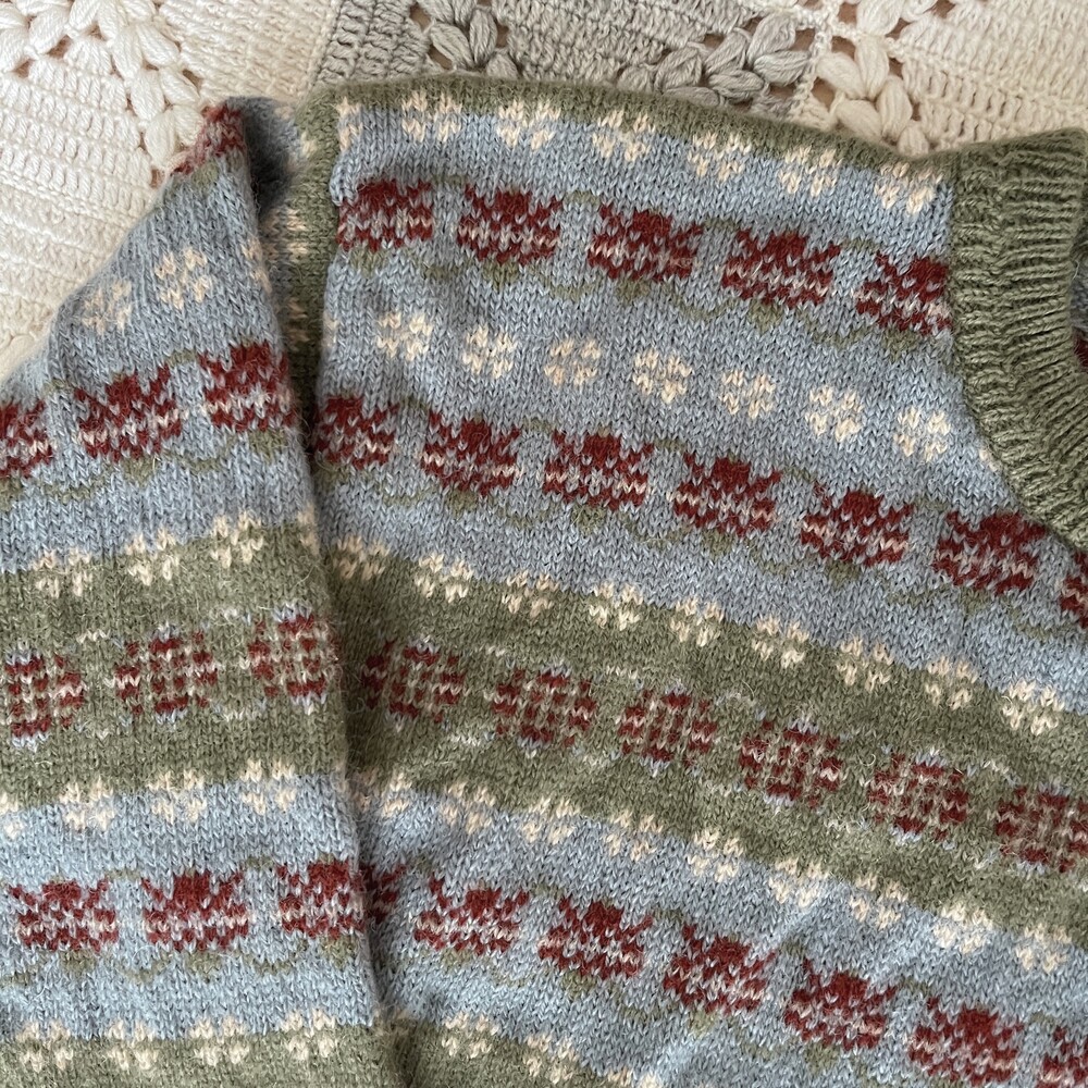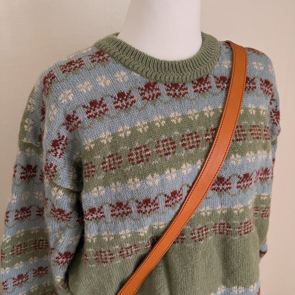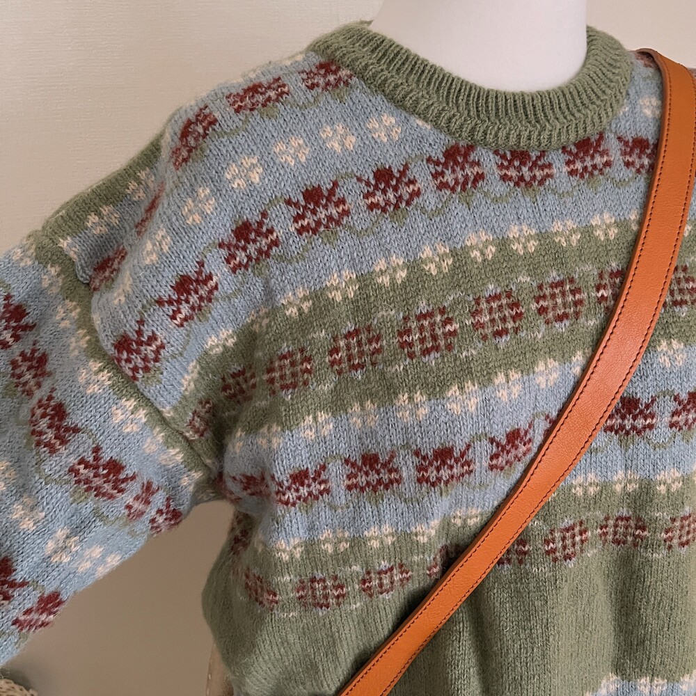 khaki&sky blue pattern flower knit