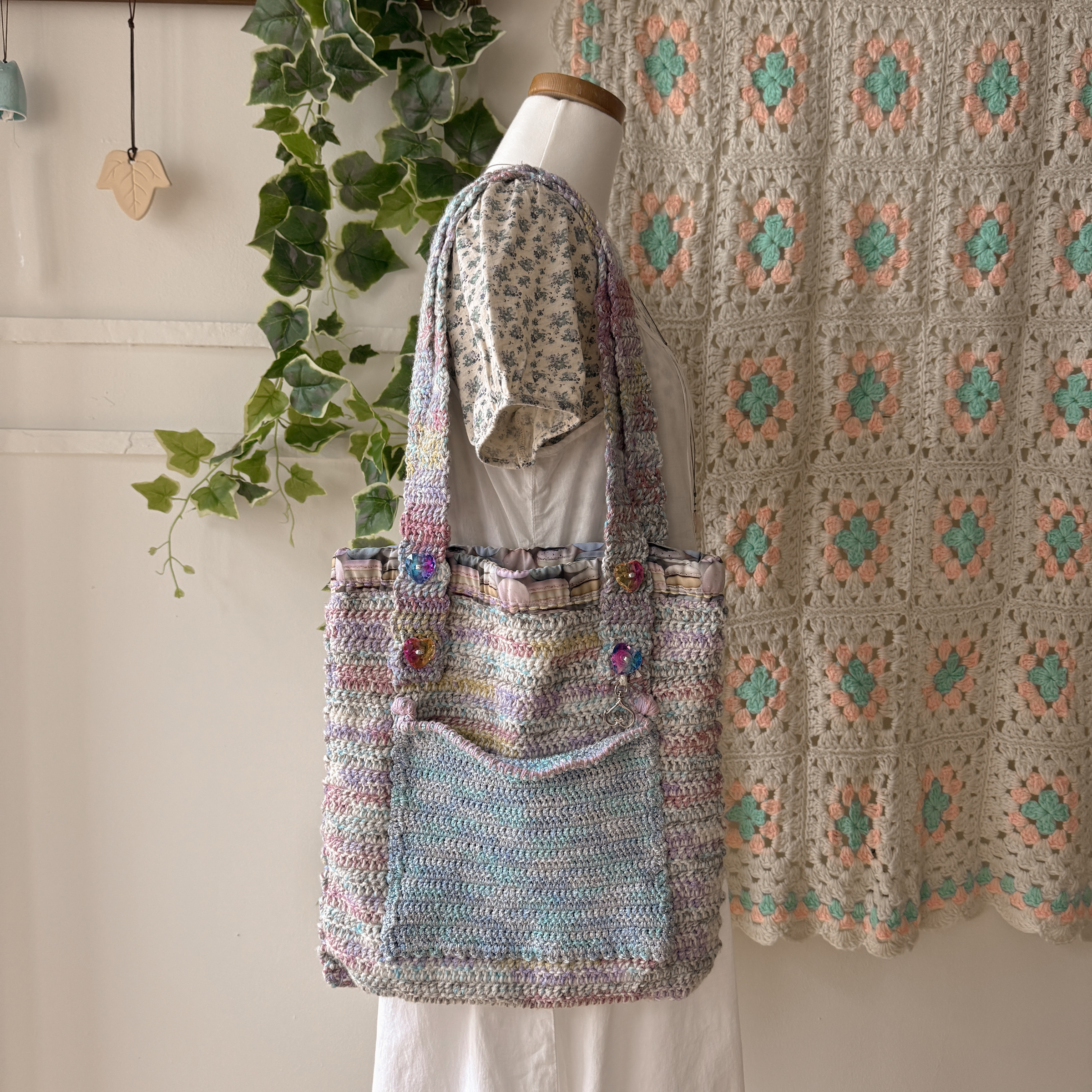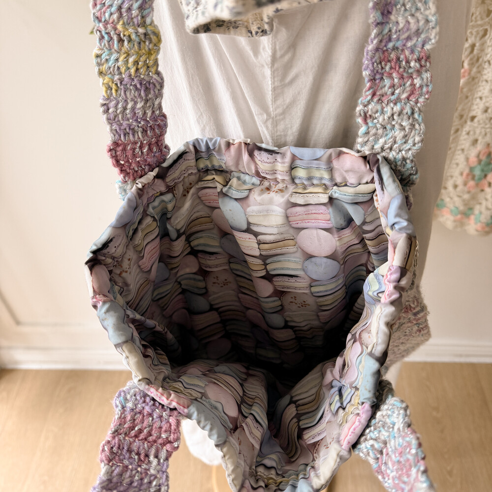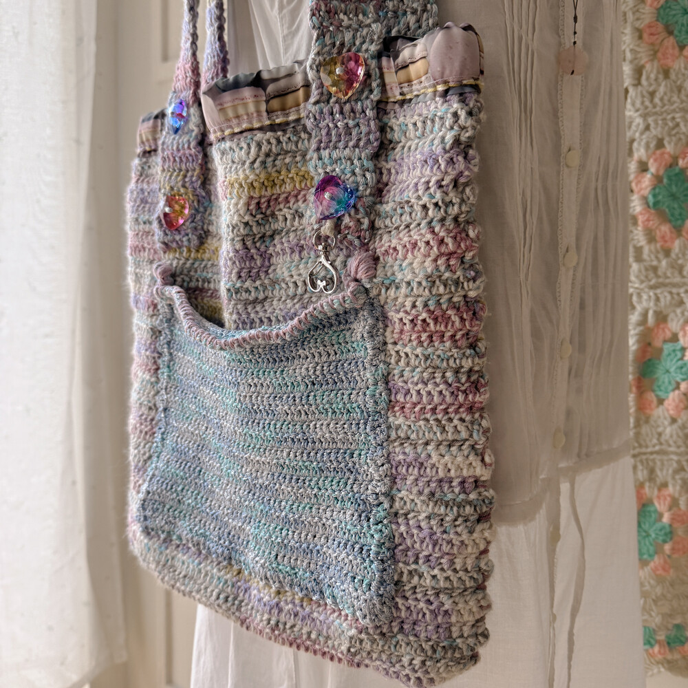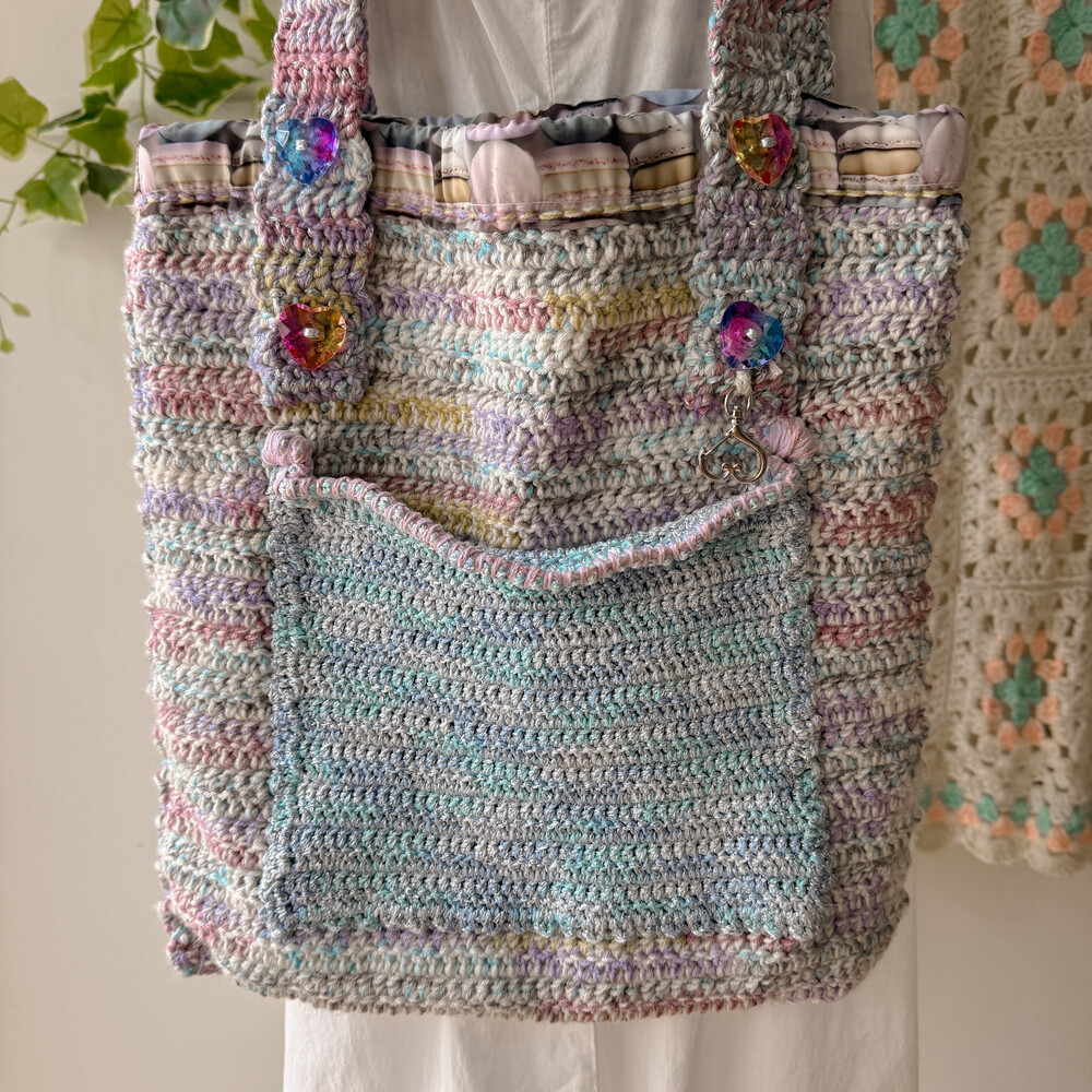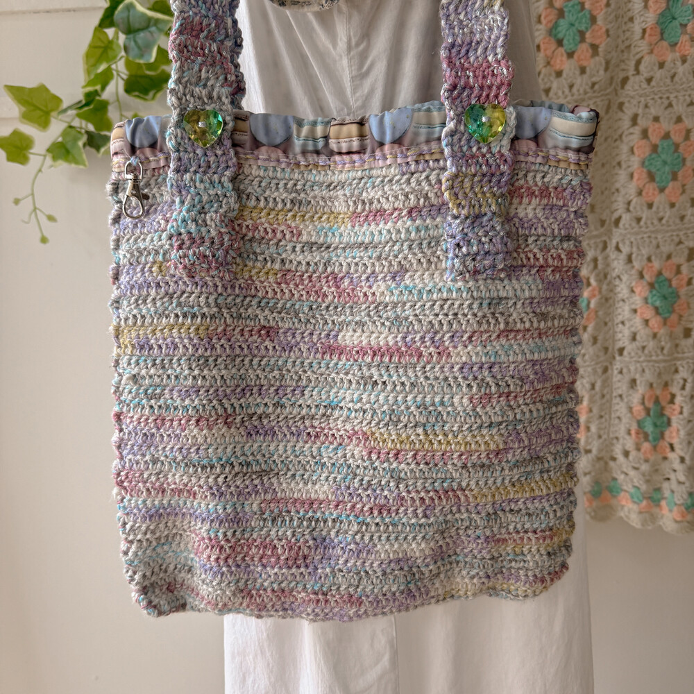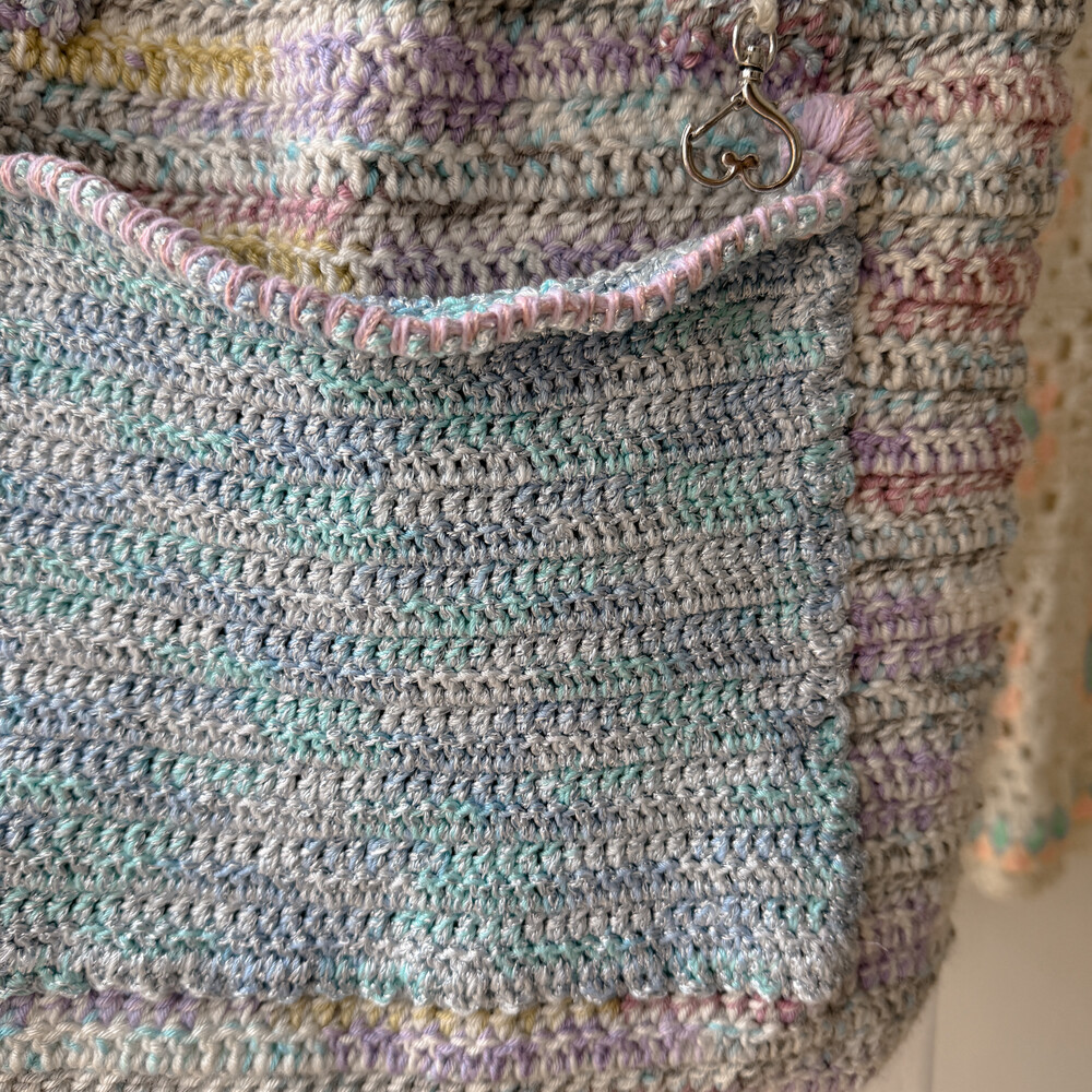 파스텔 믹스 색감의 크로셰 숄더백이에요