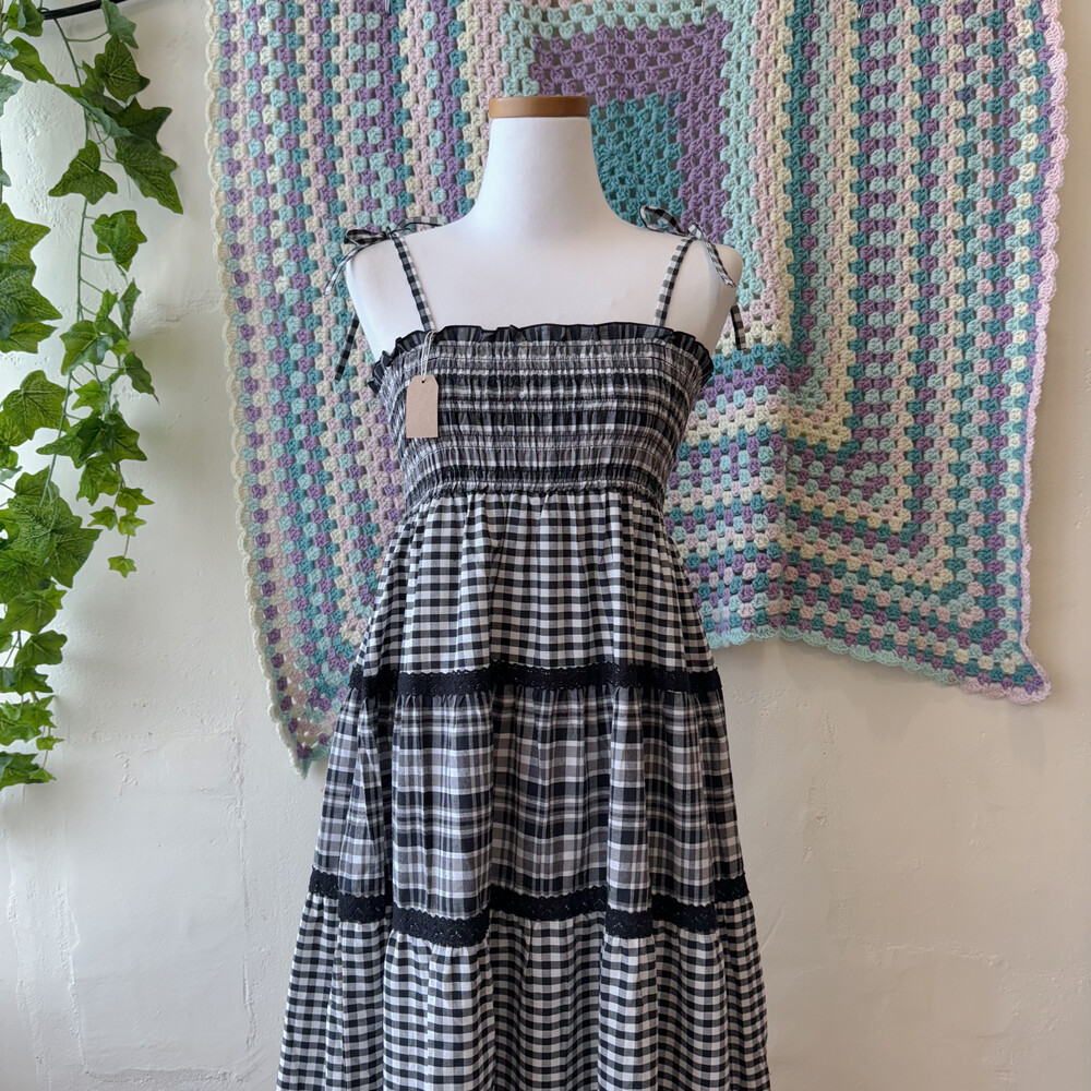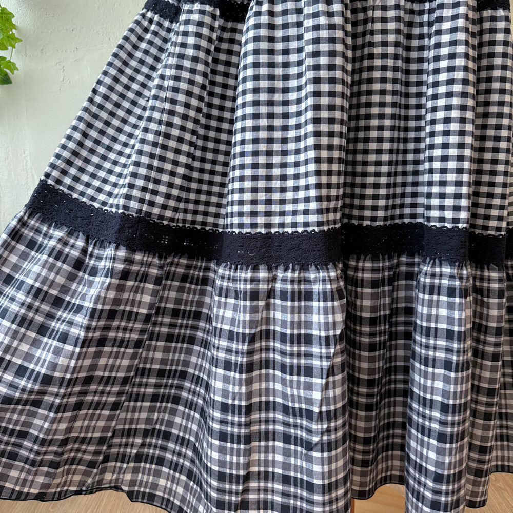 black check lace point tiered ops