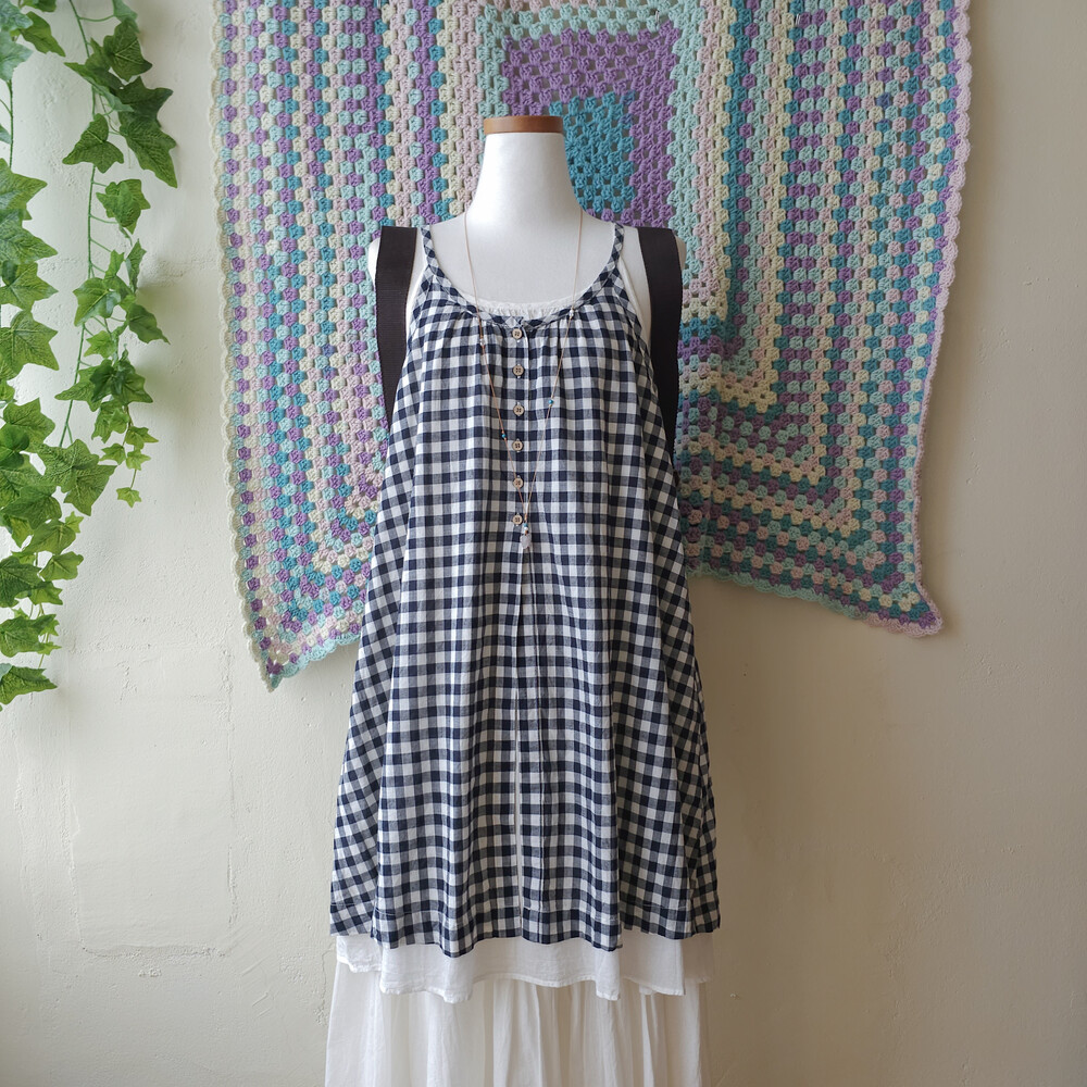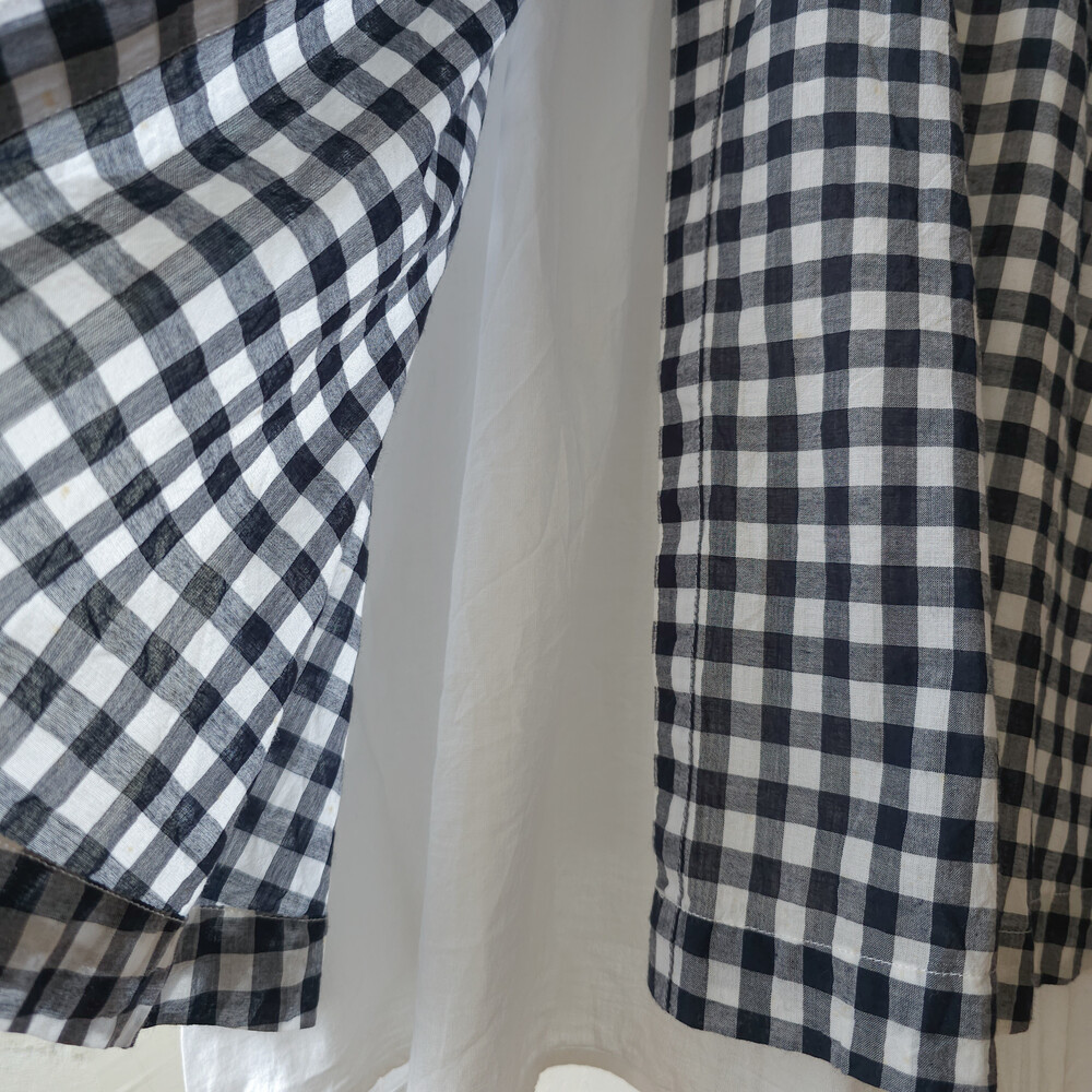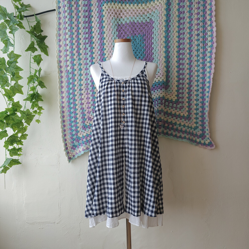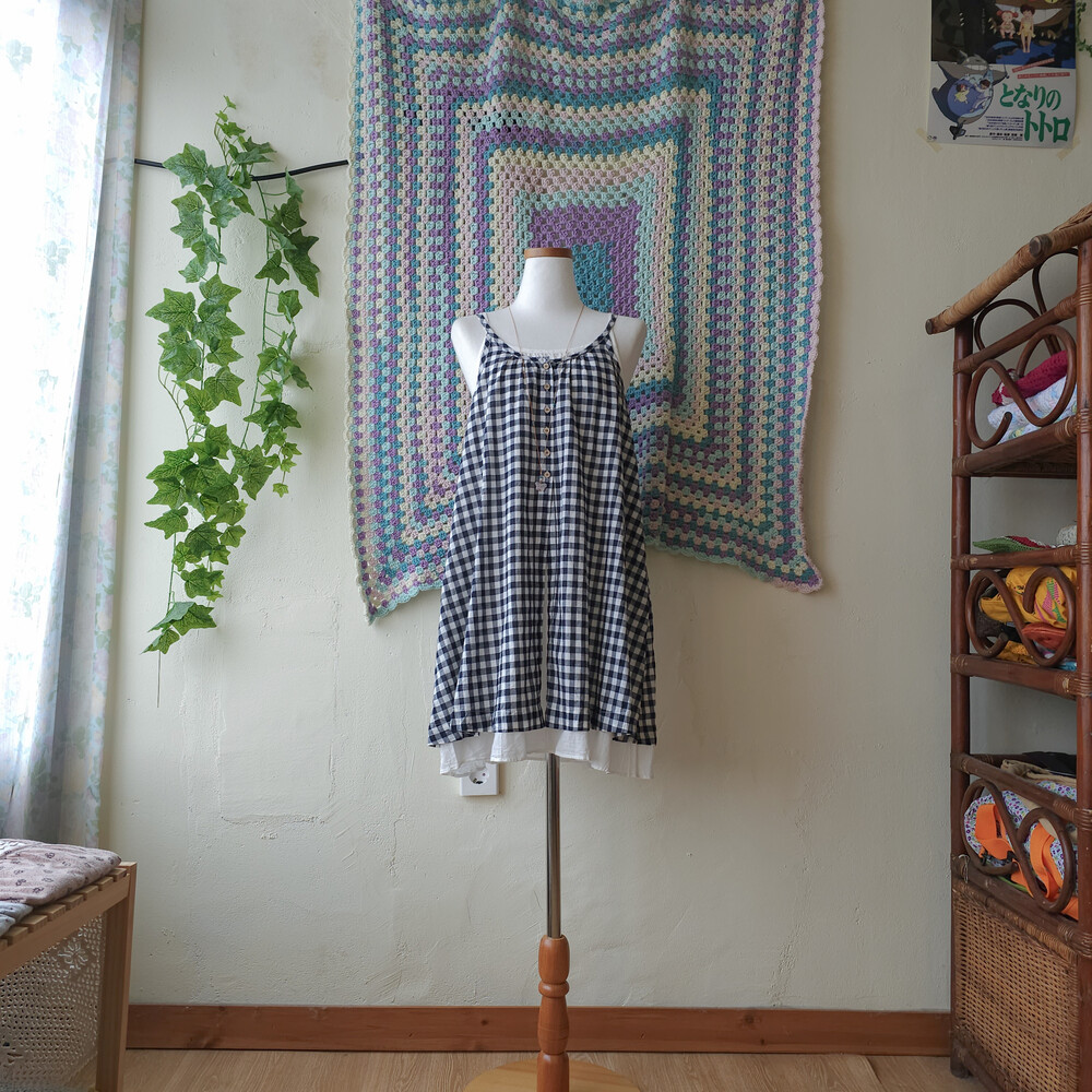 블랙 체크 패턴의 레이어드 튜닉 원피스 세트예요