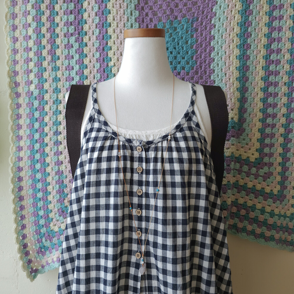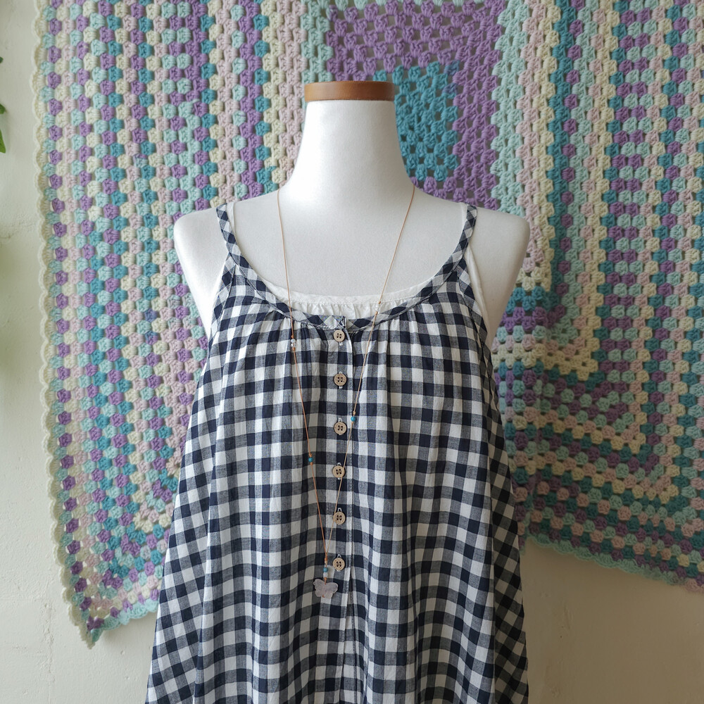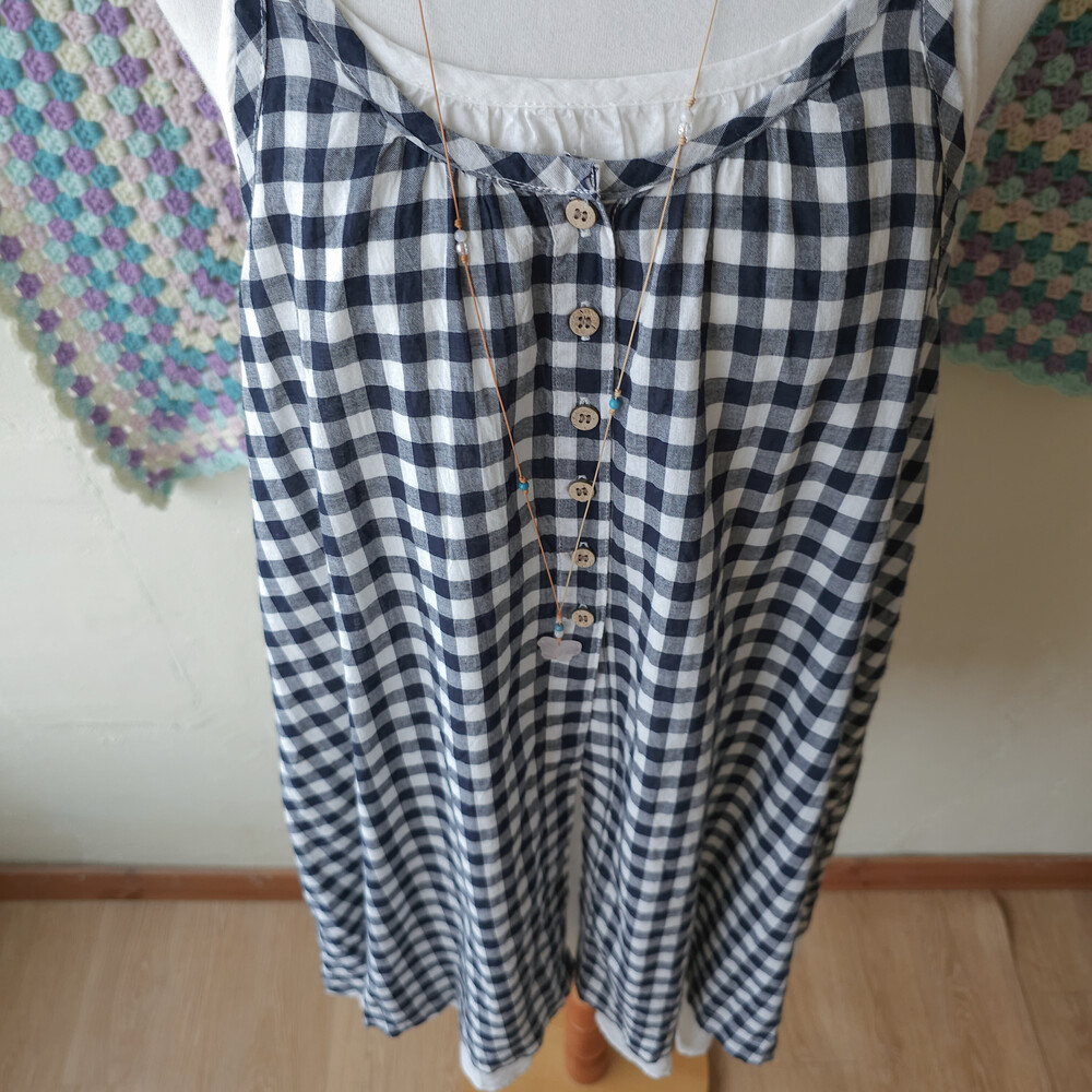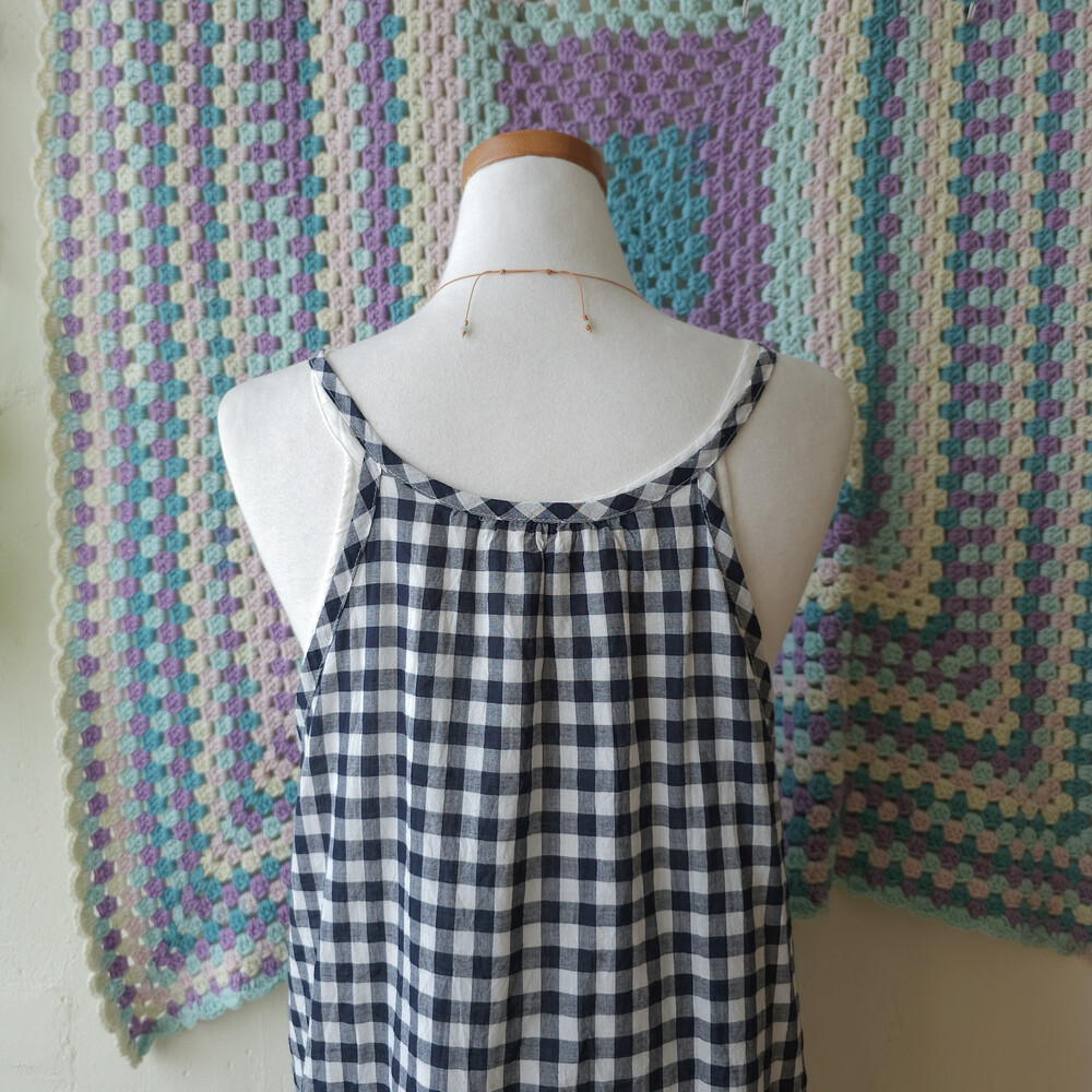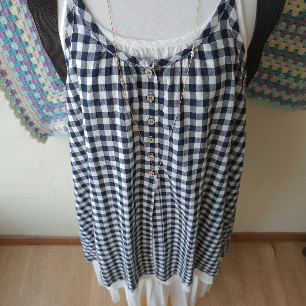 블랙 체크 패턴의 레이어드 튜닉 원피스 세트예요