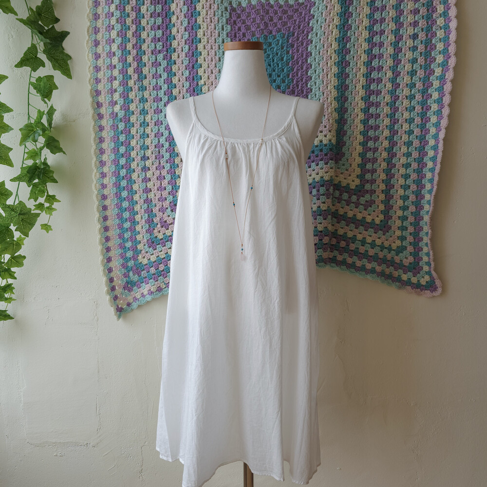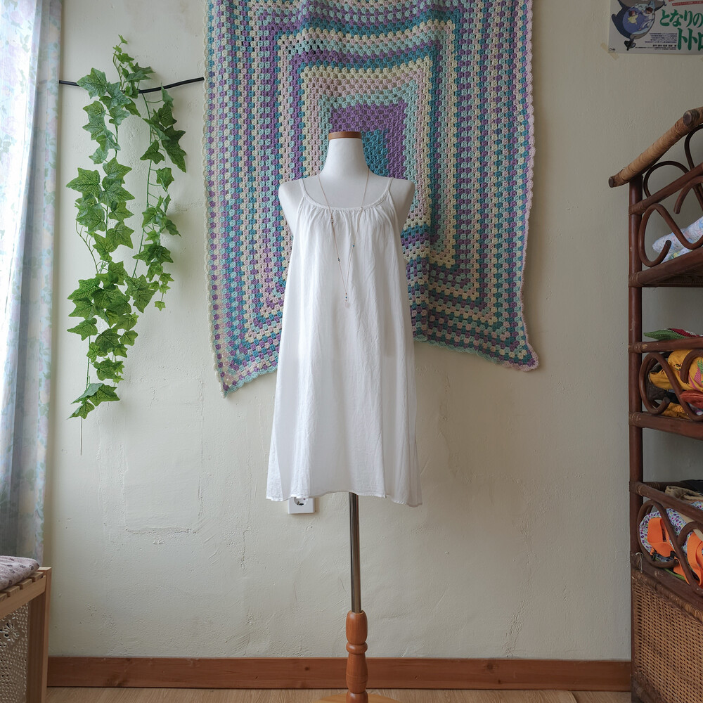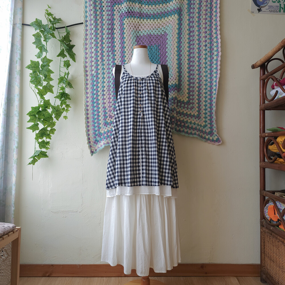 두 벌 모두 코튼 소재구요, 어깨 끈 길이 조절 불가해요:)