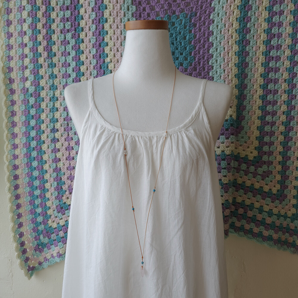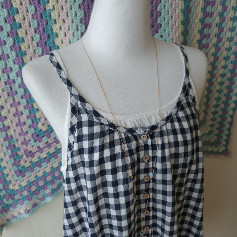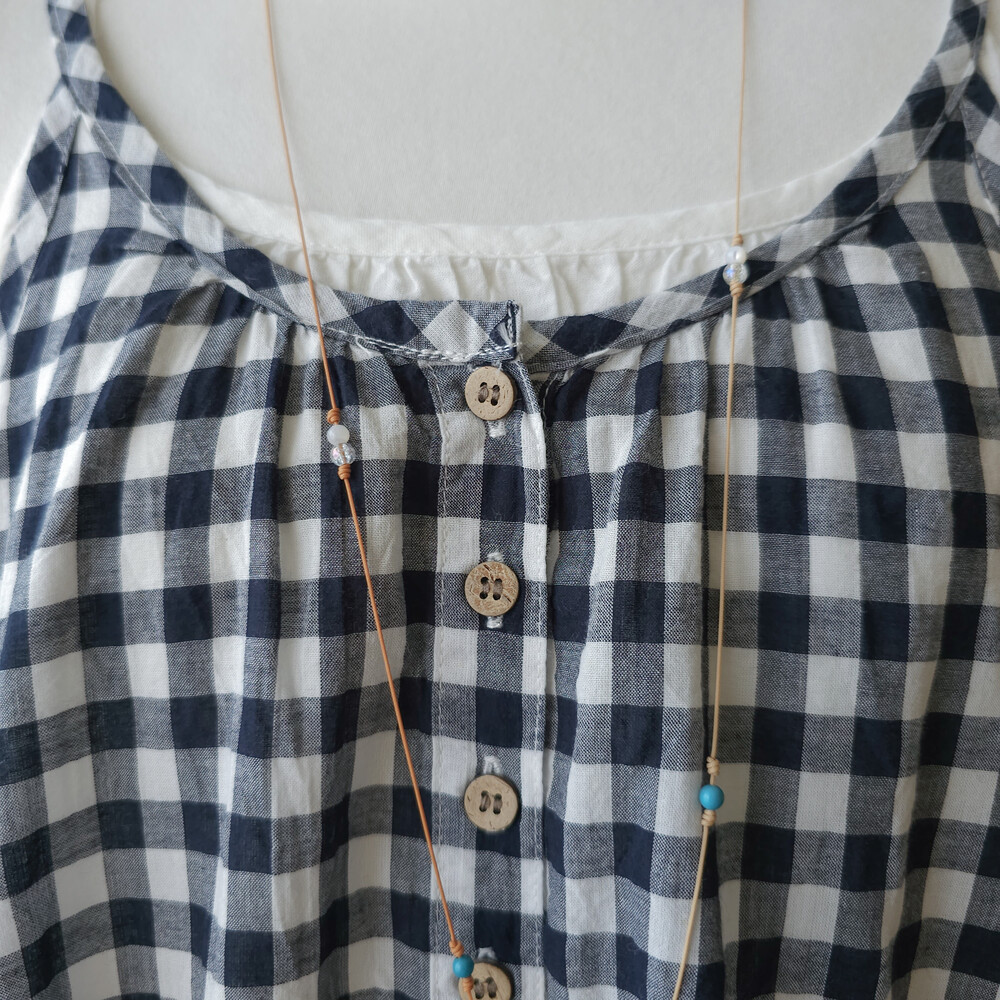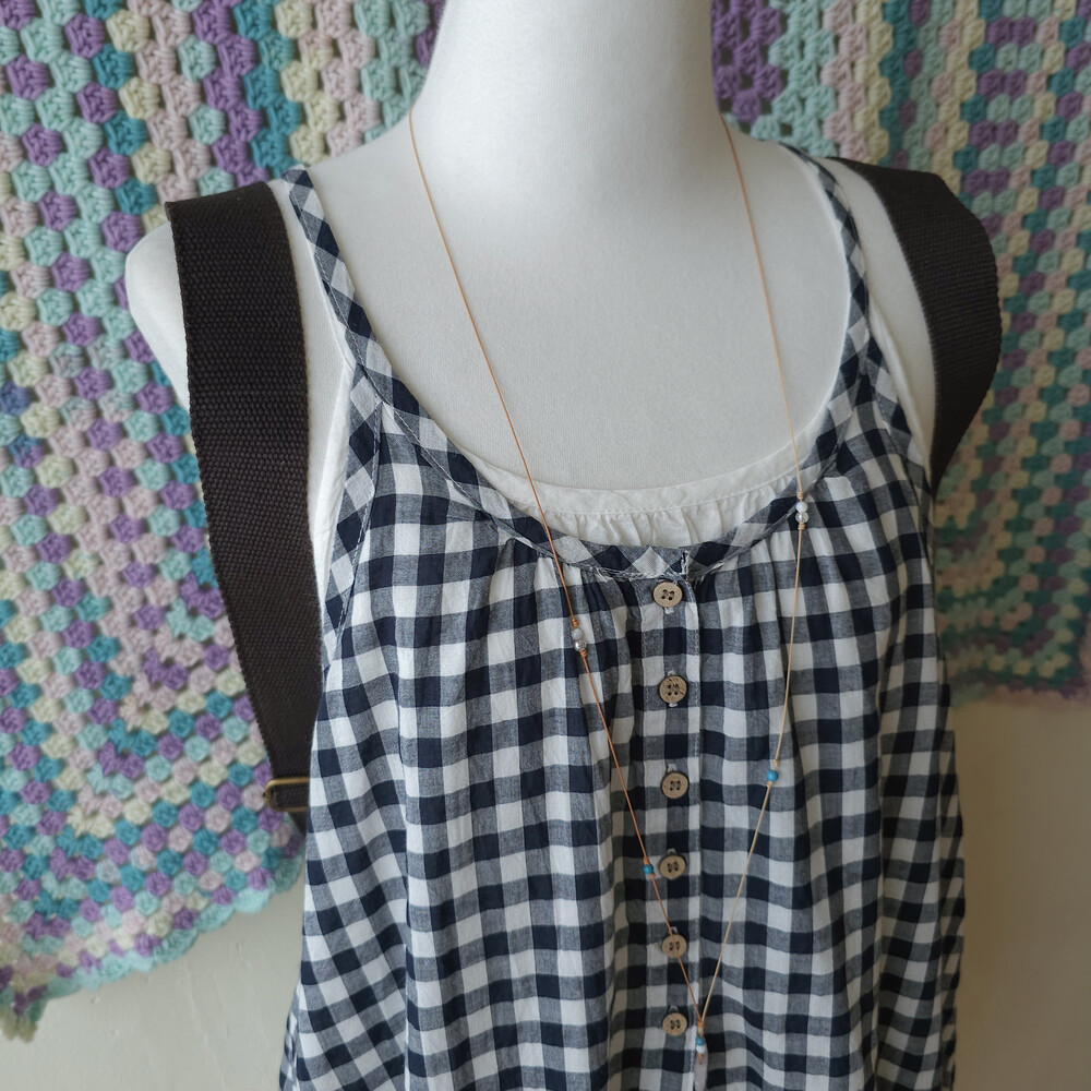 두 벌 모두 코튼 소재구요, 어깨 끈 길이 조절 불가해요:)