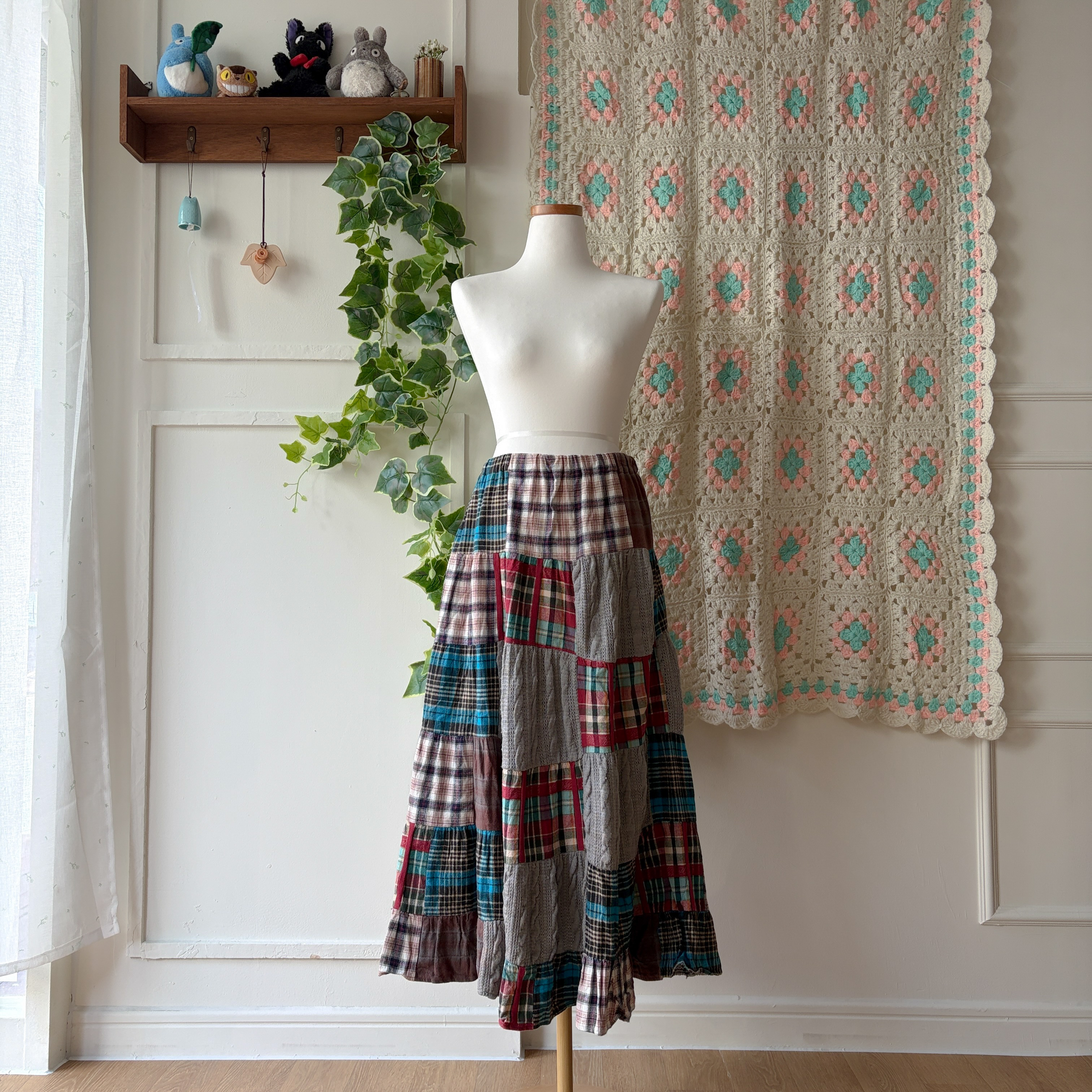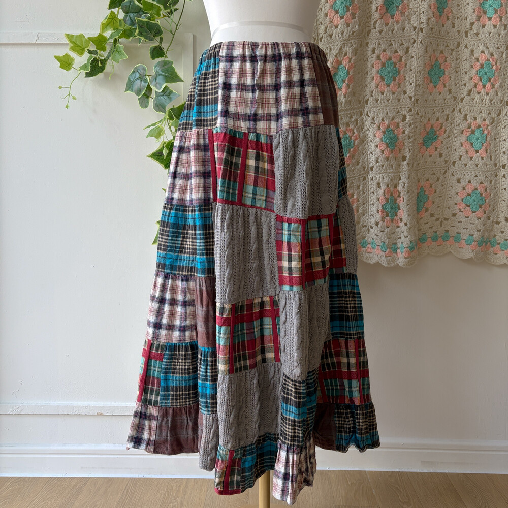 체크 패턴의 패치 스커트예요