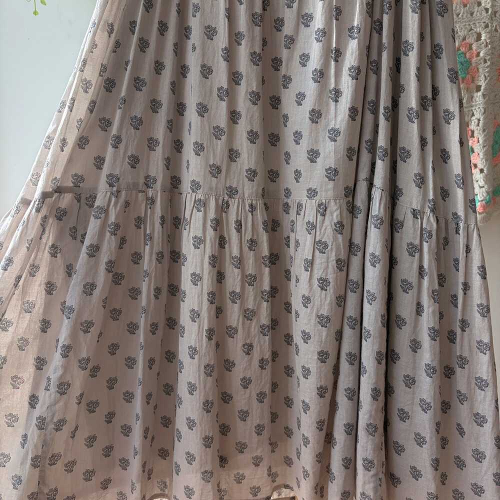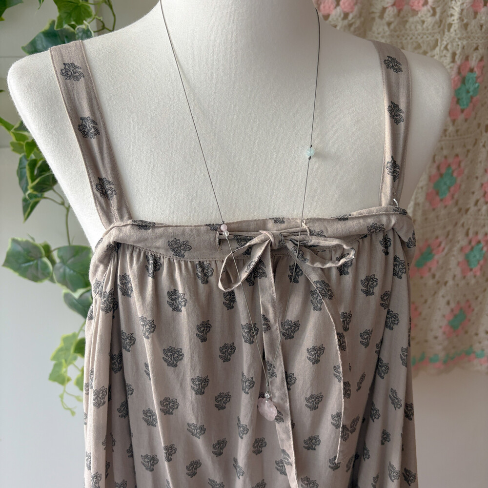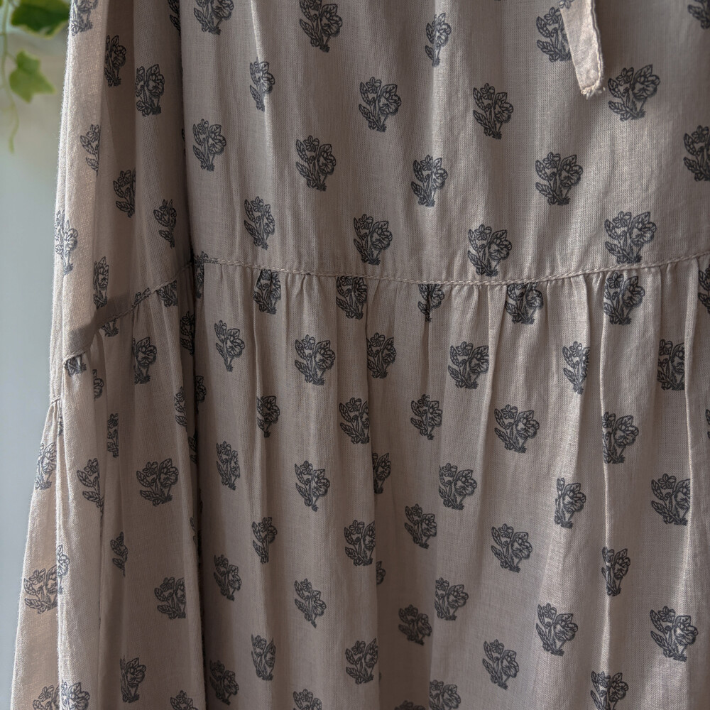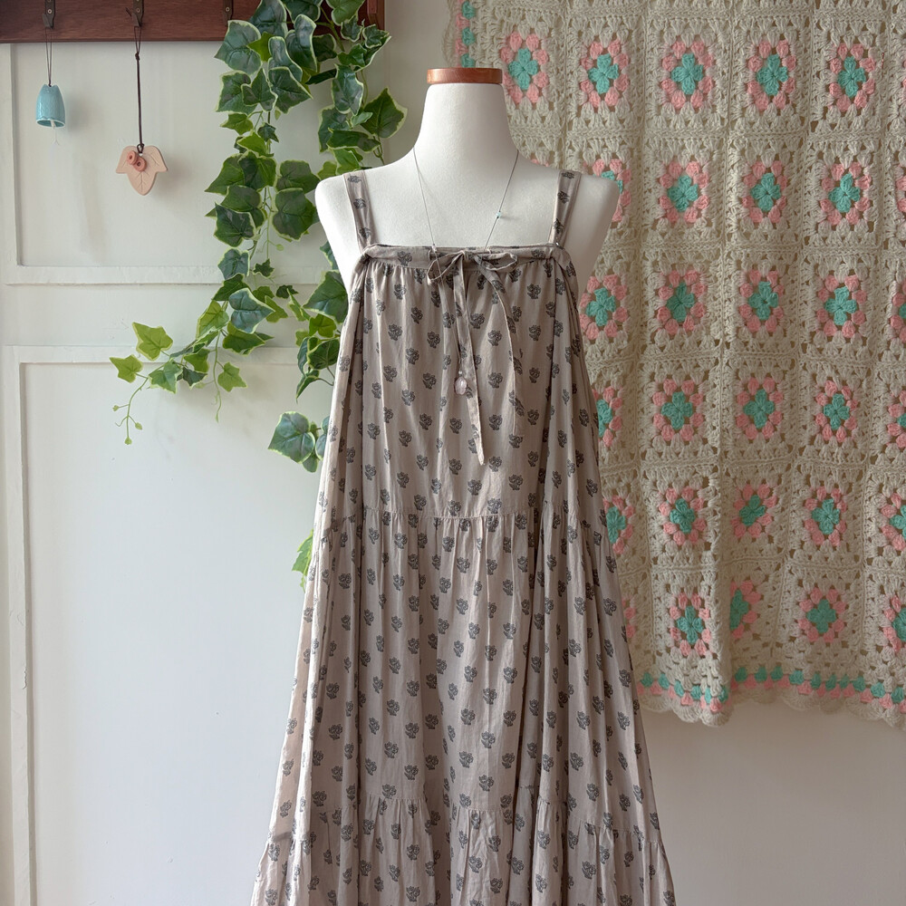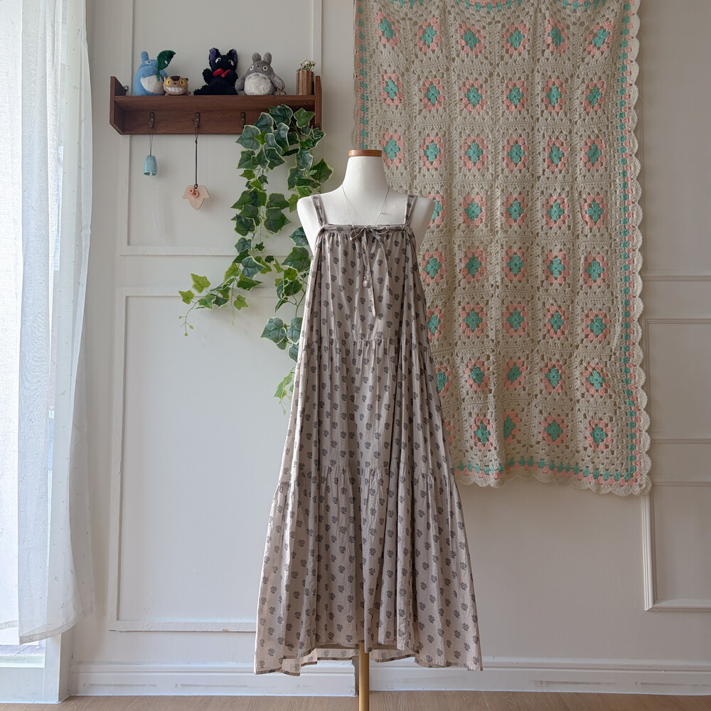 다크 오트밀 색감의 꽃무늬 원피스예요