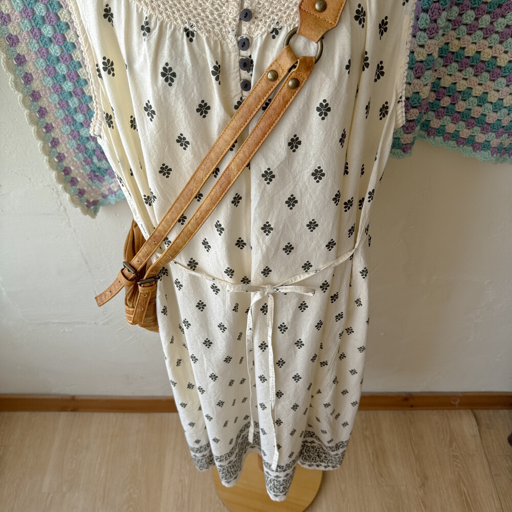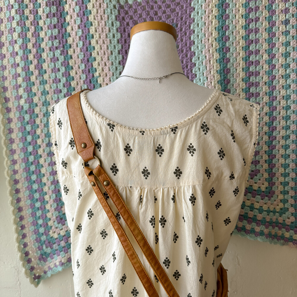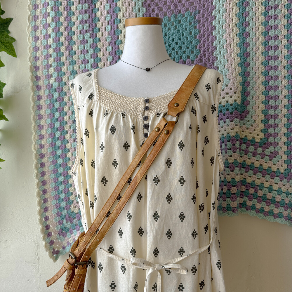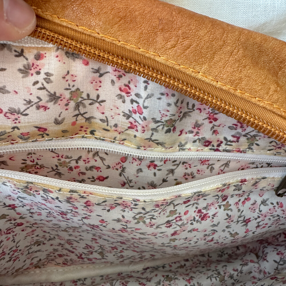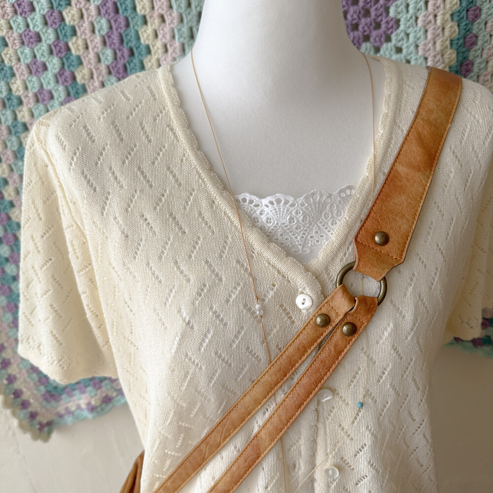 밝은 카멜브라운 색감의 격자디자인 크로스백이에요