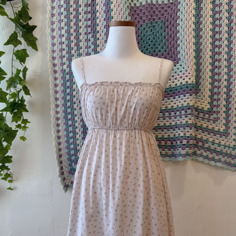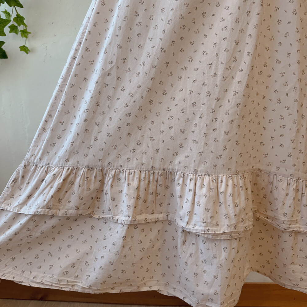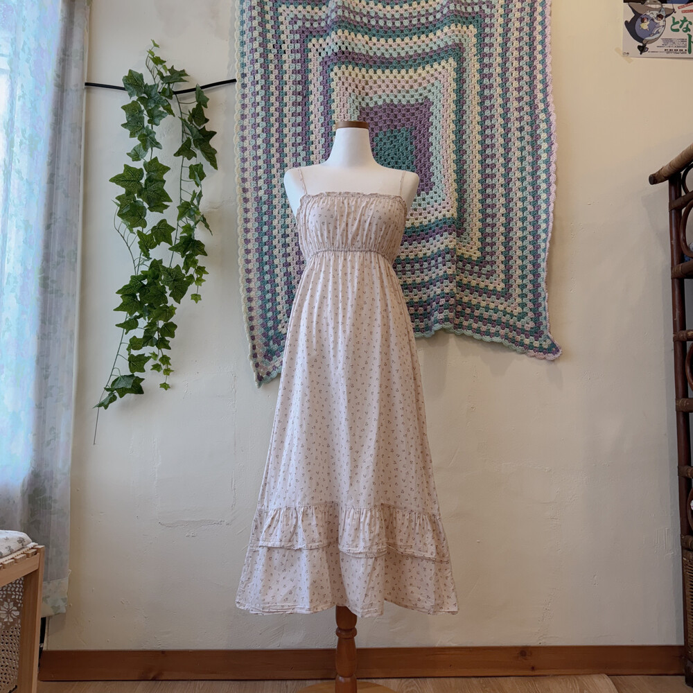 옅은 핑크아이보리 색감의 잔꽃 끈원피스예요